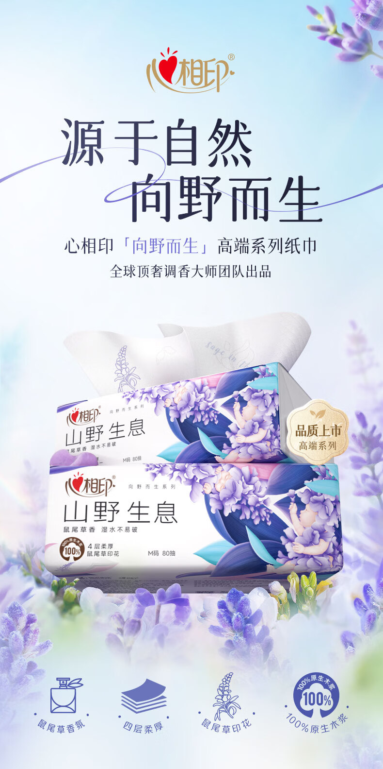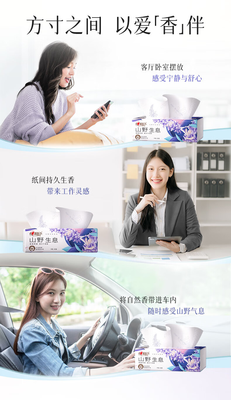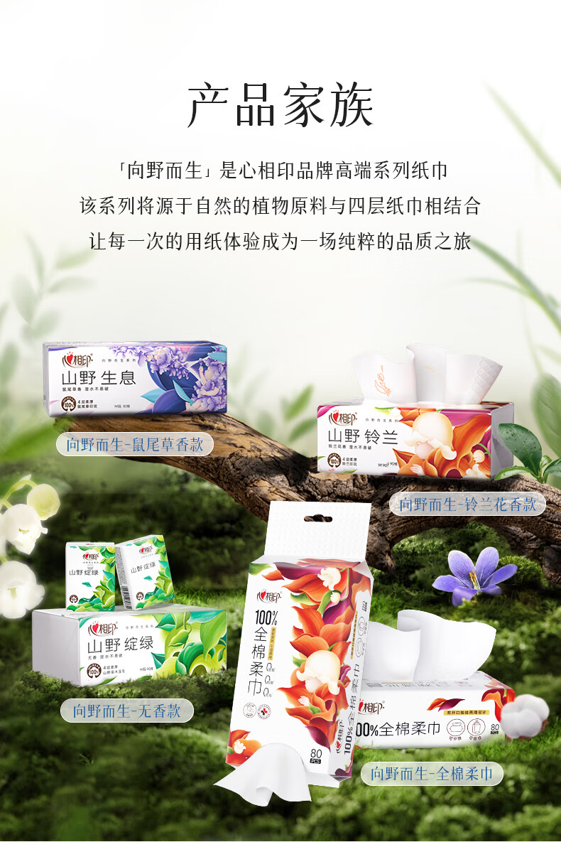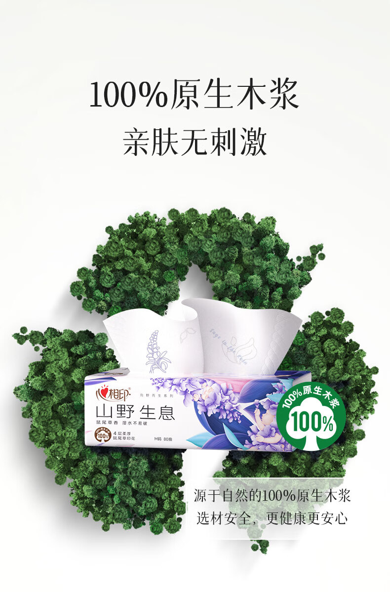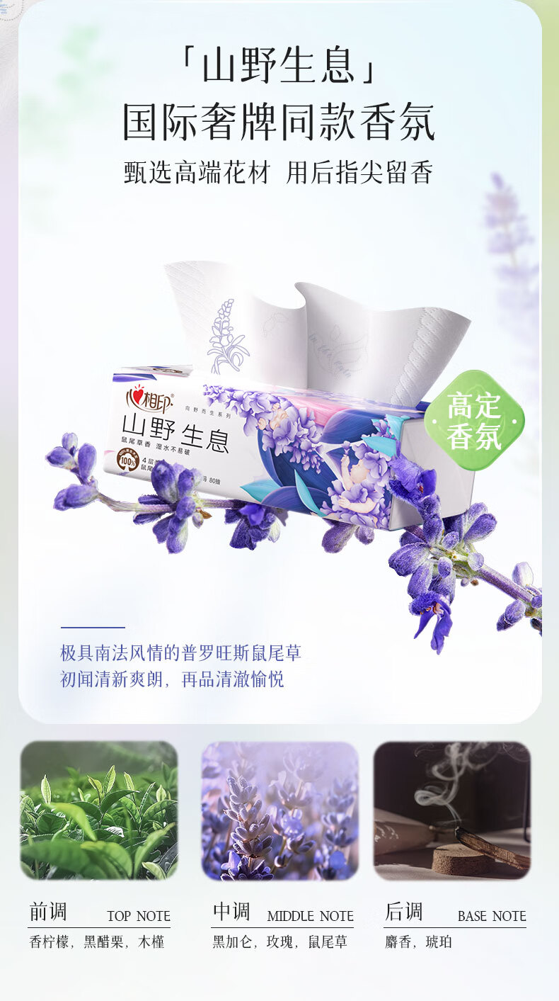 心相印抽纸 纸巾 向野而生4层80抽*18包M码鼠尾草香氛 面巾纸 卫生纸