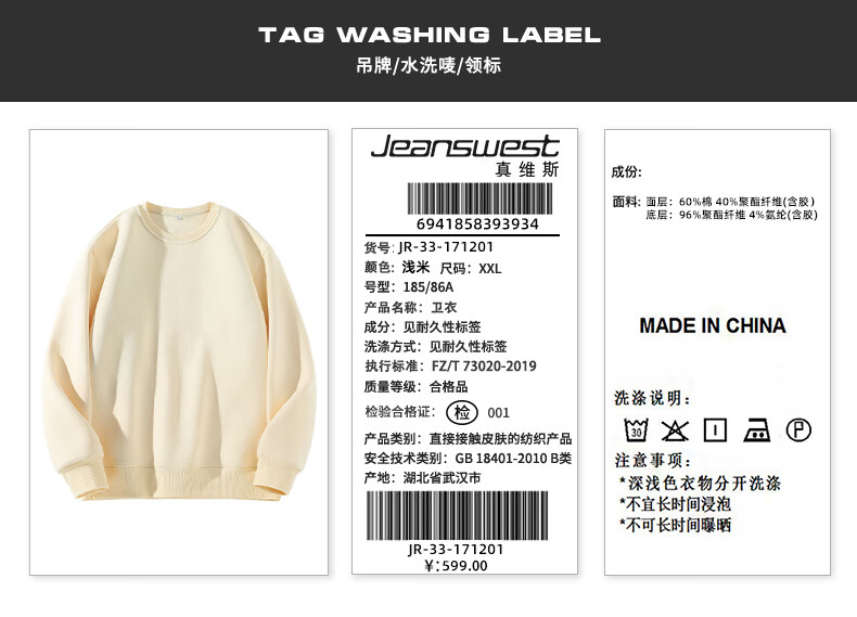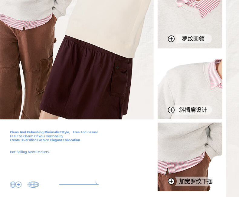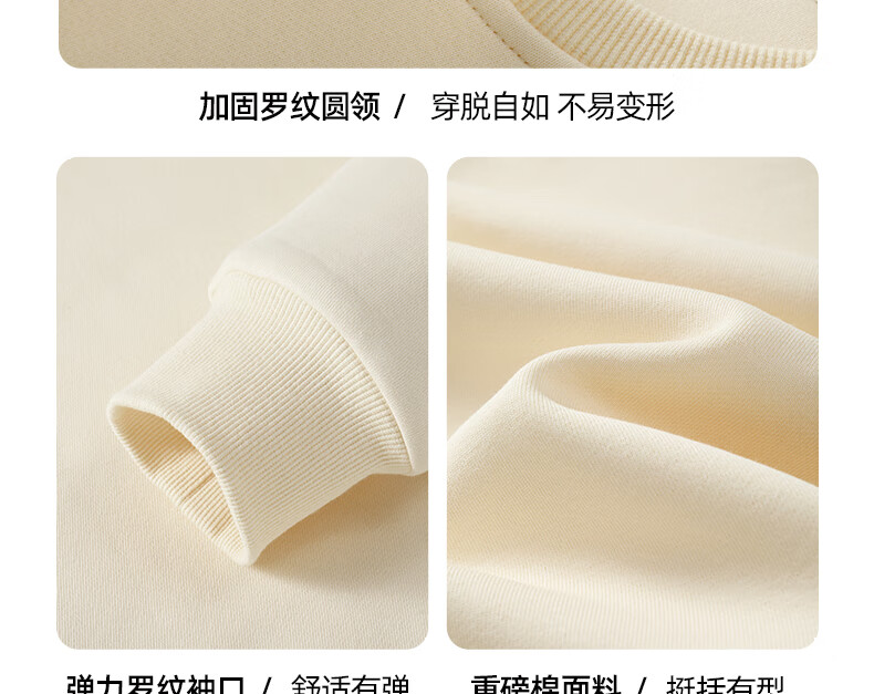 真维斯(Jeanswest)男士卫衣2025秋季新款青少年休闲时尚重磅款圆领无帽纯色薄外套 浅米#ZS纯色 M