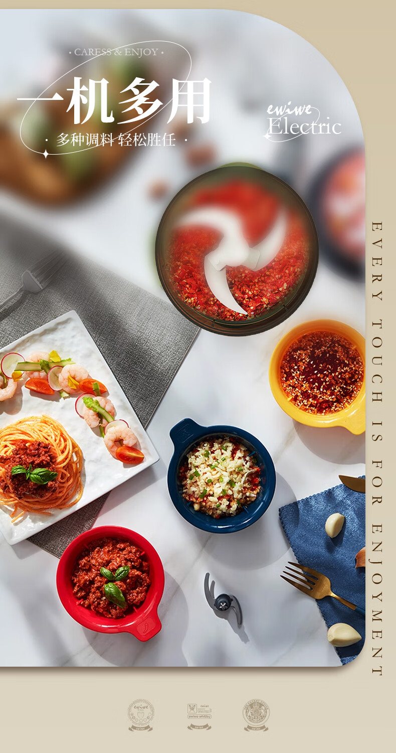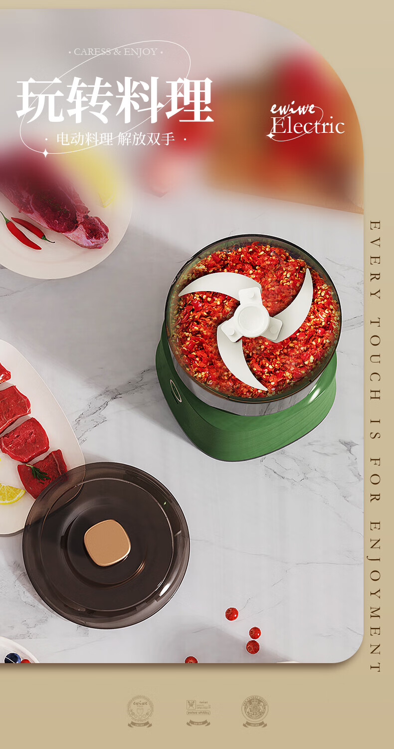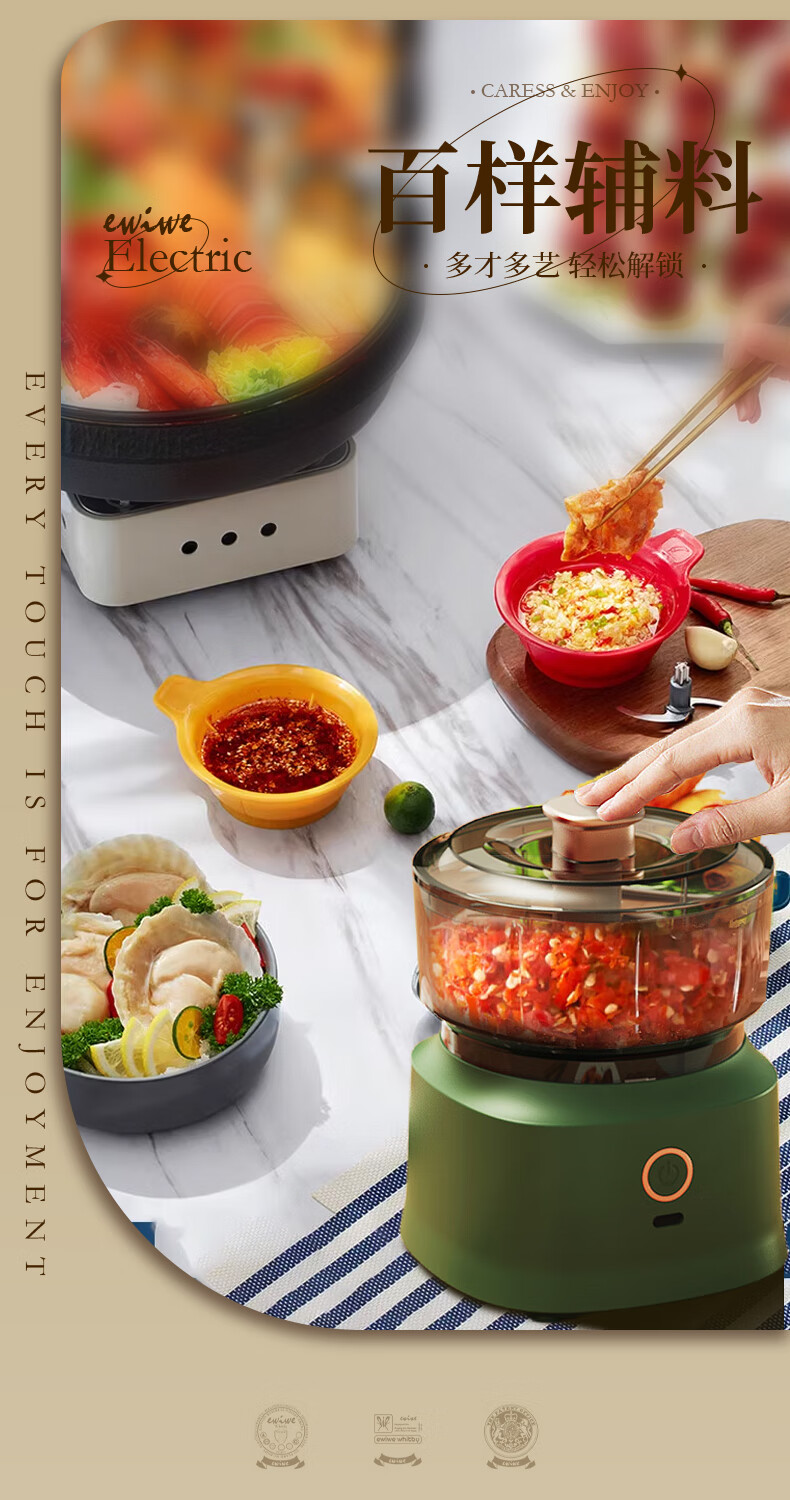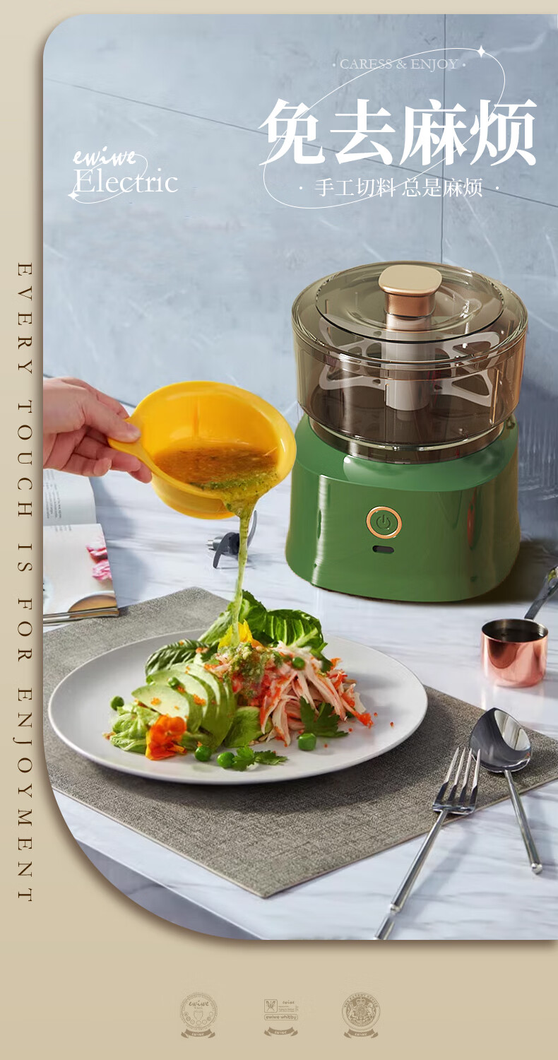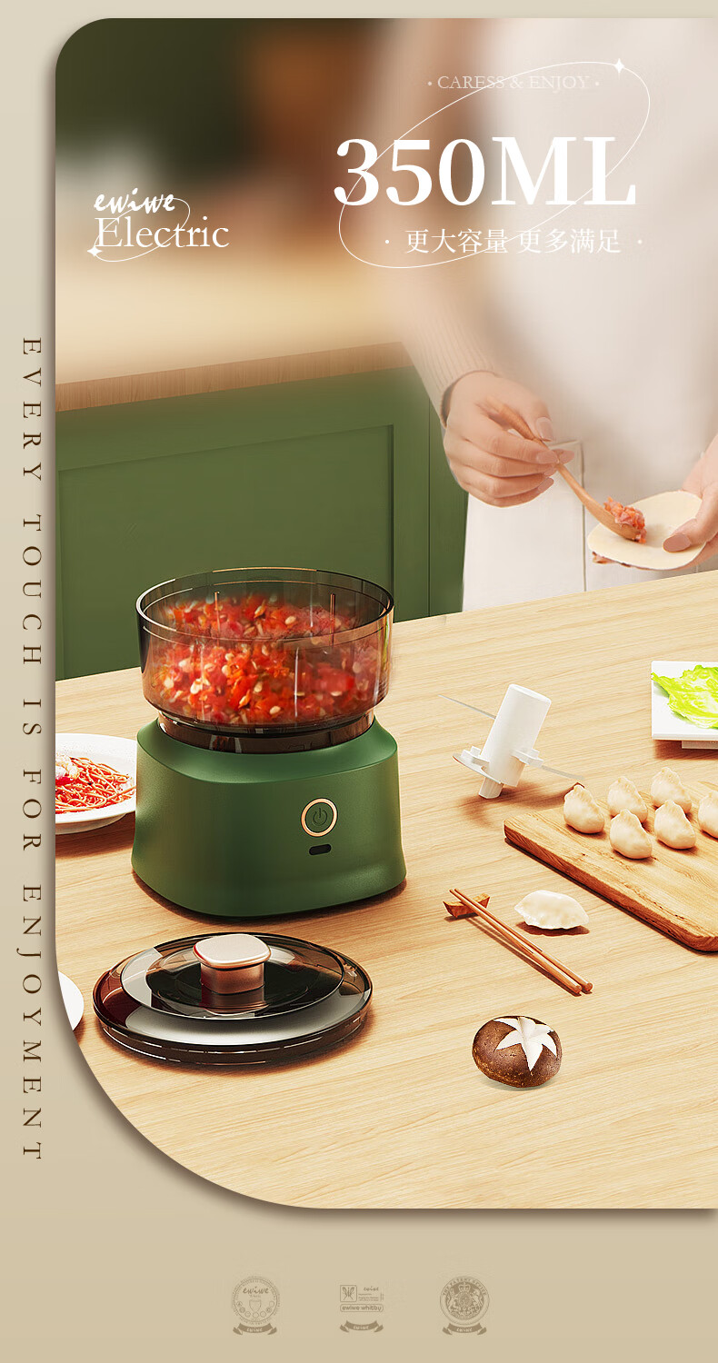 EWIWE蒜泥神器打蒜器电动搅蒜器绞肉机迷你小型家用搅碎辅食机 调料器/料理机/加强3刃 0.35L
