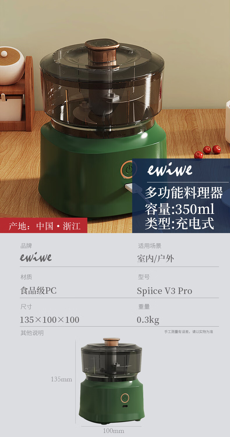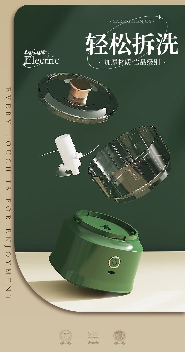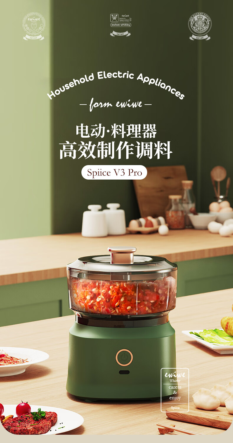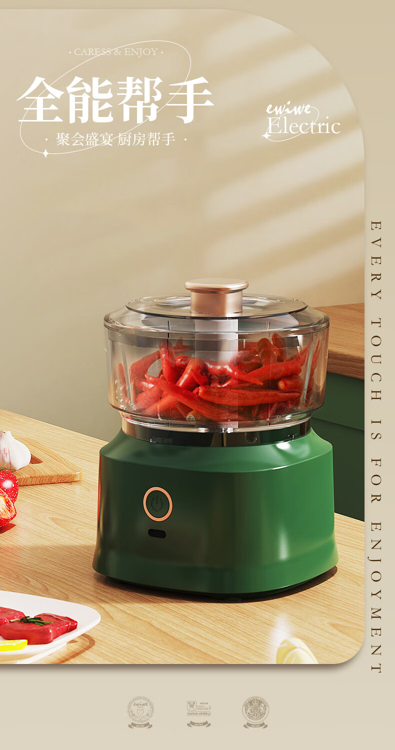 EWIWE蒜泥神器打蒜器电动搅蒜器绞肉机迷你小型家用搅碎辅食机 调料器/料理机/加强3刃 0.35L