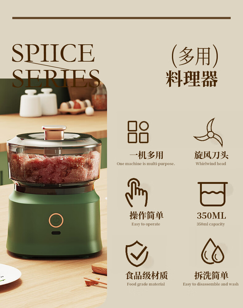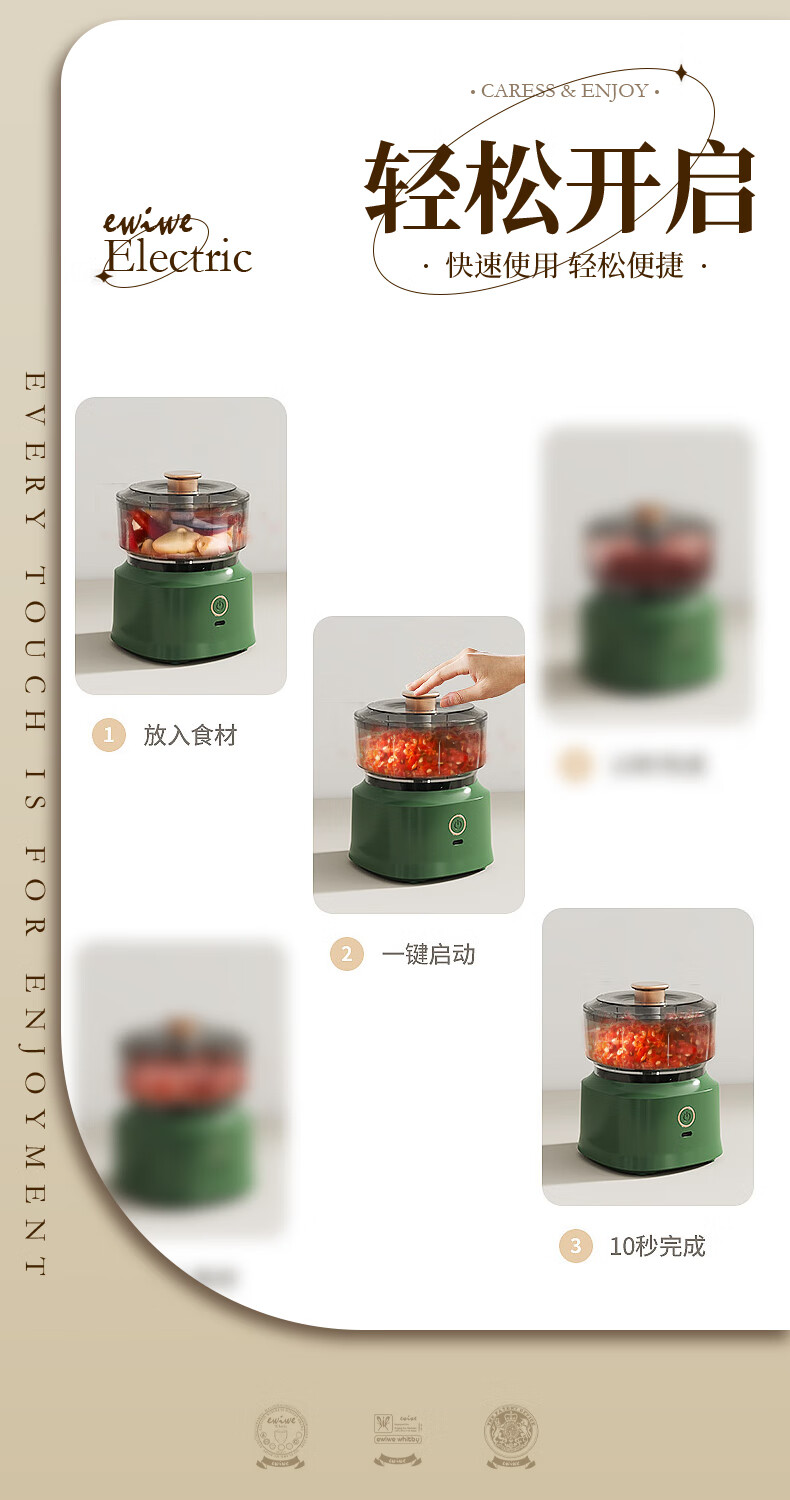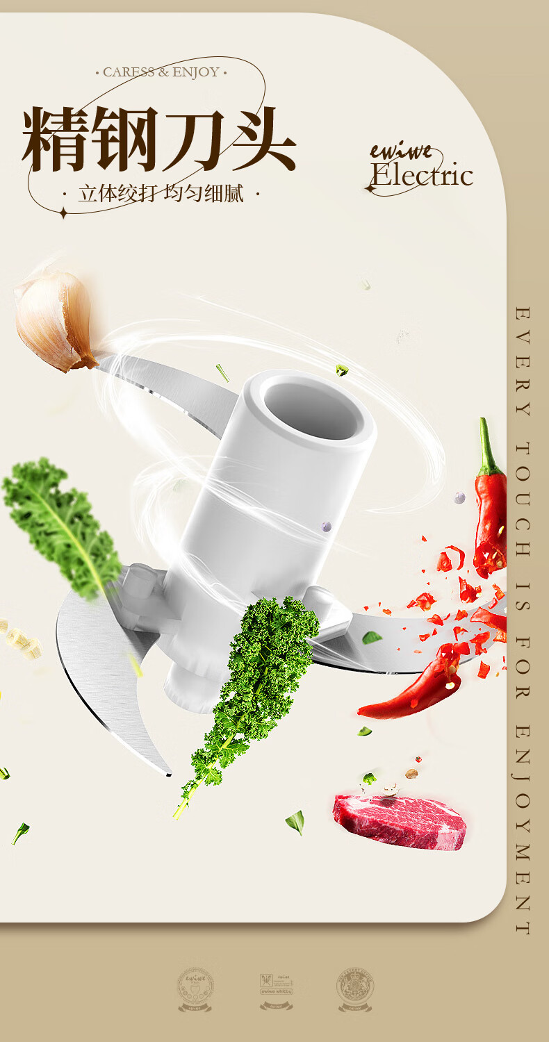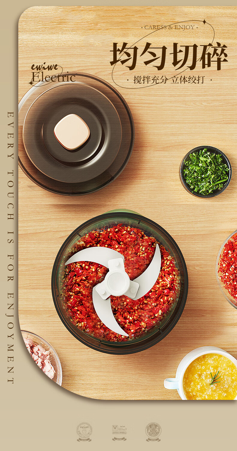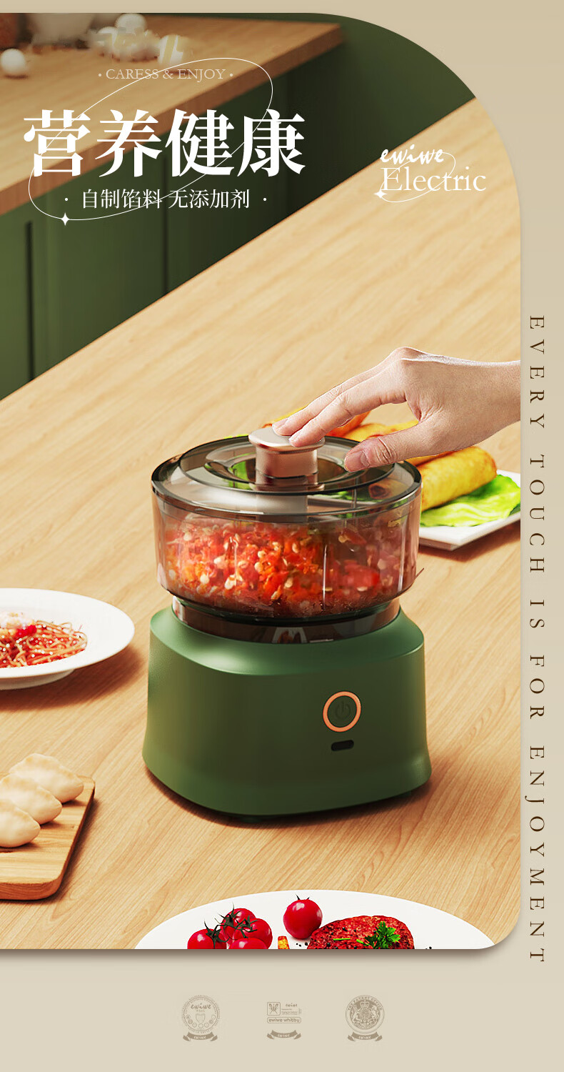 EWIWE蒜泥神器打蒜器电动搅蒜器绞肉机迷你小型家用搅碎辅食机 调料器/料理机/加强3刃 0.35L