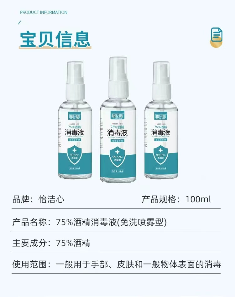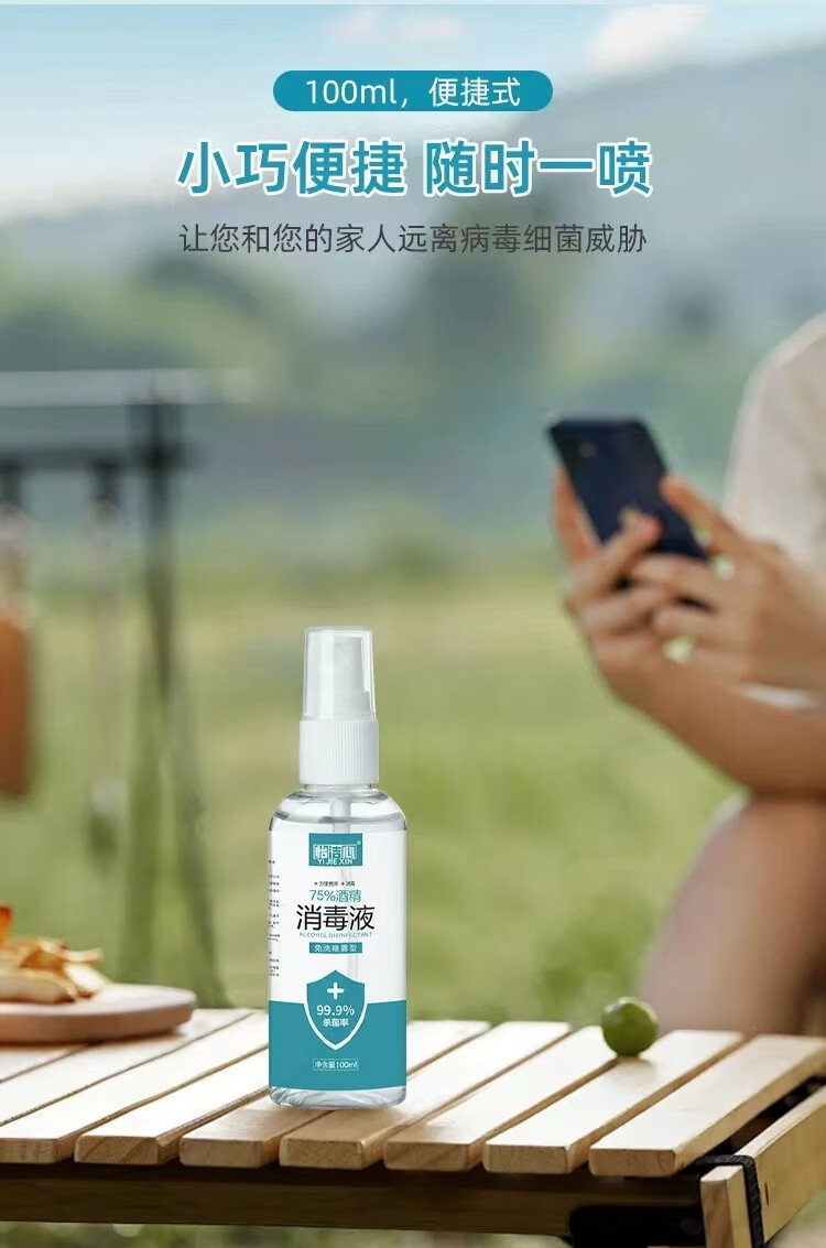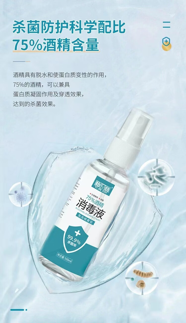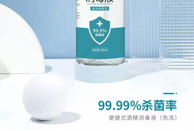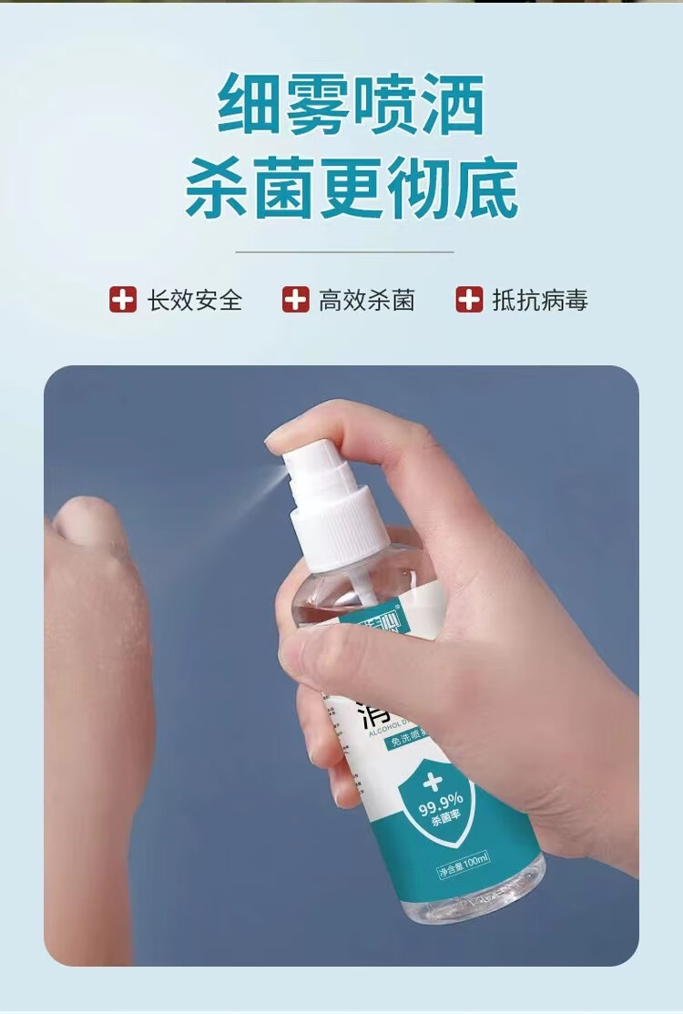 芳至酒精喷雾100ml家用一次性抑菌杀菌免手洗乙醇消毒液美甲耳饰湿巾 酒精喷雾100ml//3瓶