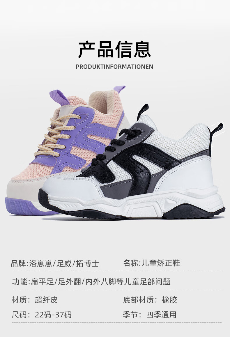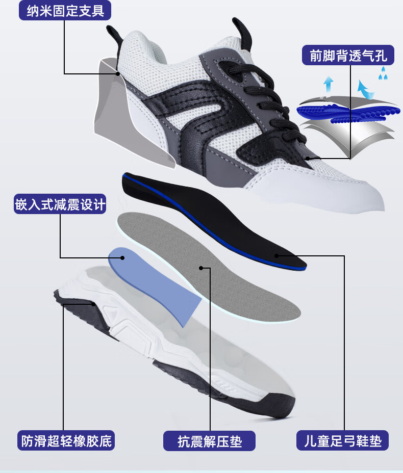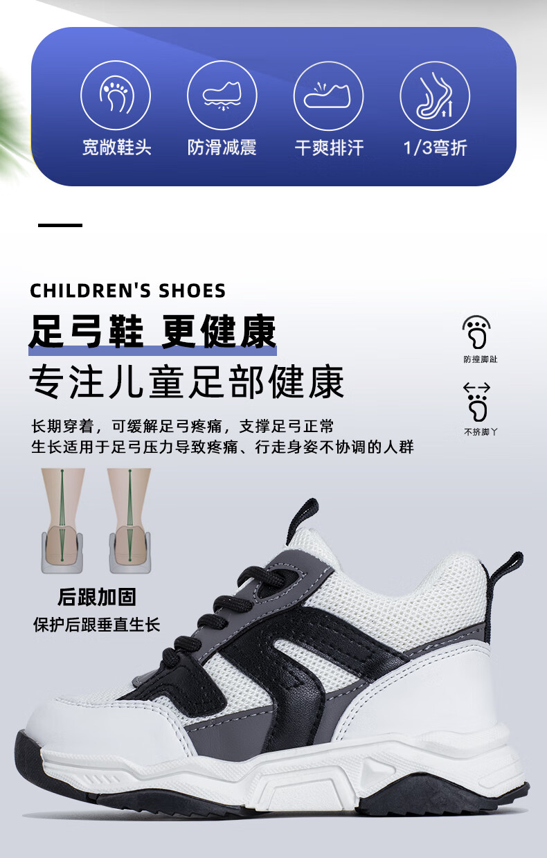 洛崽崽儿童扁平足矫正鞋足外翻内外八字定制矫形鞋垫长短腿XO型腿足弓鞋 黑白色单网 取模+针对性定制鞋垫 33 适合脚长 鞋子内长21CM