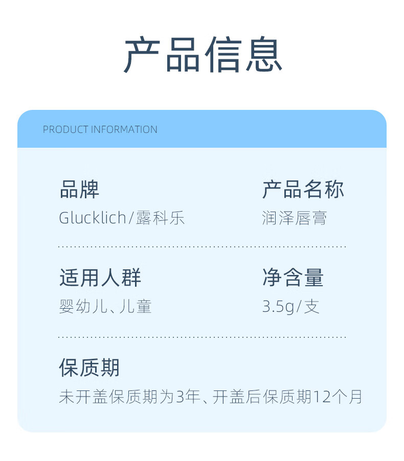 露科乐(Glucklich)婴儿护唇膏 宝宝儿童润唇膏持久保湿防干裂 滋润 3.5g单支L