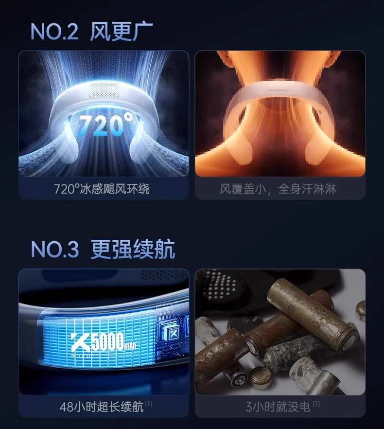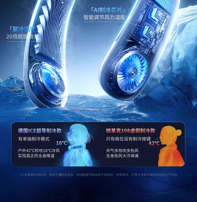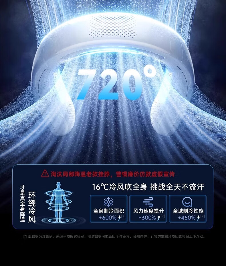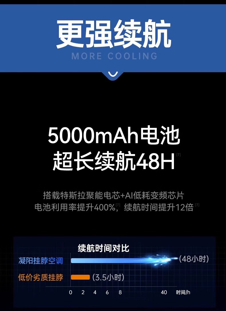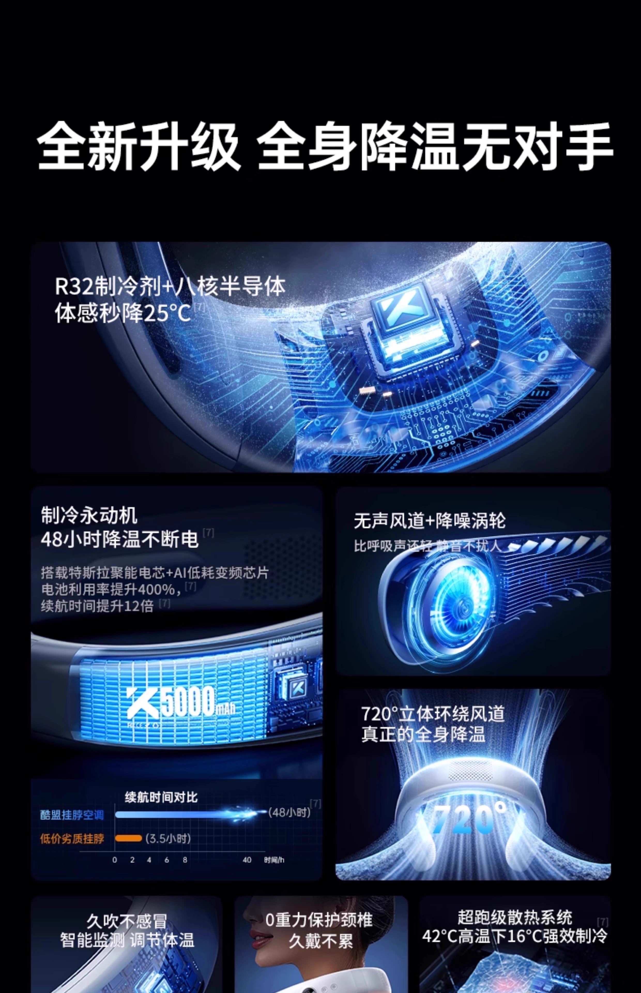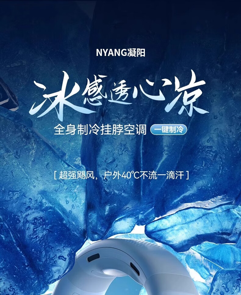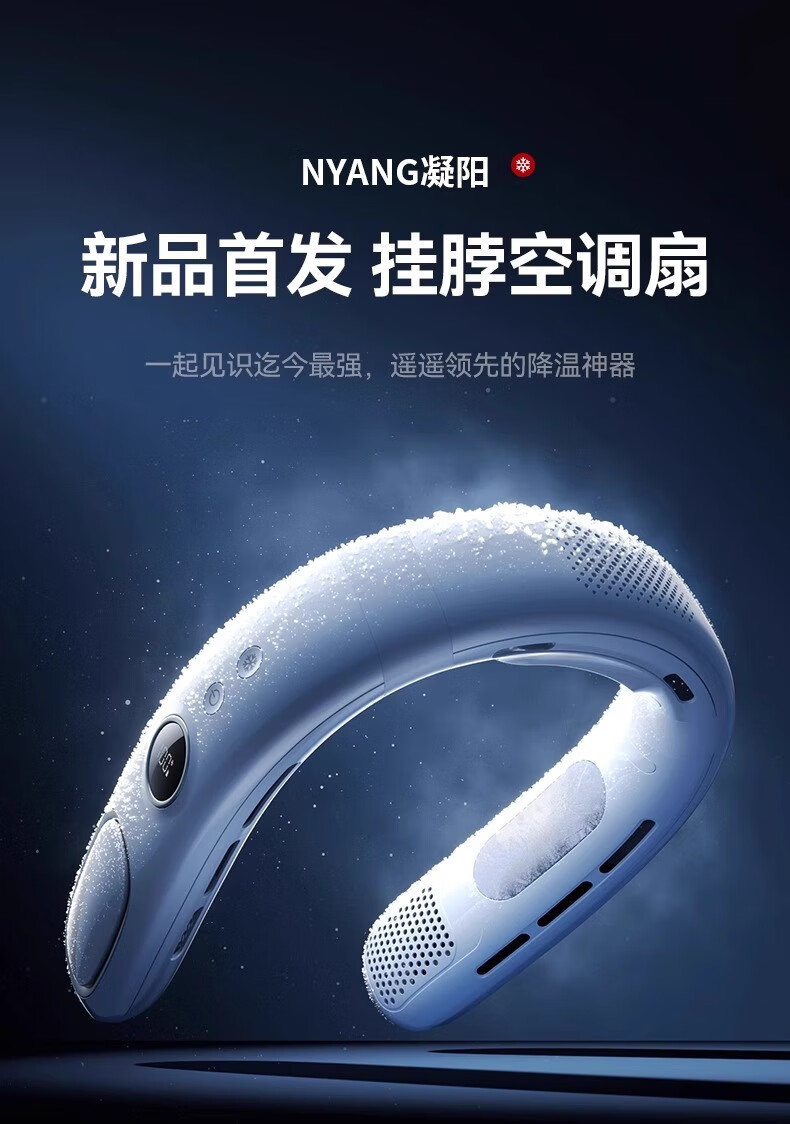 凝阳【半导体冷风】挂脖风扇制冷空调超长续航便携式随身迷你小型usb静音学生挂脖子户外降温神器 冰川白 3600mAh 【48小时超长续航】16℃空调冷风ICE超导制冷
