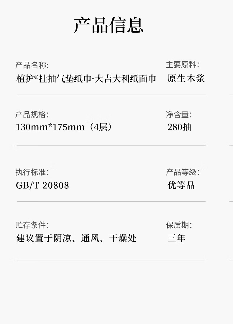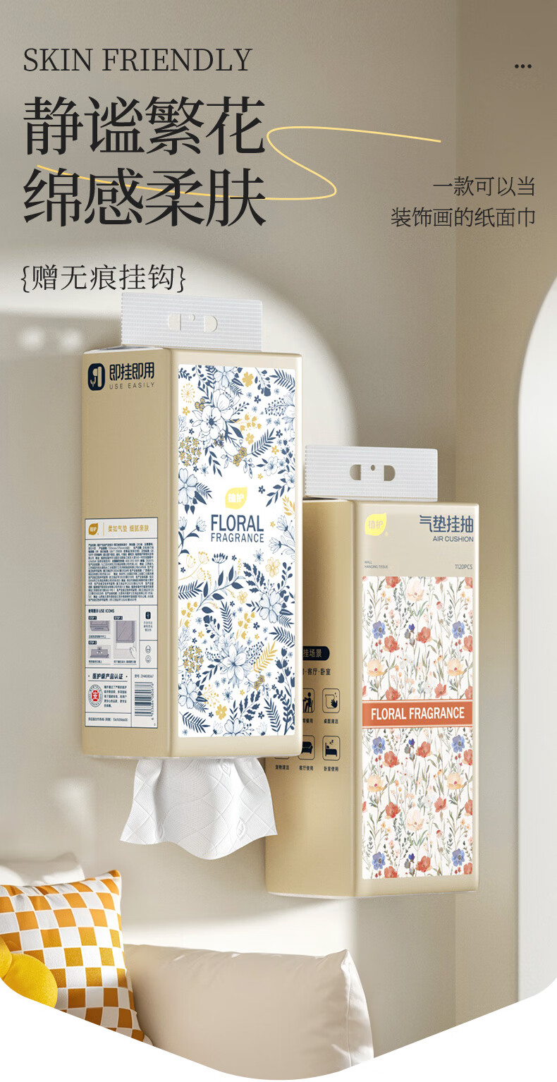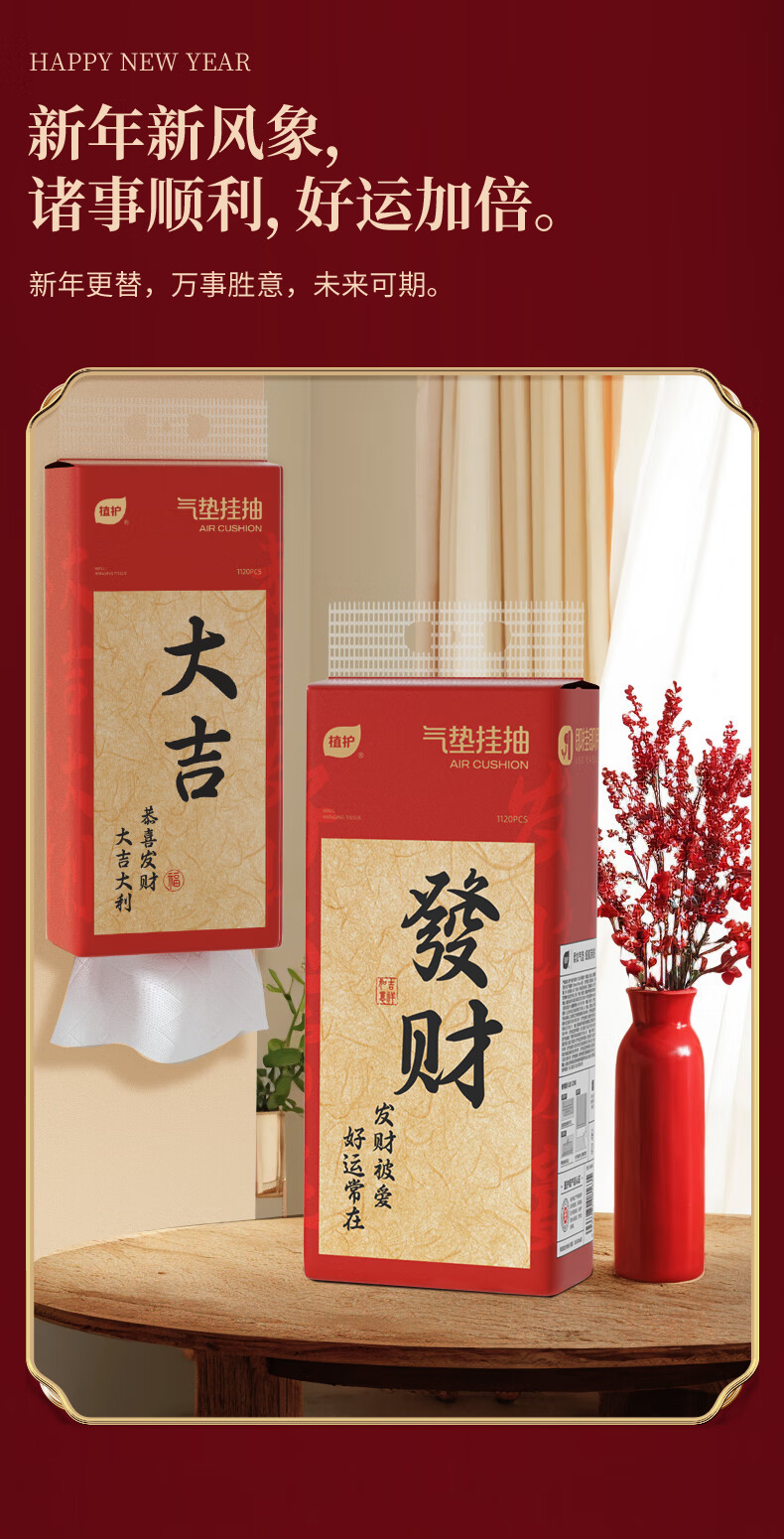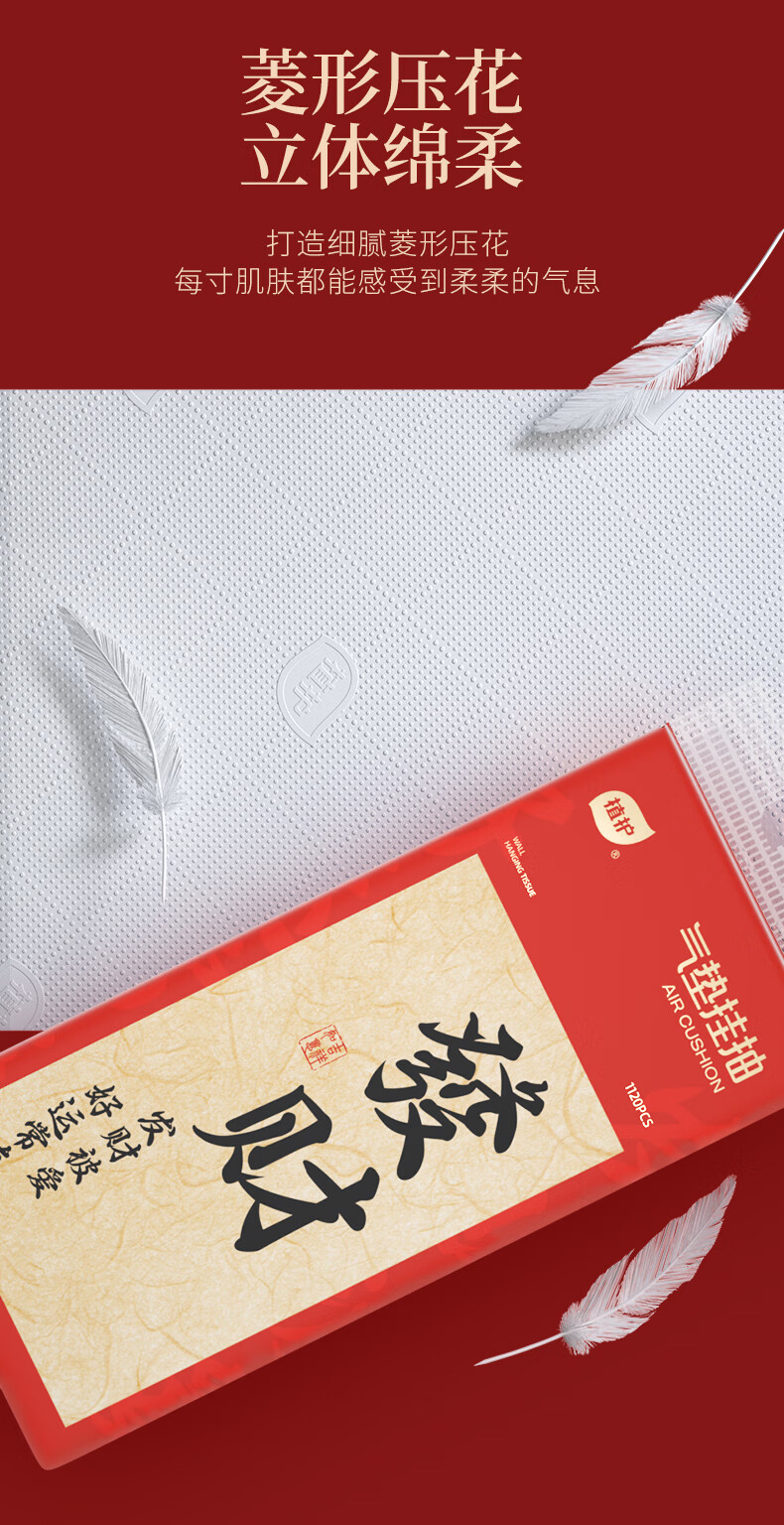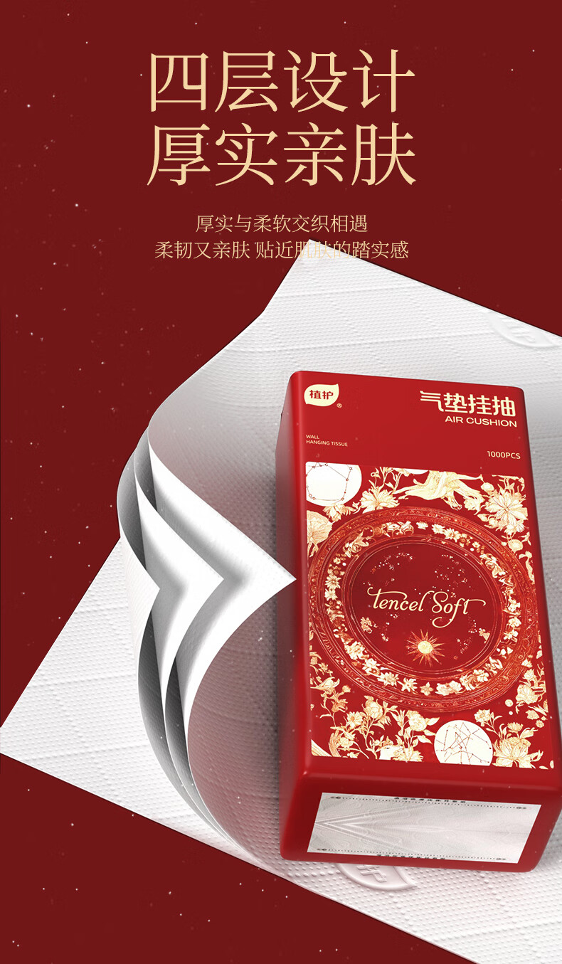 植护原木挂抽气垫纸巾抽纸 家用卫生纸抽 餐巾纸 大吉 4层 1120张*8提 (带挂钩)