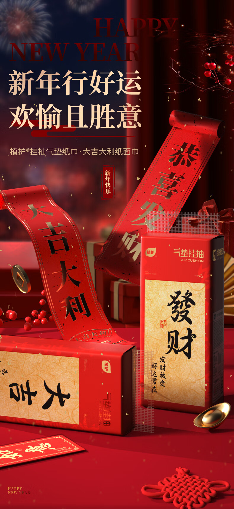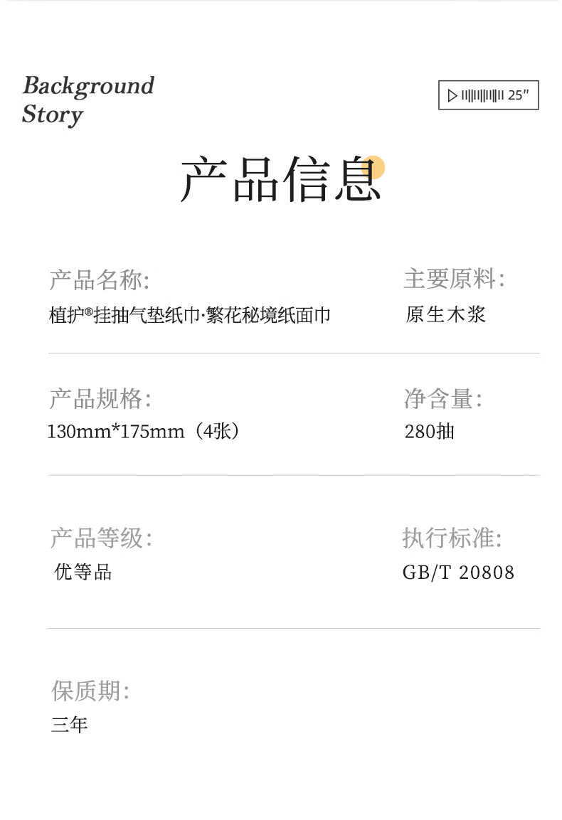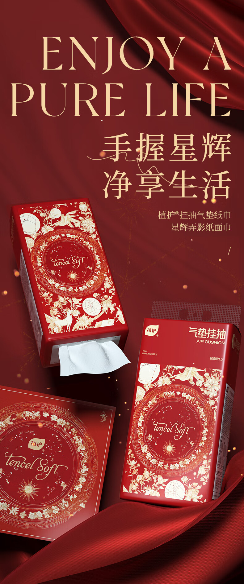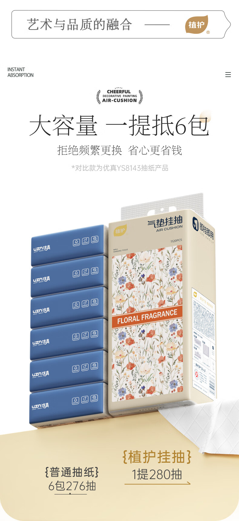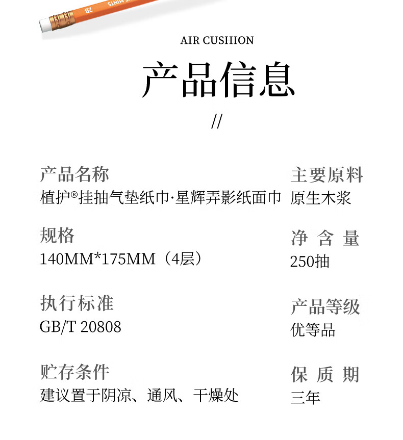 植护原木挂抽气垫纸巾抽纸 家用卫生纸抽 餐巾纸 大吉 4层 1120张*8提 (带挂钩)