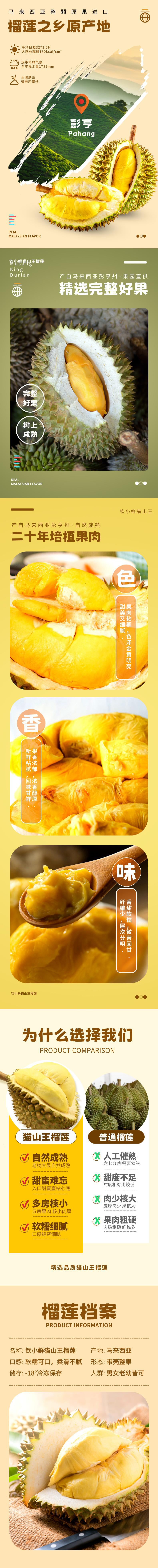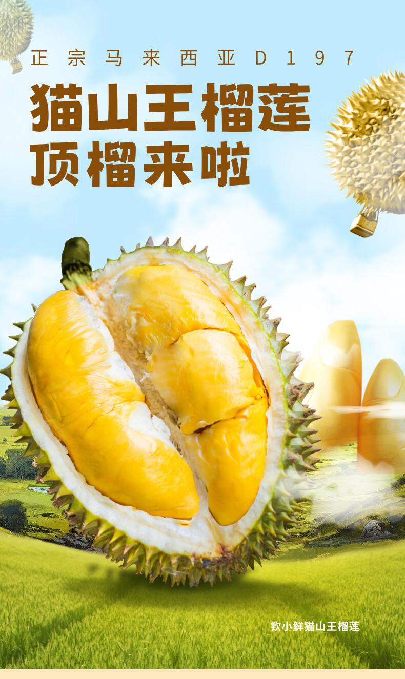 钦小鲜猫山王马来西亚榴莲D197树熟液氮冷冻新鲜水果进口节日送礼带壳 A级 2.6-2.9斤(可开3-5房)