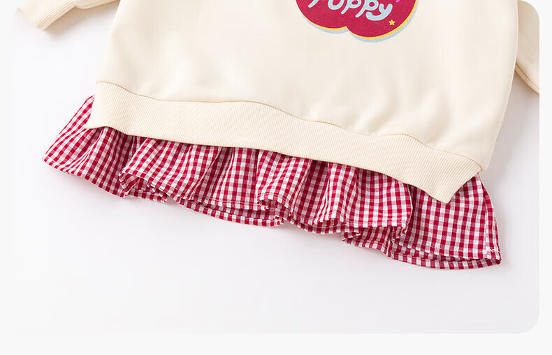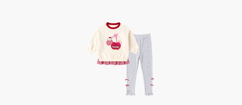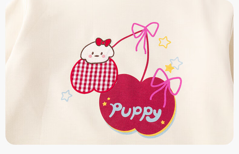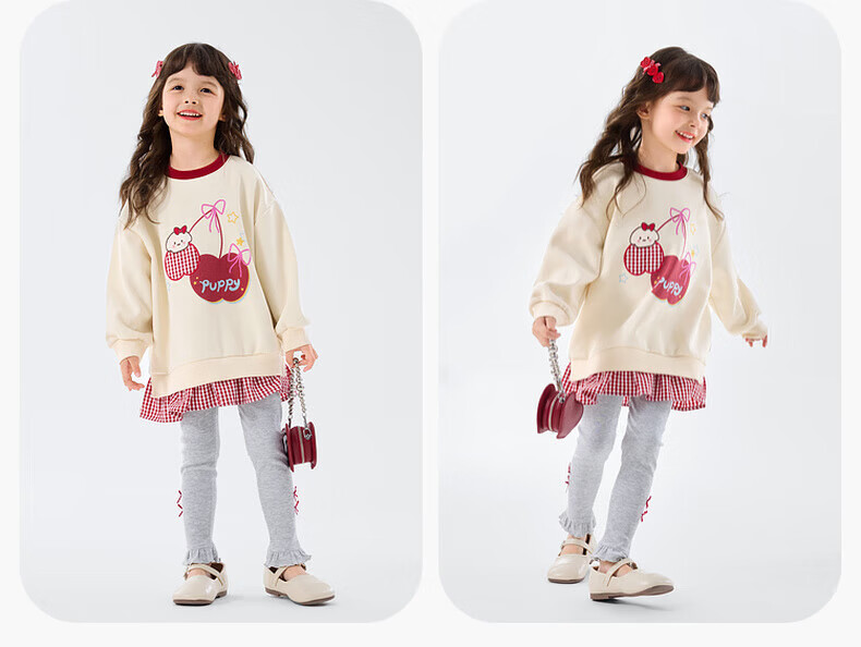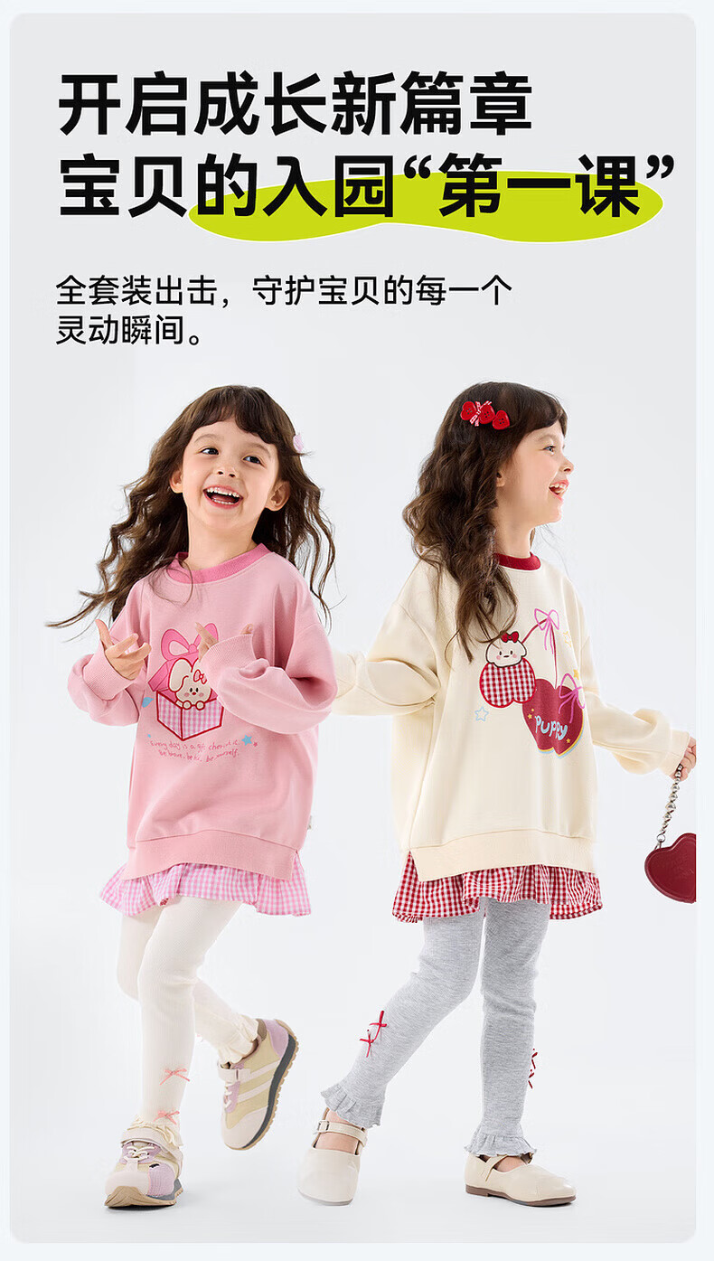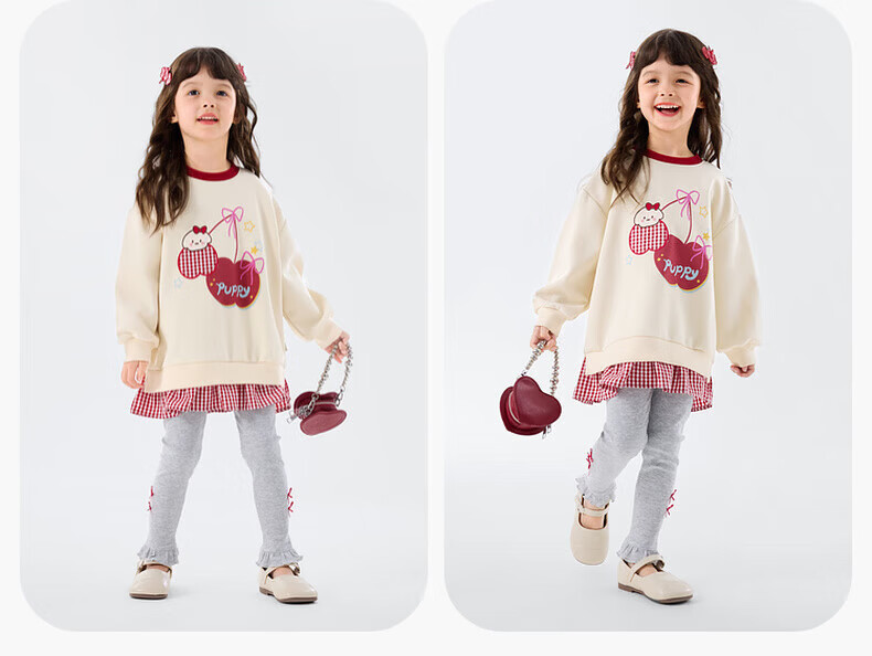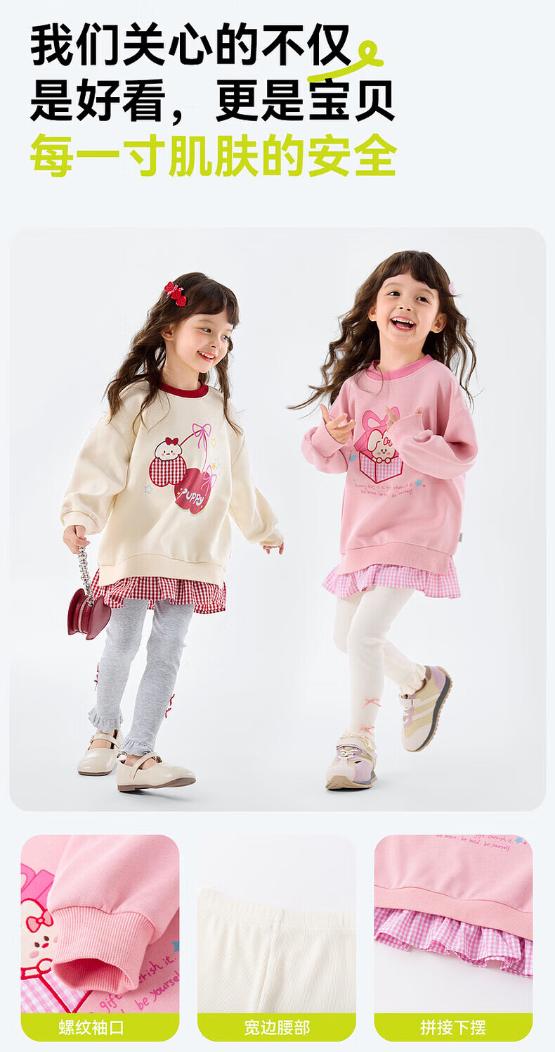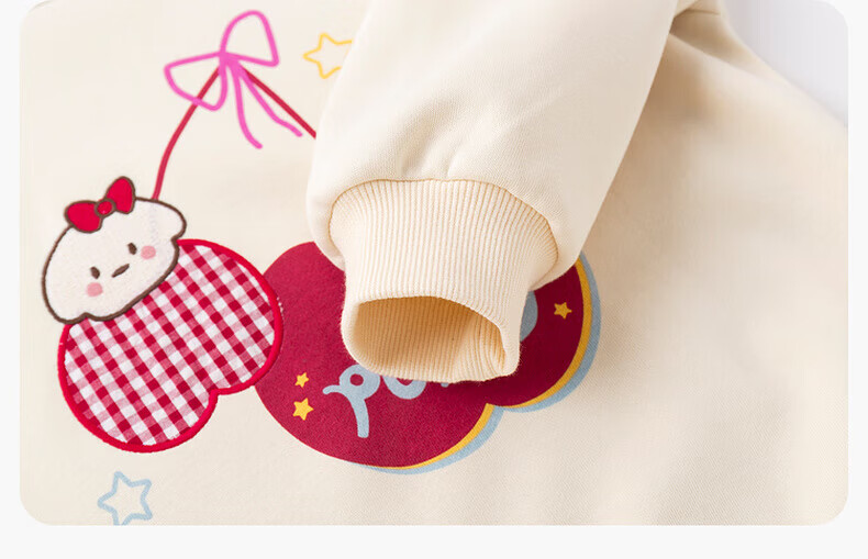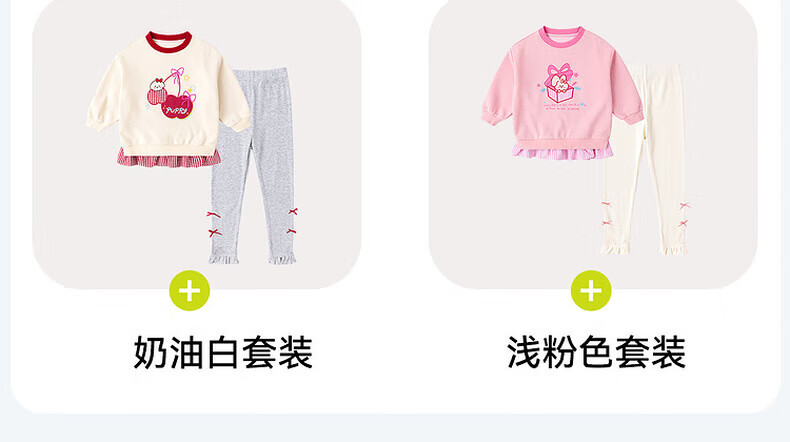 嘟嘟家女童春季套装儿童上衣裤子两件套女宝卫衣长裤童装卡通女孩衣服潮 奶油白 110