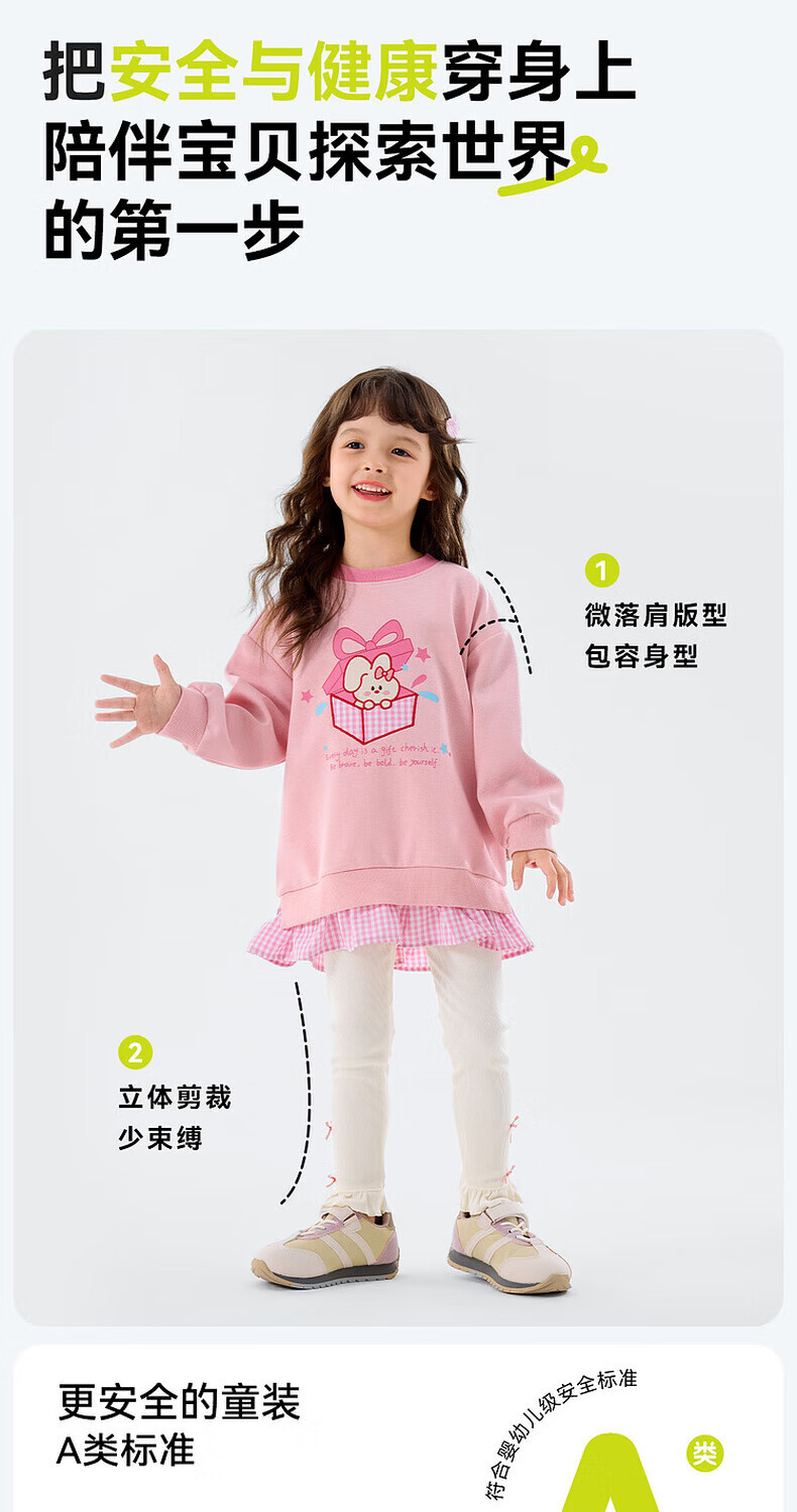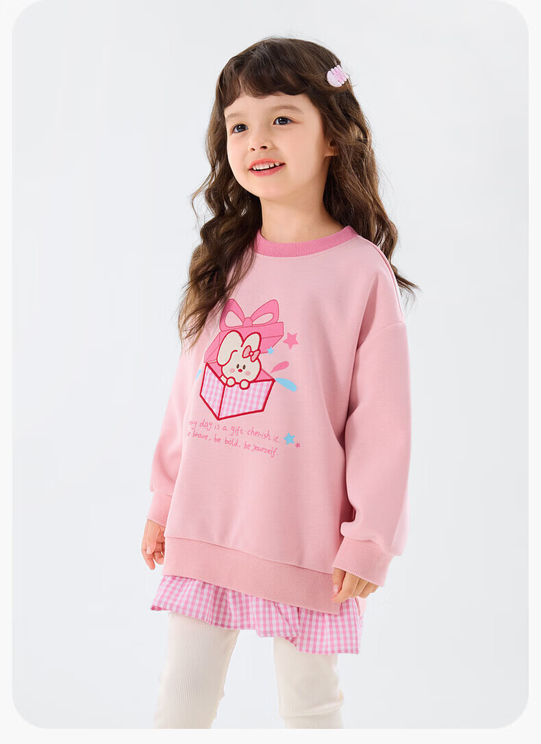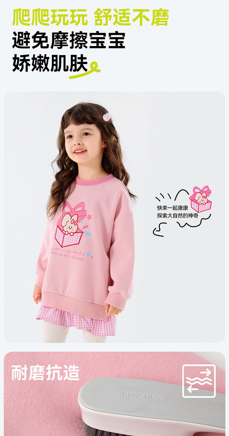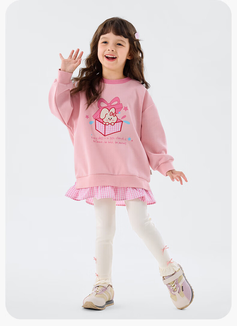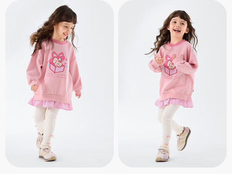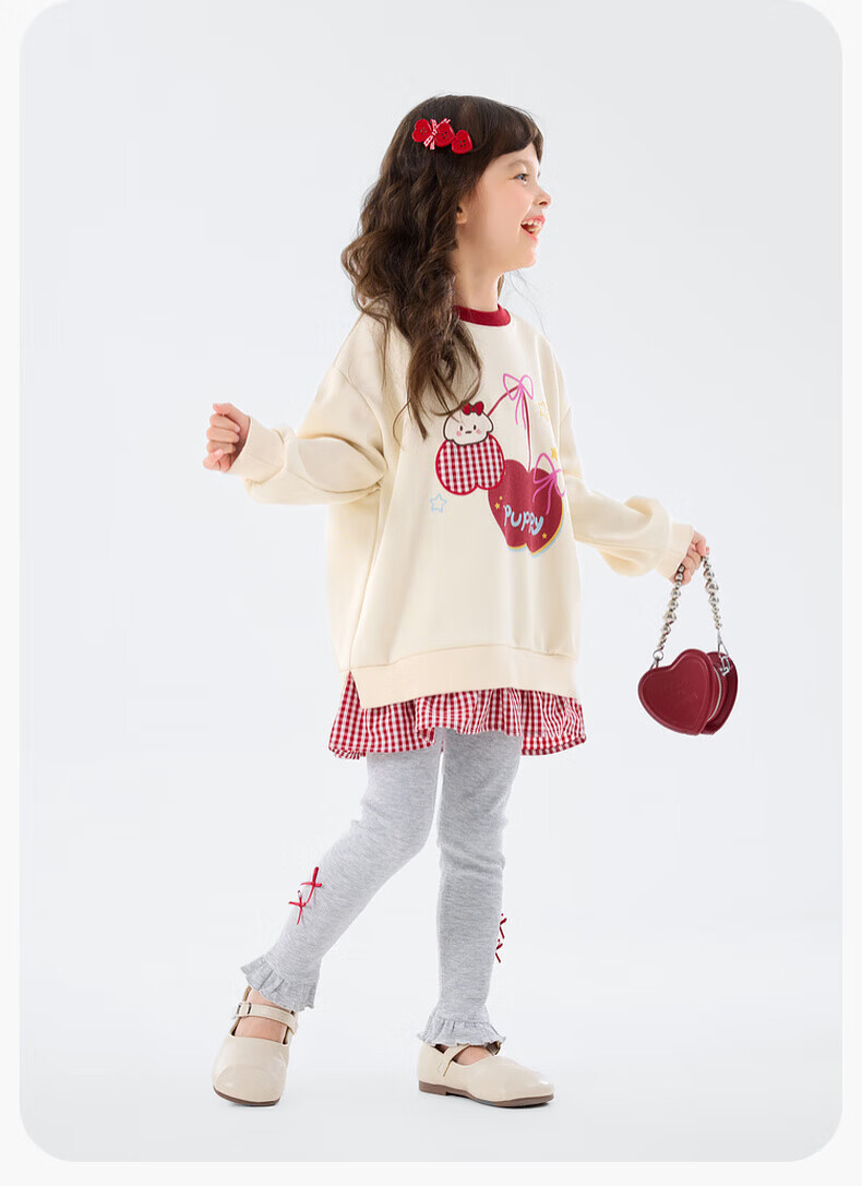 嘟嘟家女童春季套装儿童上衣裤子两件套女宝卫衣长裤童装卡通女孩衣服潮 奶油白 110
