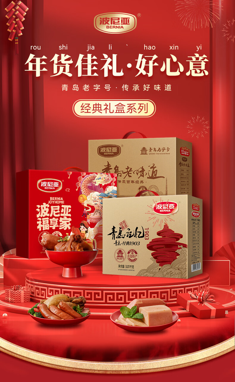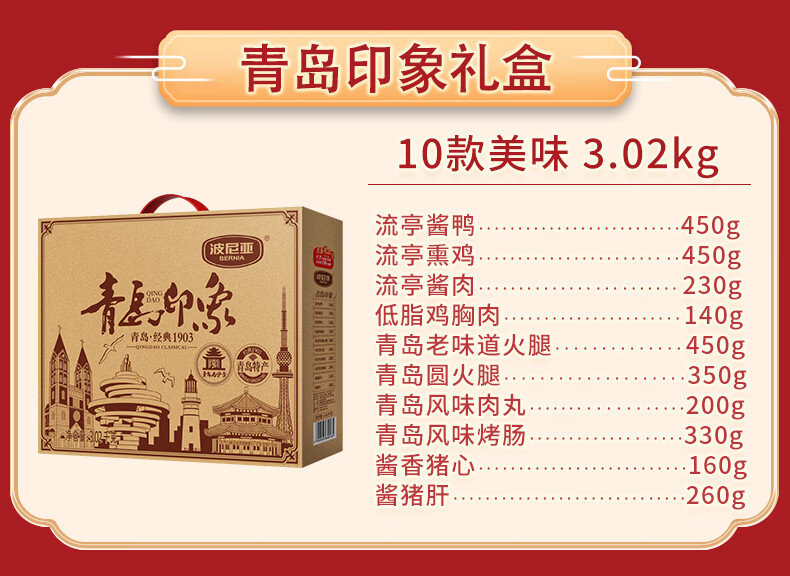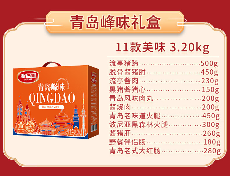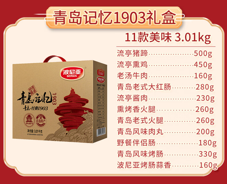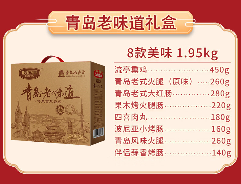 波尼亚青岛特产 肉食礼盒酱鸭熏鸡酱货火腿熟食礼盒春节送礼走亲访友 1903青岛老火腿+啤酒伴手礼
