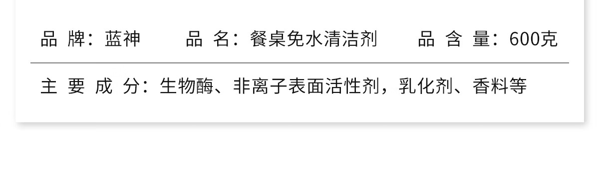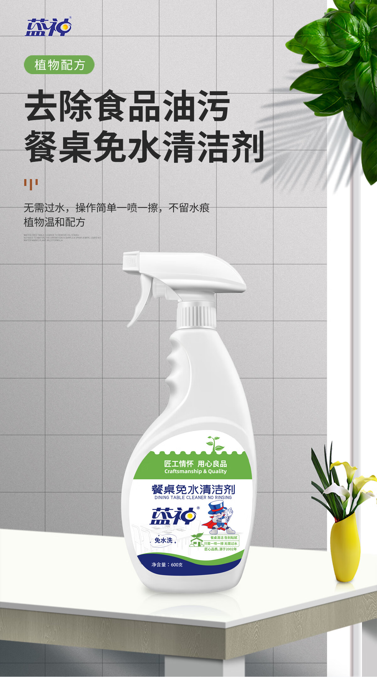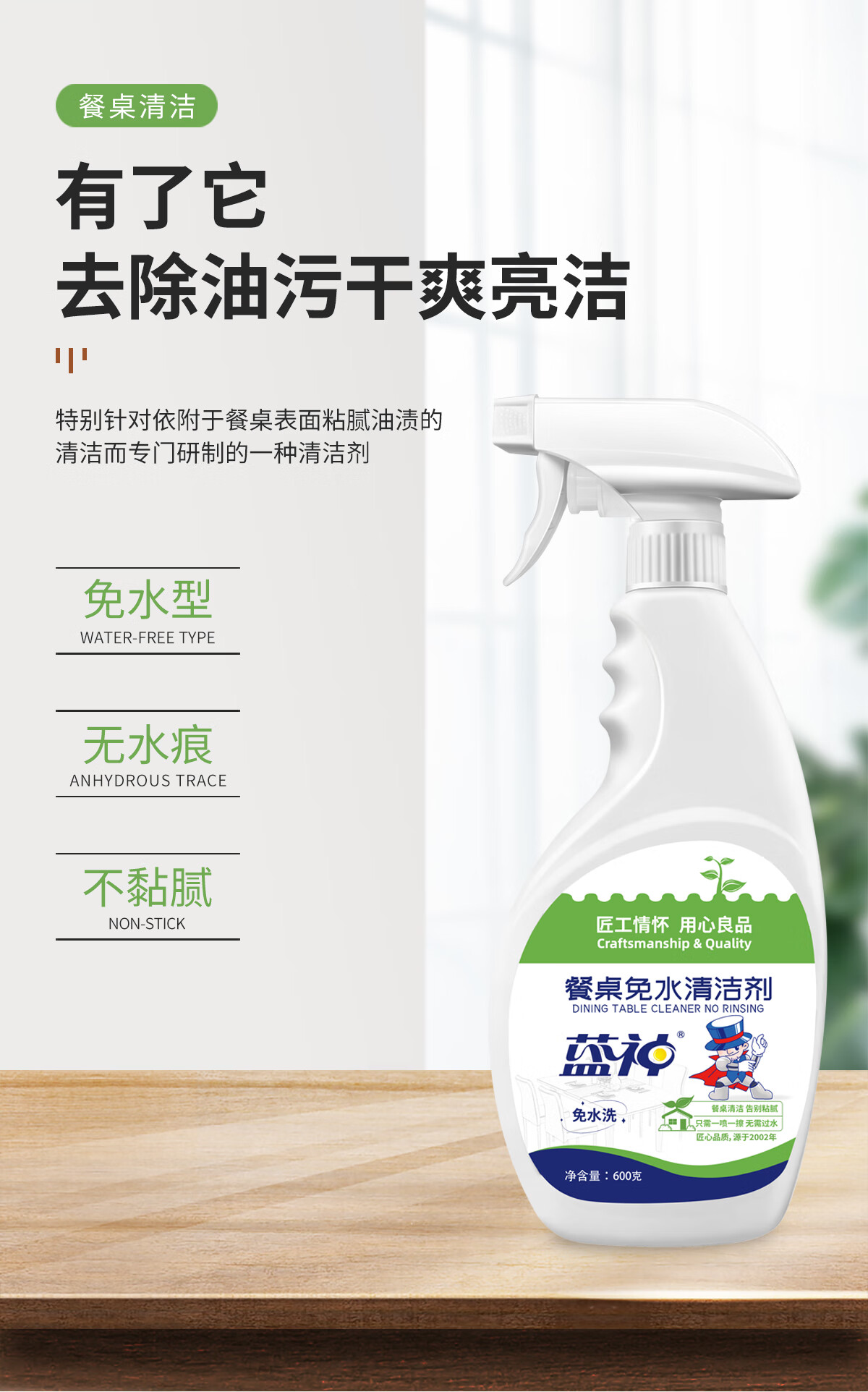 蓝神餐桌免水清洁剂餐馆火锅店酒楼饭店桌面去除油污粘腻感免水洗 600克*1瓶