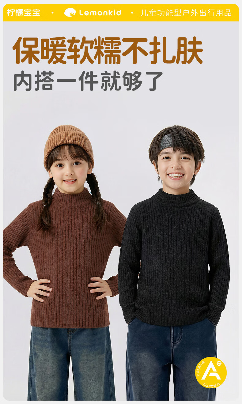 柠檬宝宝男童女童中高领毛衣冬装新款儿童针织衫秋冬款基础内搭针织打底衫 奶白 160