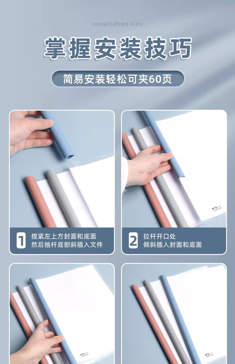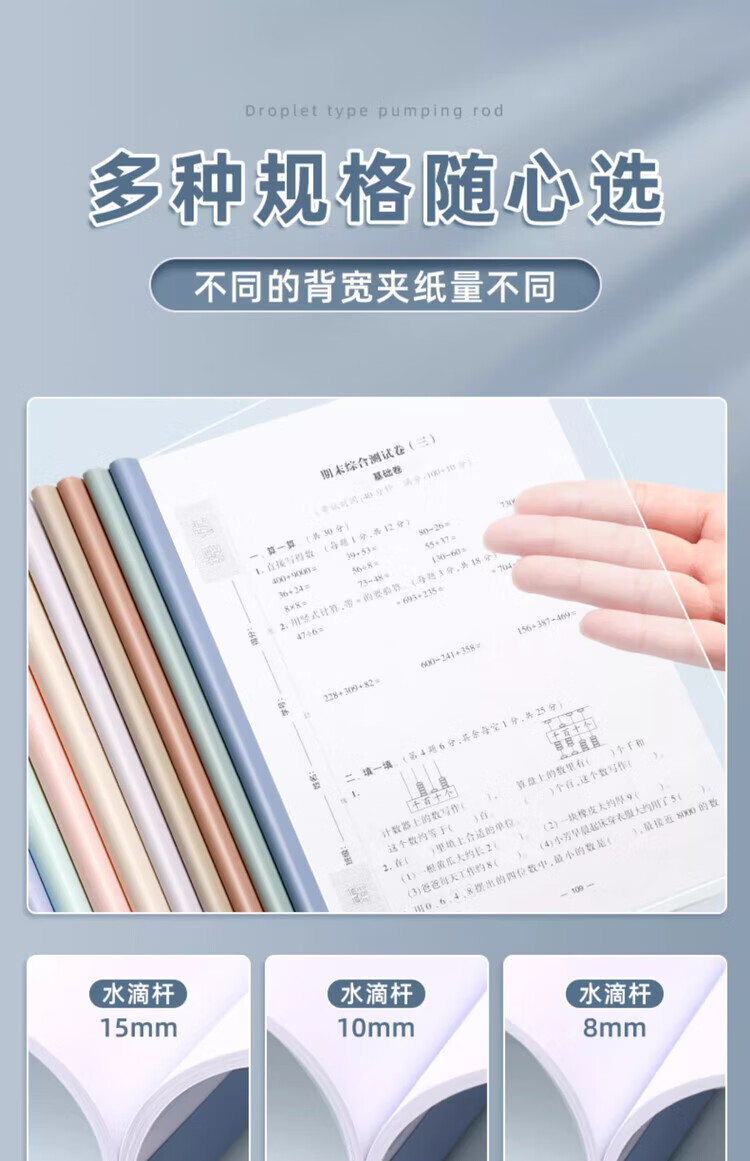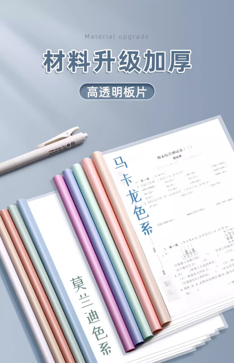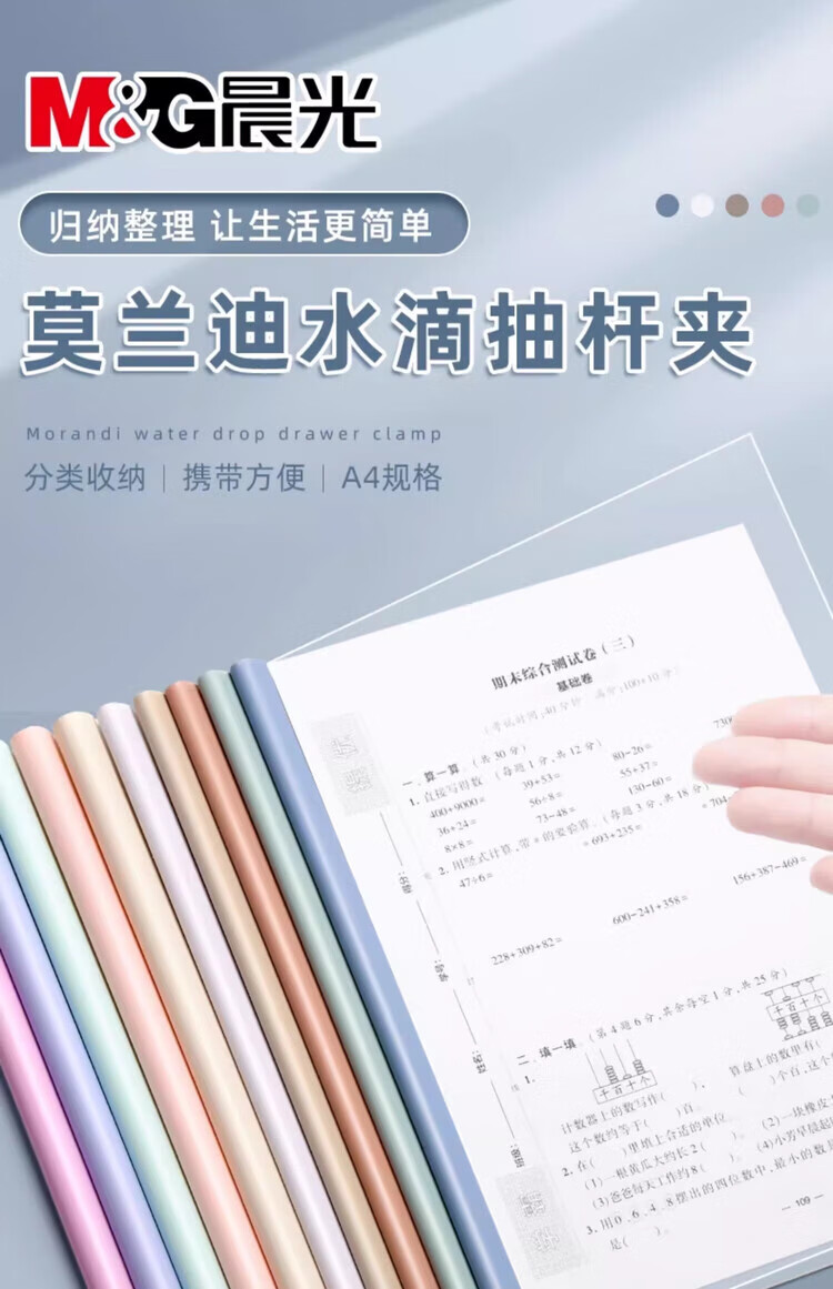 晨光(M&G)抽杆夹透明插页a4拉杆夹加厚固定抽干夹小学生专用试卷收纳整理夹资料夹档案夹办公用品 马卡龙色-水滴杆(15mm) 5个装