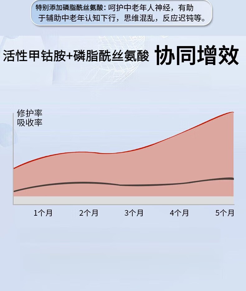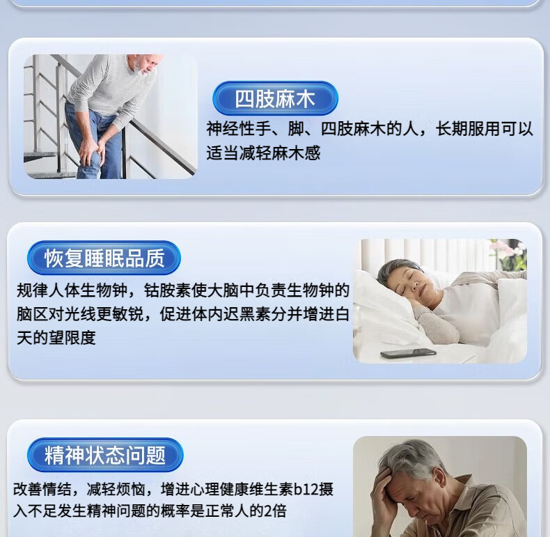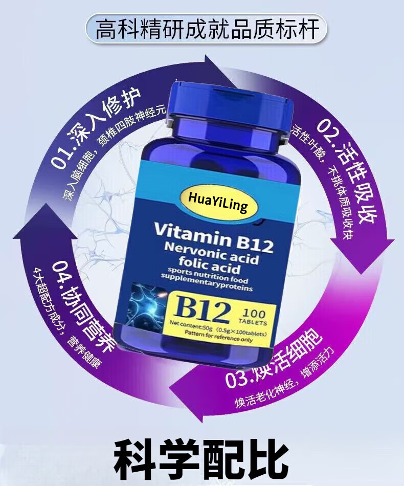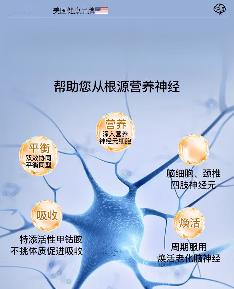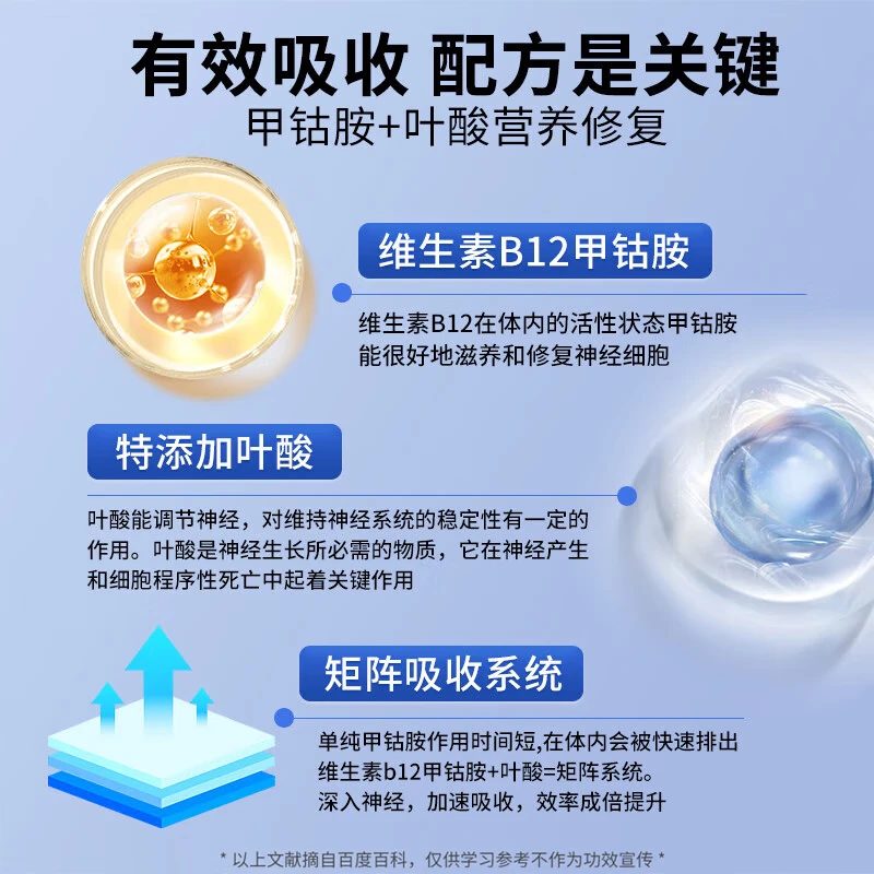 H[官方正品]美国进口原料甲钴胺营养修复神经维生素b12叶酸手脚麻 正品1瓶【特惠补贴】 100粒*1瓶