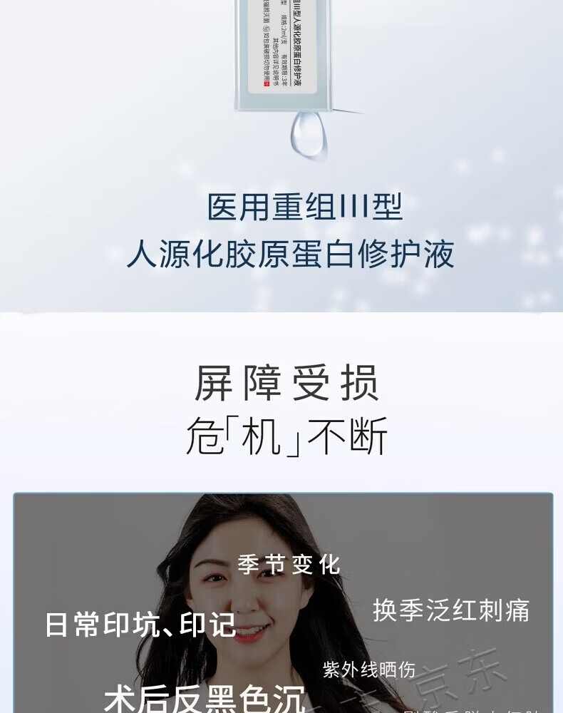 唯拉珠医美医用重组次抛型胶原蛋白激光术后修护肌底补水械字号 医用胶原蛋白修护液 3盒(30支次抛状)