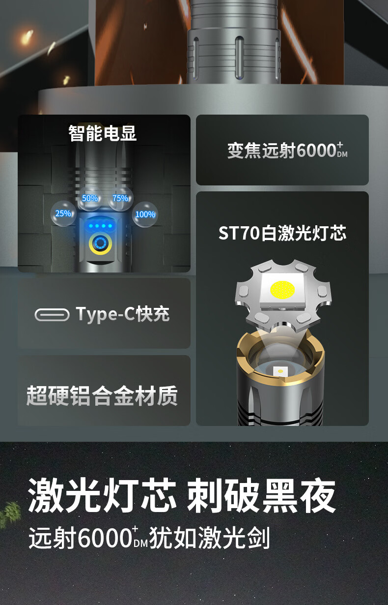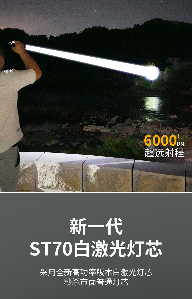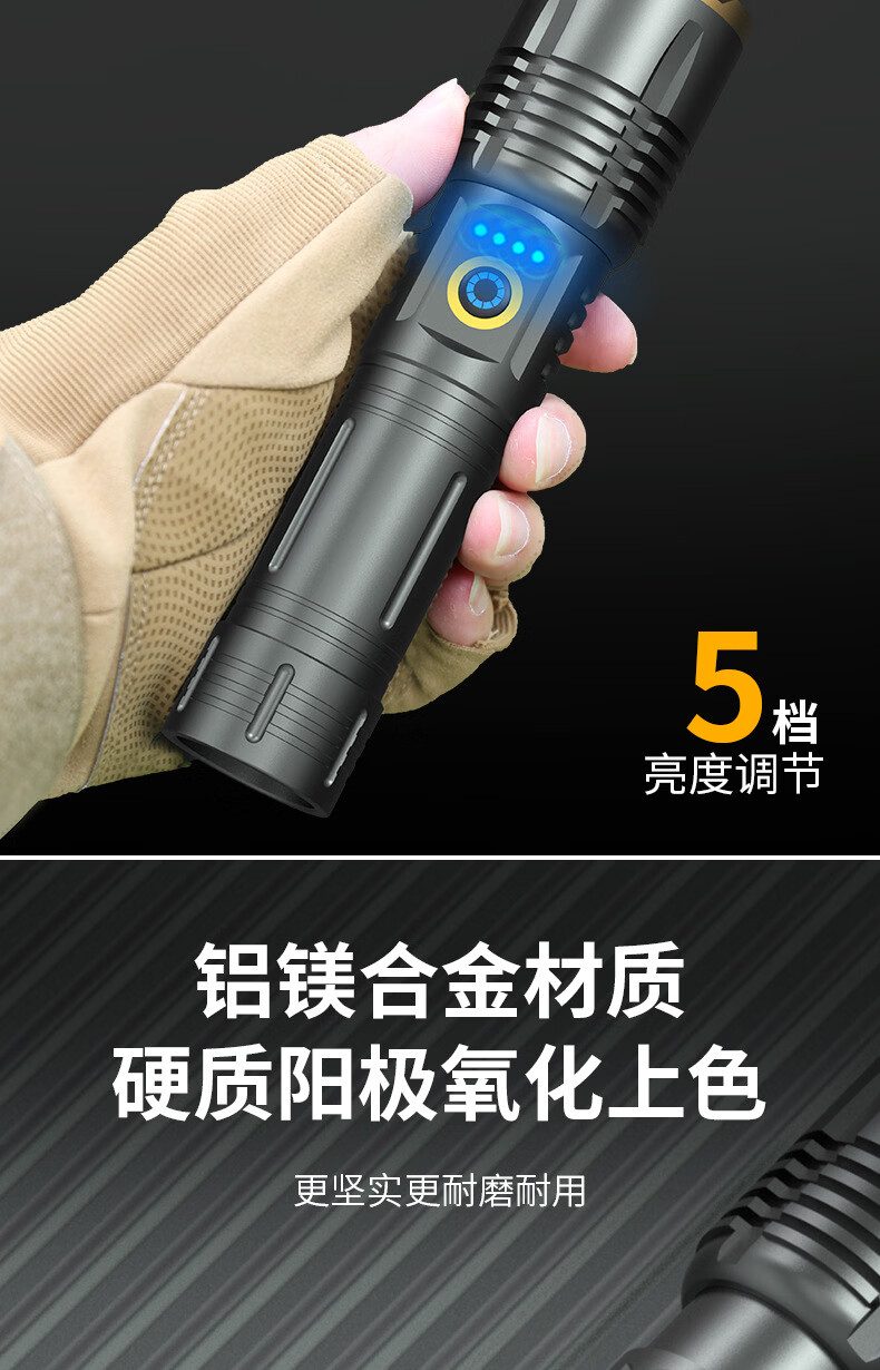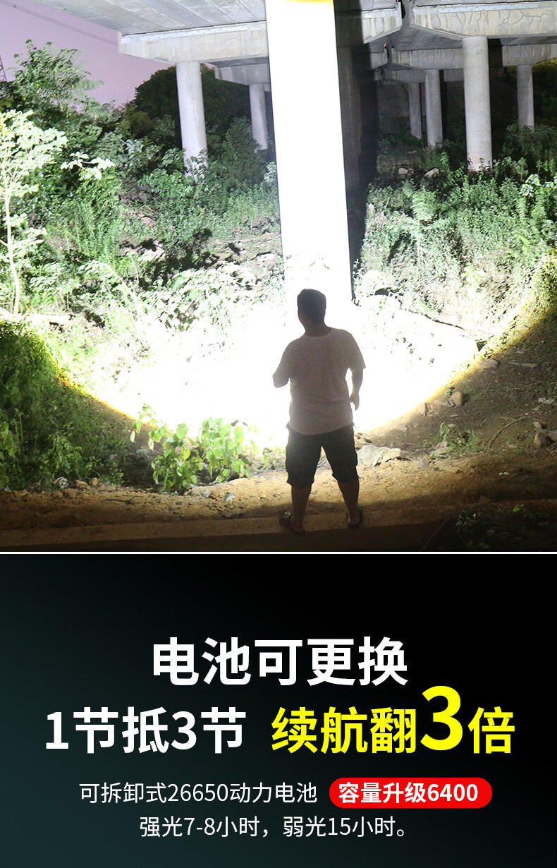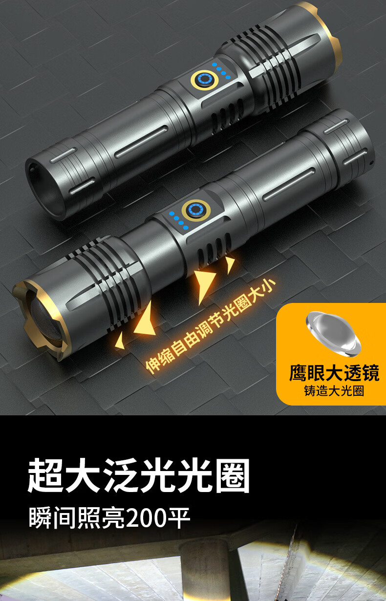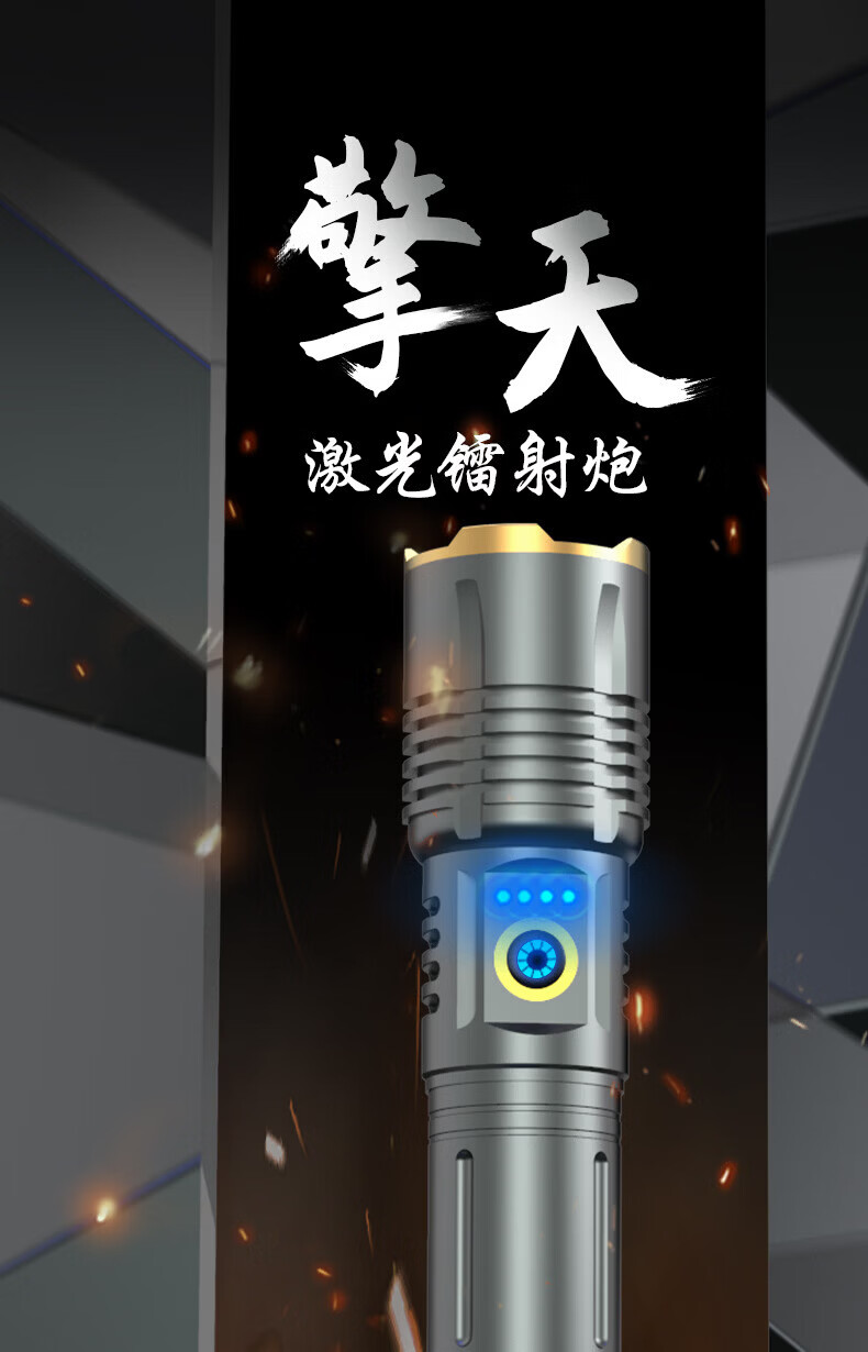 CLowicsr德国品质强光手电筒强光200000流明穿天炮超长续航野外生存大容量 【铝合金】苍龙手电+可拆卸单锂电 【高配-高亮】59000K