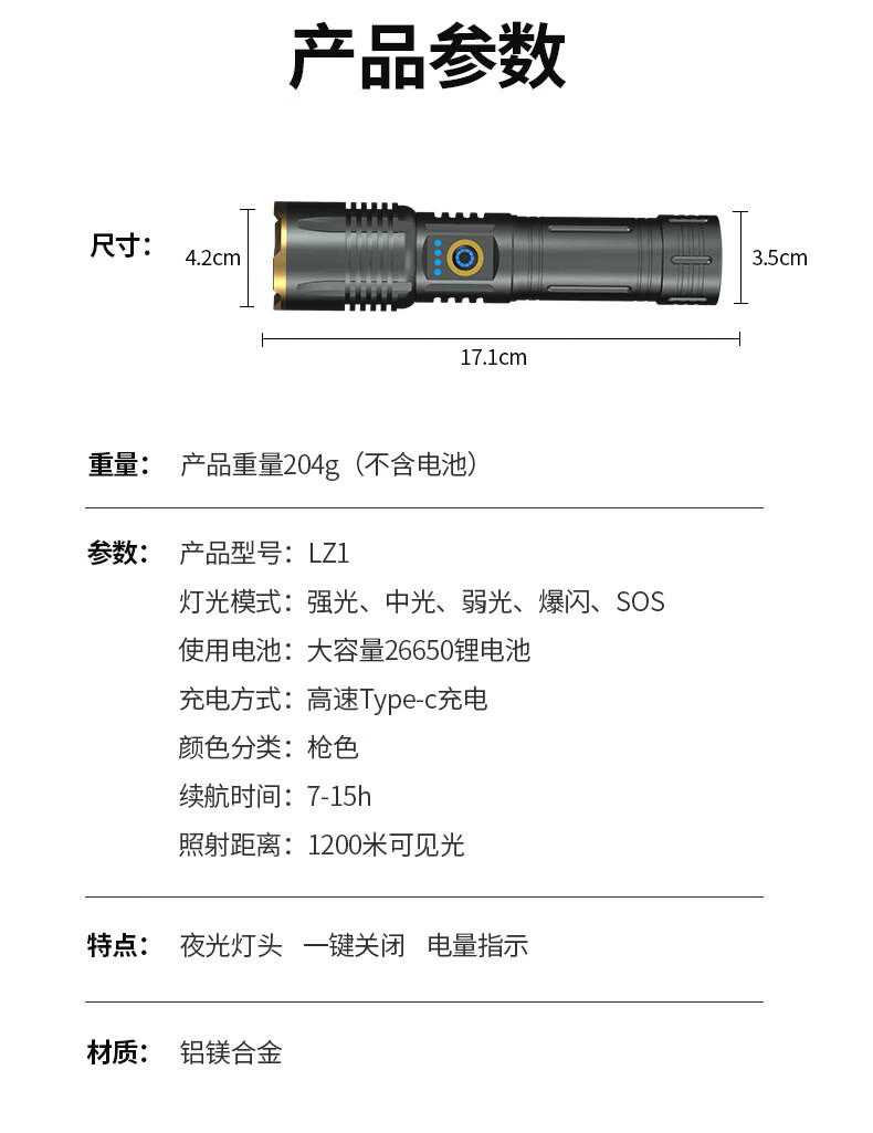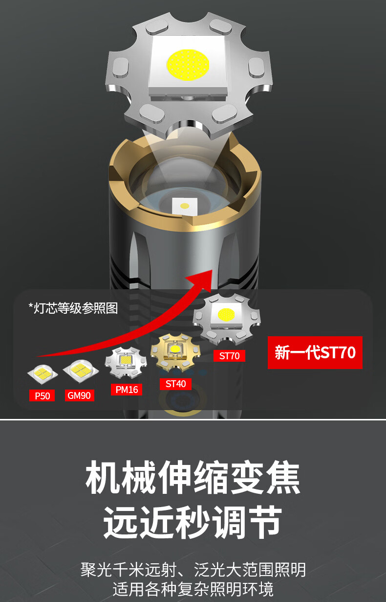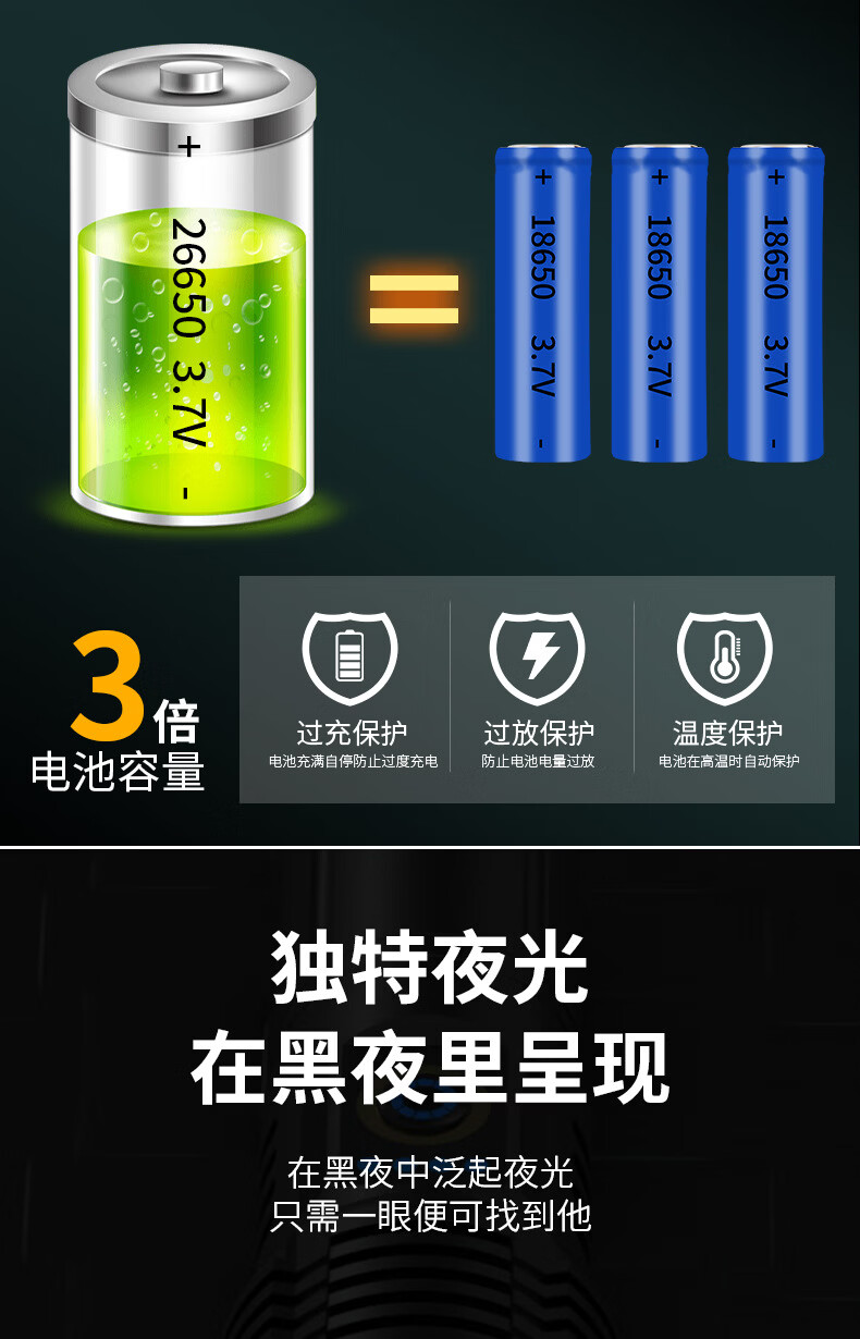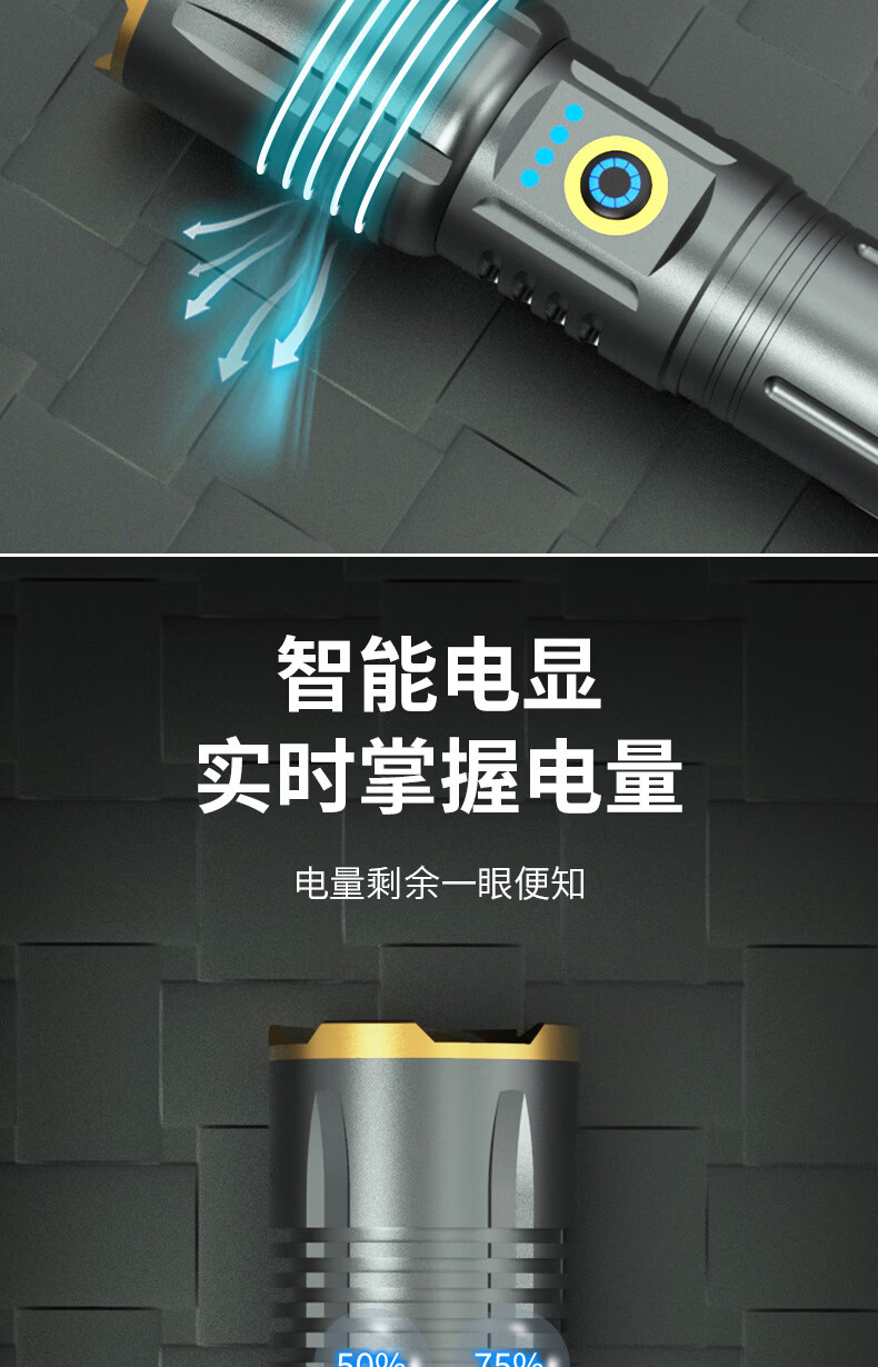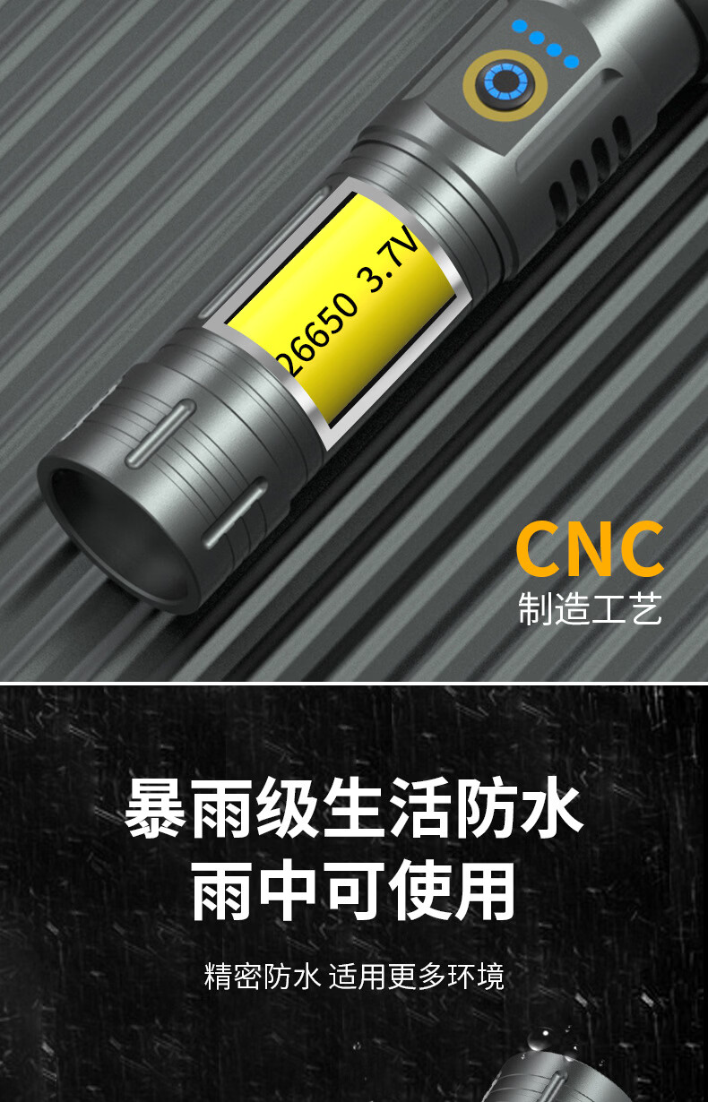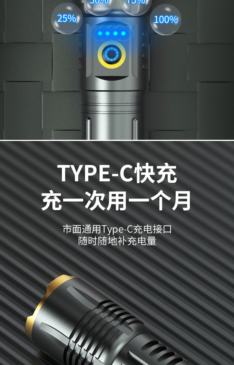 CLowicsr德国品质强光手电筒强光200000流明穿天炮超长续航野外生存大容量 【铝合金】苍龙手电+可拆卸单锂电 【高配-高亮】59000K