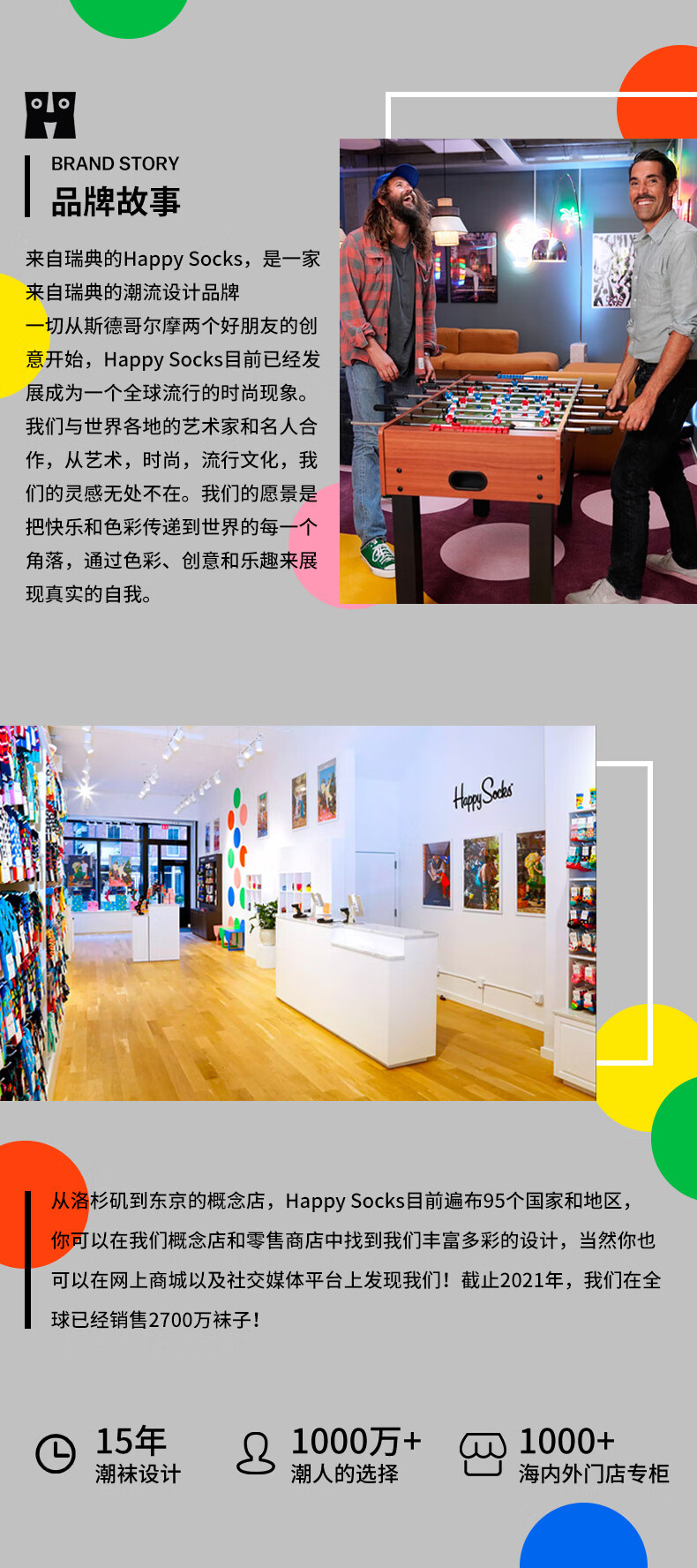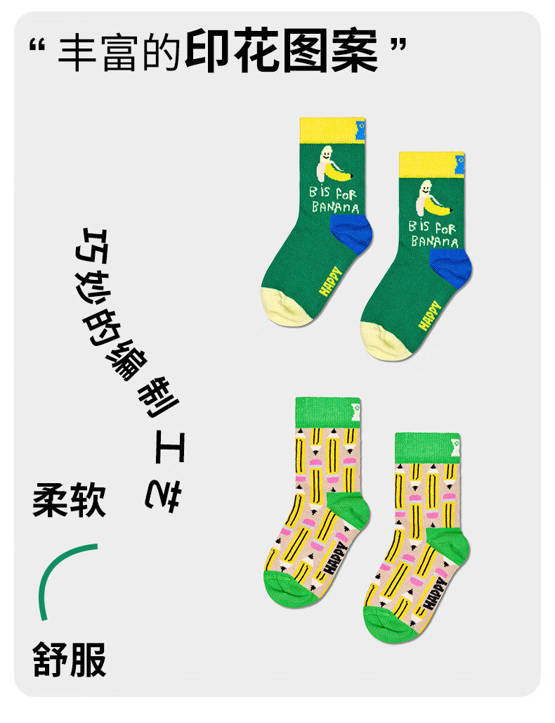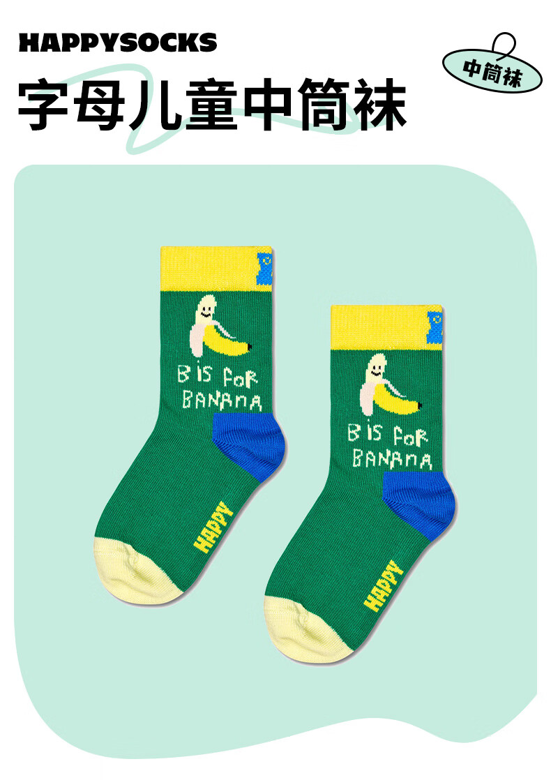Happy Socks【新品】Happy Socks薄荷曼波中筒袜儿童袜子秋冬幼儿园袜子 小钢笔 1双 均码 4-6Y