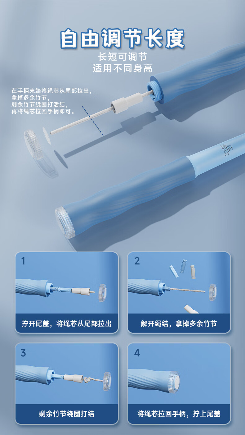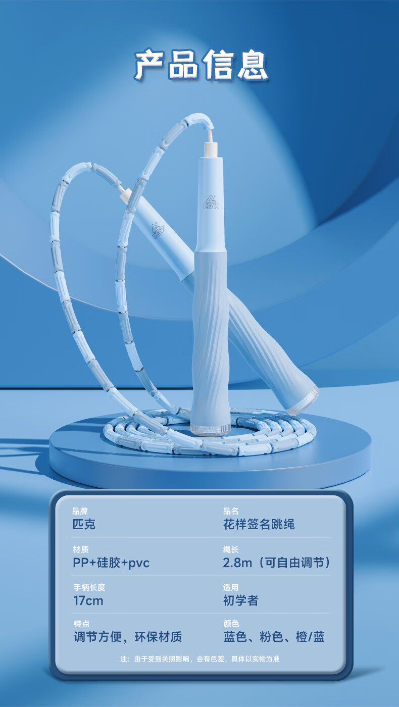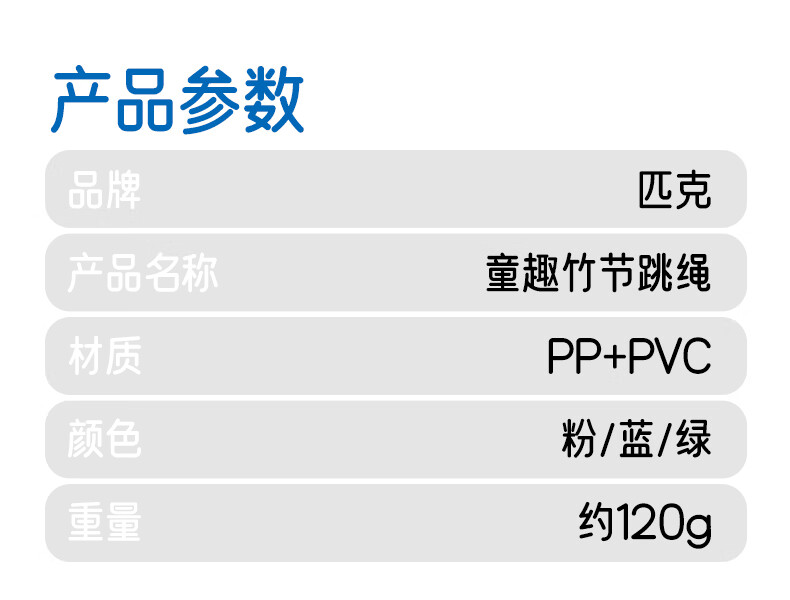 匹克竹节跳绳儿童小学生幼儿园3-5-6-12岁考试训练可签名软管绳 可写名字/环保材料【蓝色】 学校推荐/考试训练