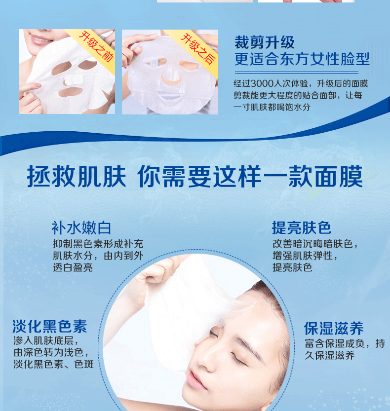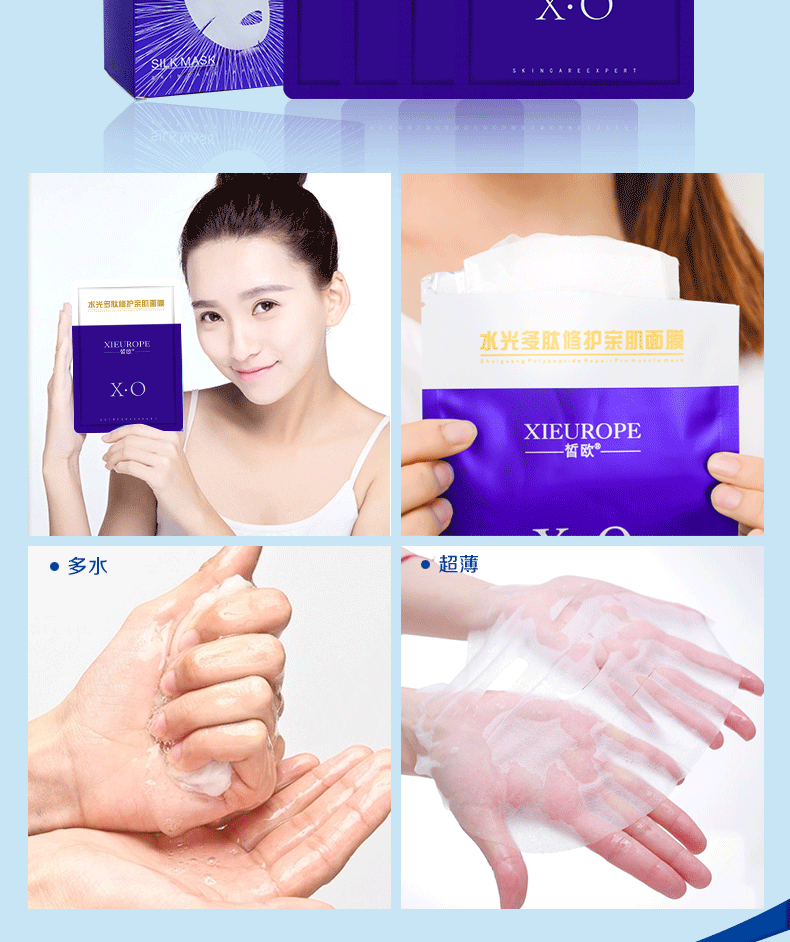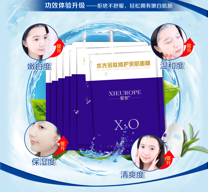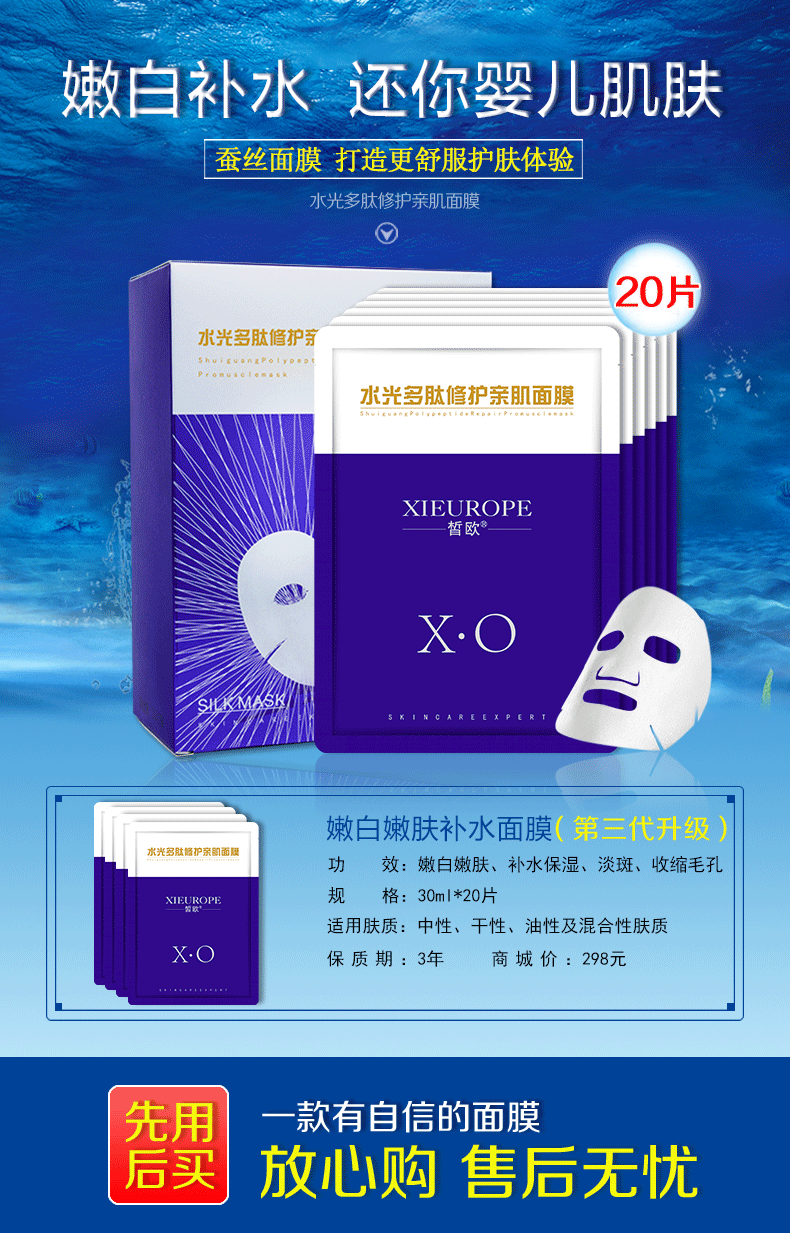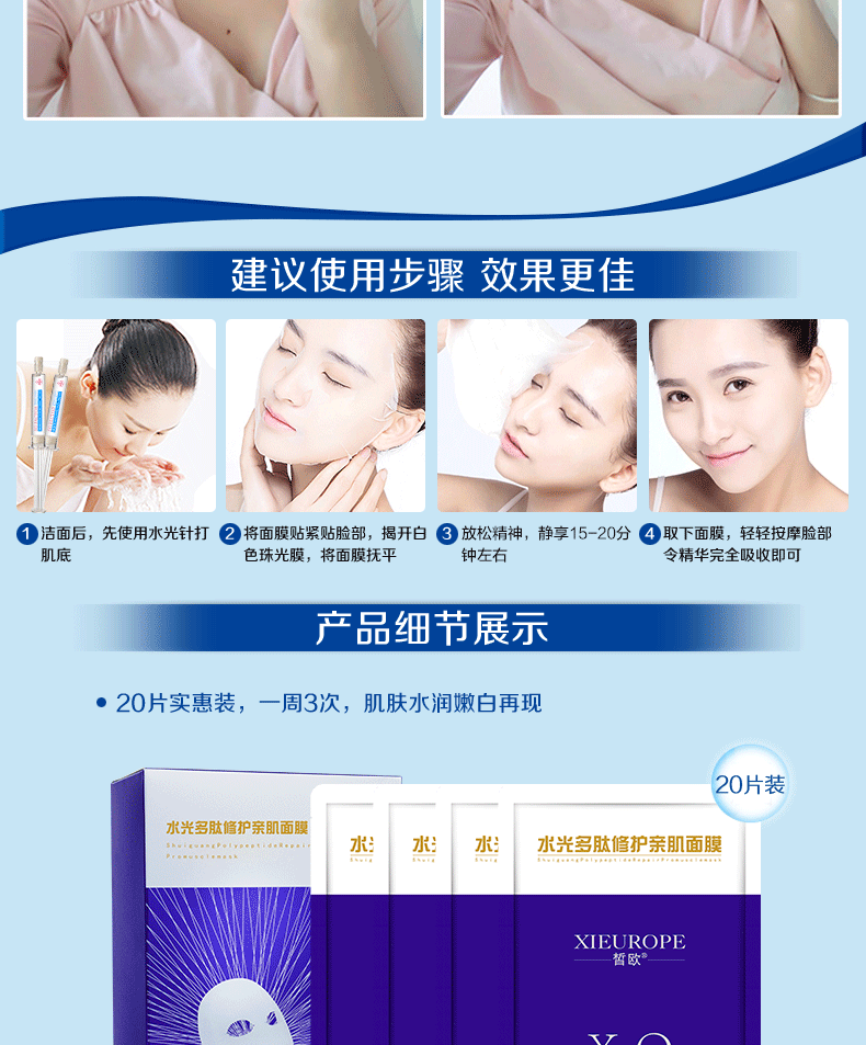 皙欧水光多肽面膜深层补水保湿收缩毛孔抗皱紧致淡化痘印提亮肤色护肤 20片/盒【拍5盒送一盒】