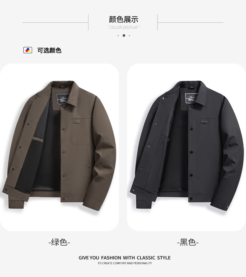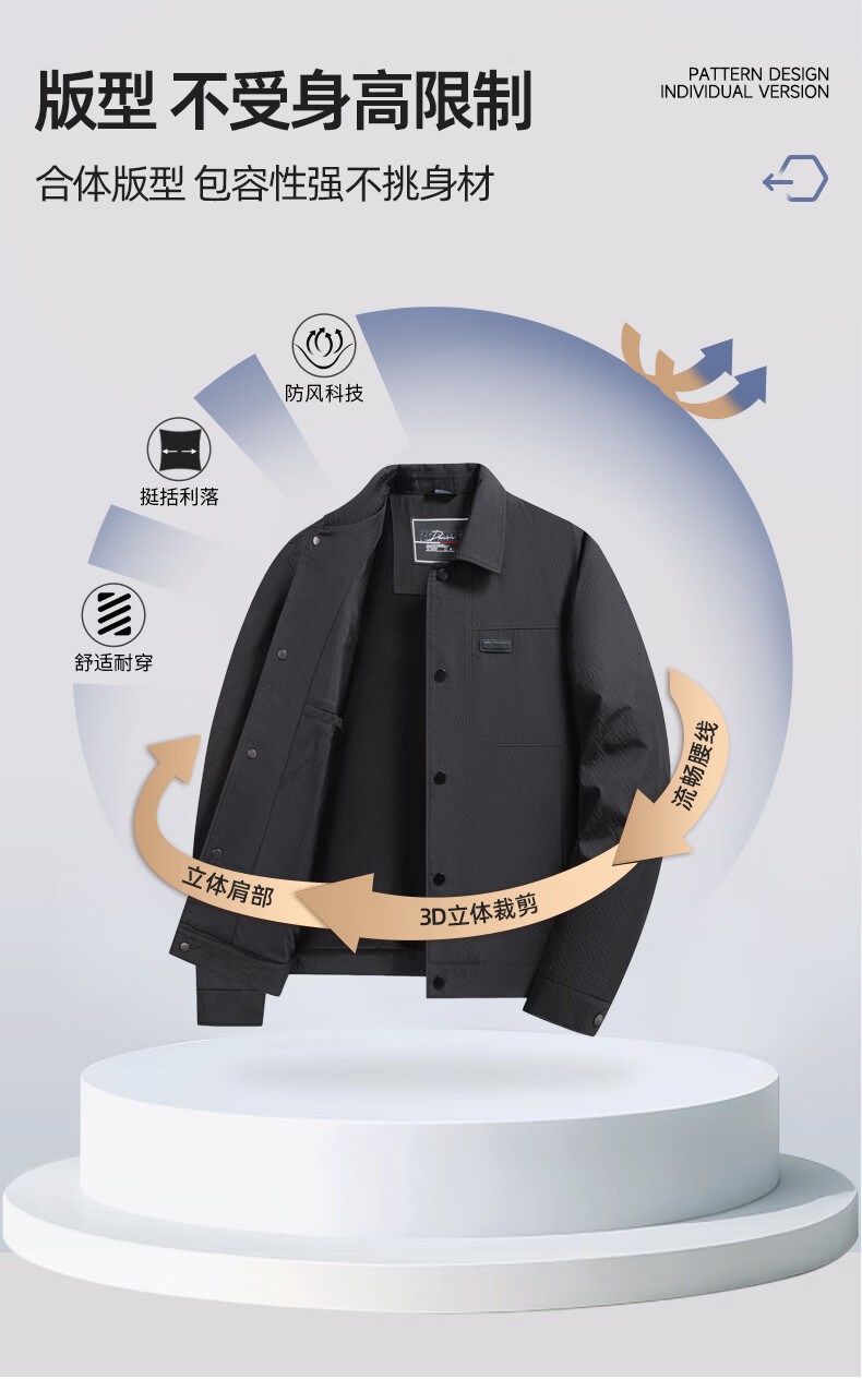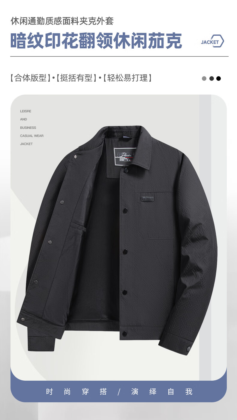 SHANSHAN杉杉翻领夹克男2026年春季新款商务休闲百搭上衣简约时尚通勤外套 咖色 4XL /195