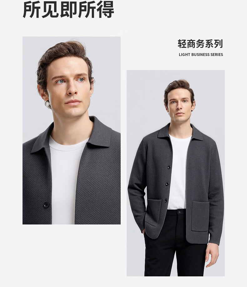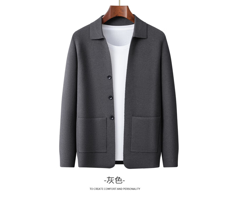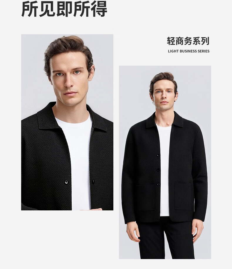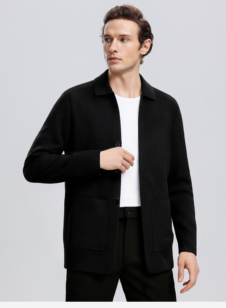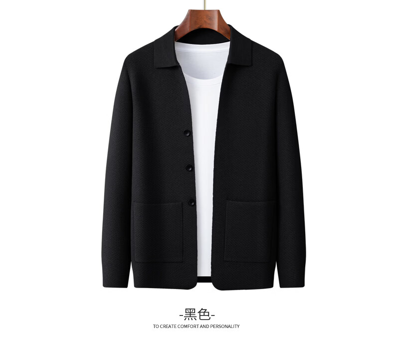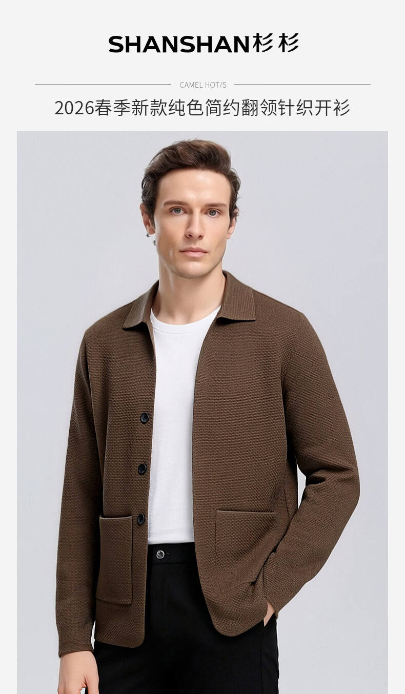 SHANSHAN杉杉男士针织开衫2026春季新款纯色简约上衣外套翻领休闲日常衣服 黑色 S /165