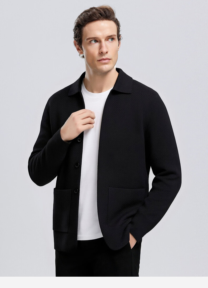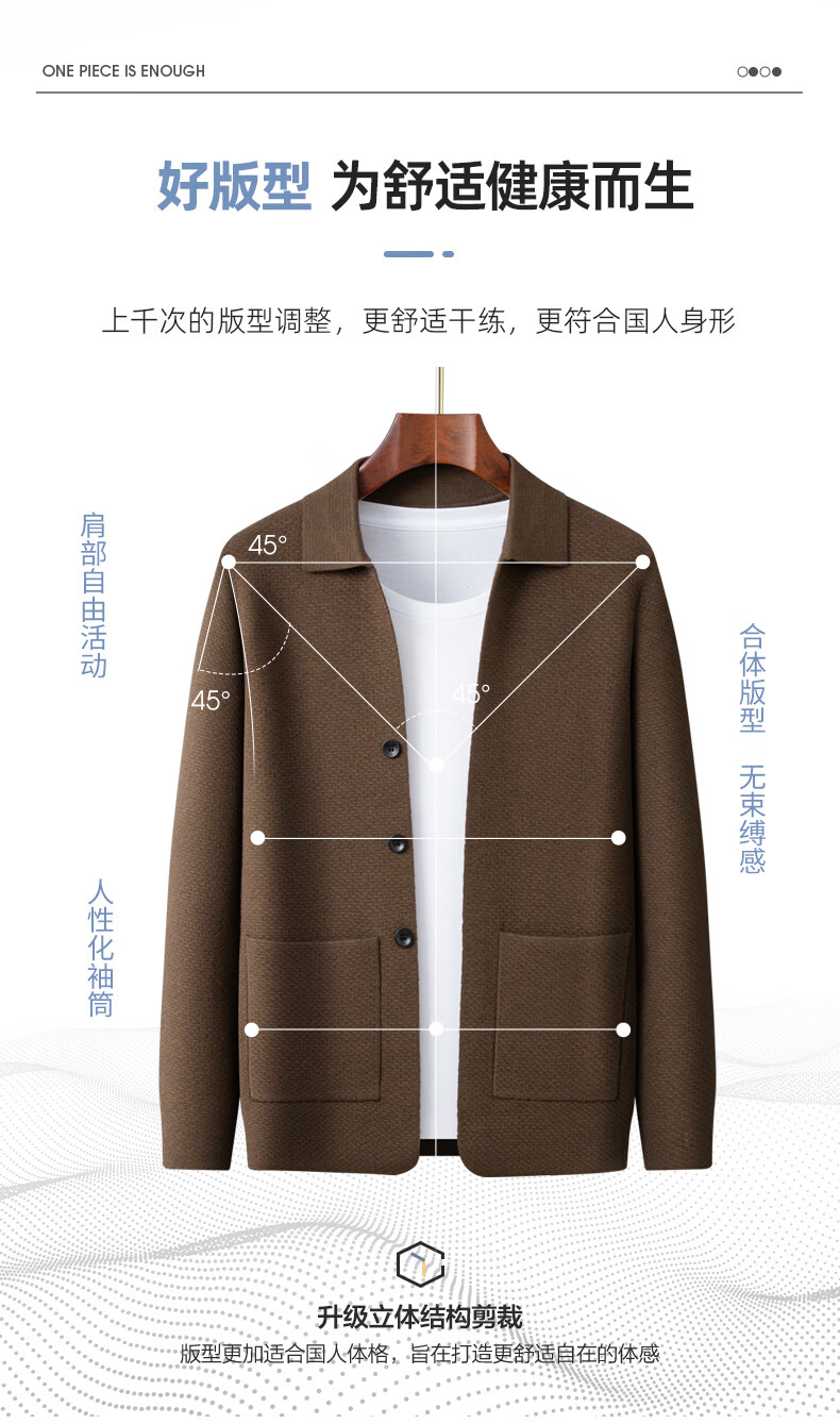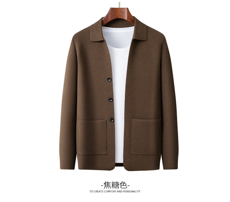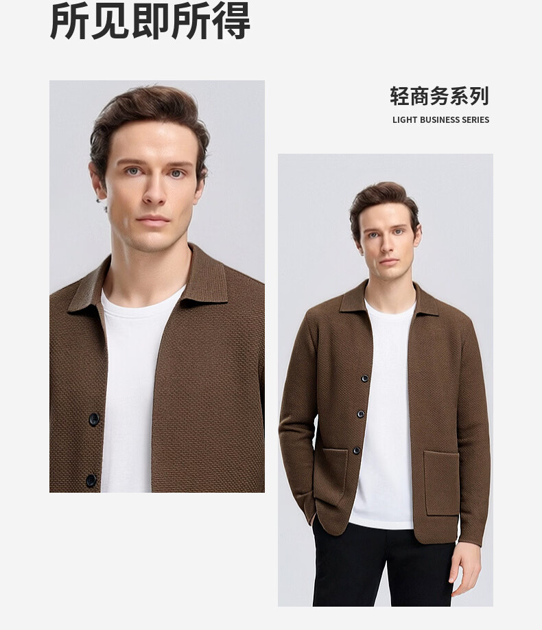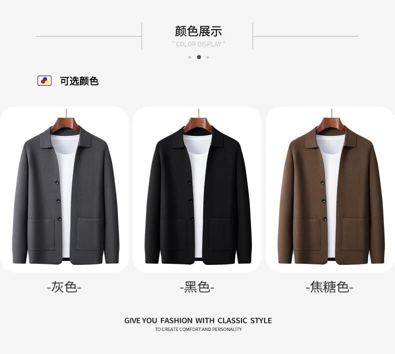 SHANSHAN杉杉男士针织开衫2026春季新款纯色简约上衣外套翻领休闲日常衣服 黑色 S /165