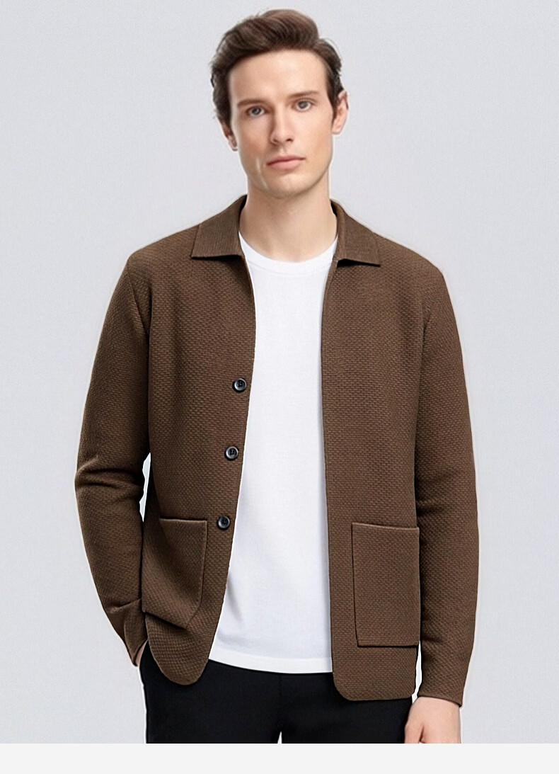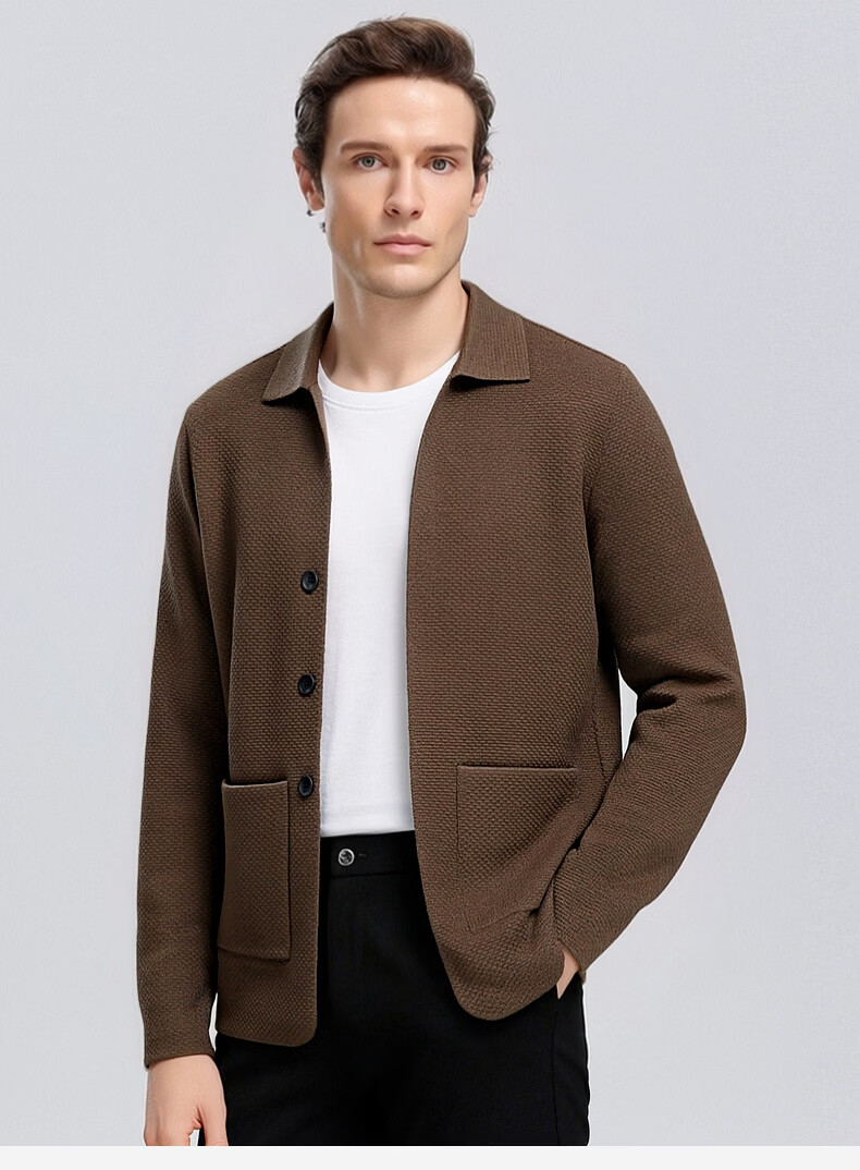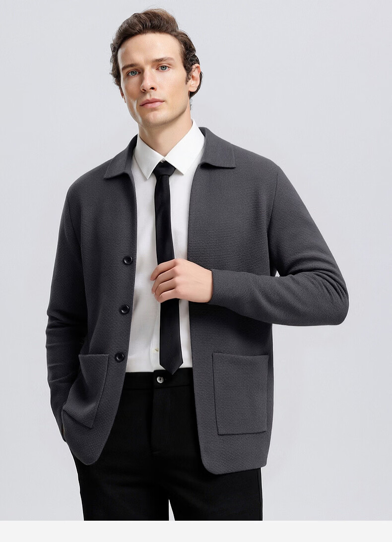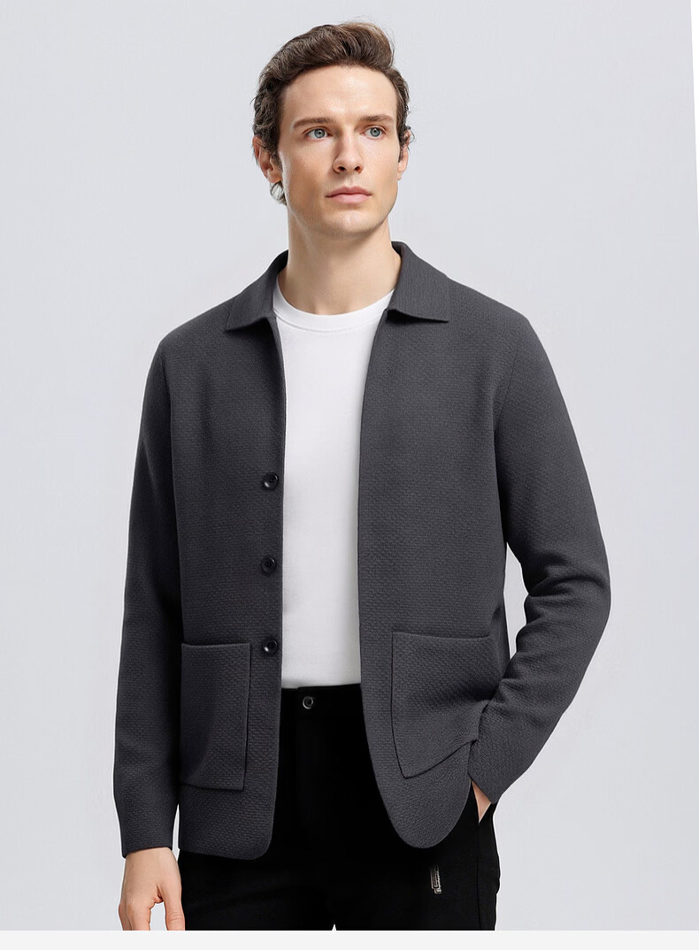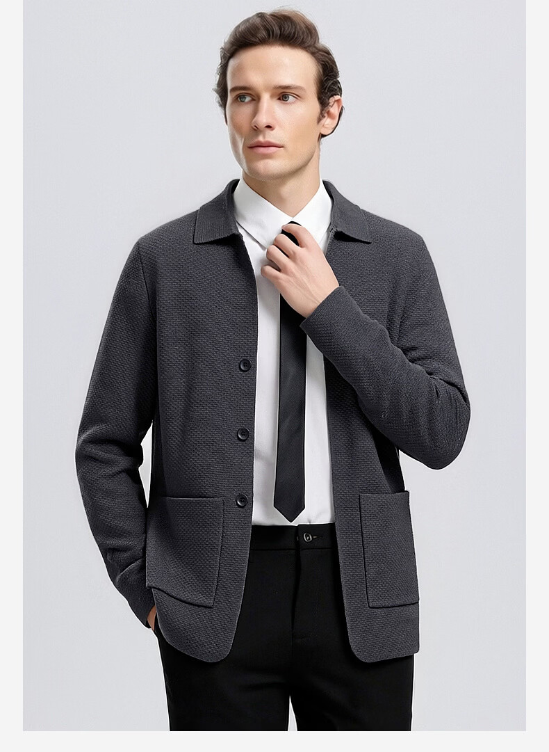 SHANSHAN杉杉男士针织开衫2026春季新款纯色简约上衣外套翻领休闲日常衣服 黑色 S /165