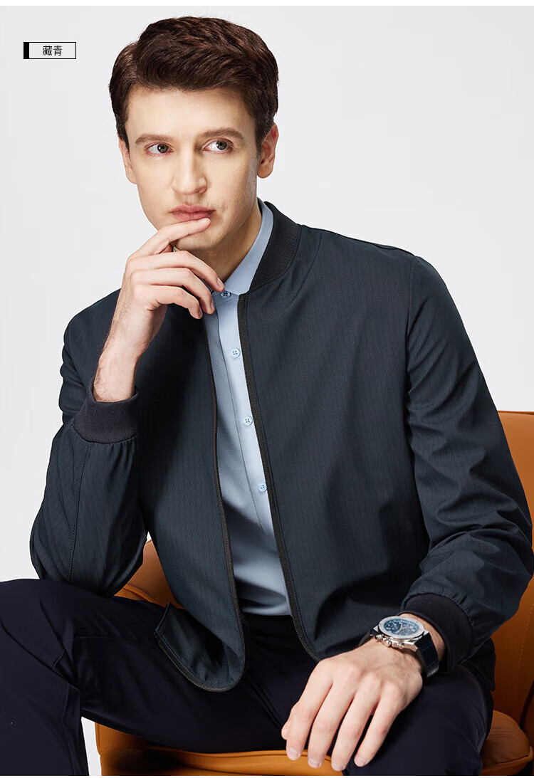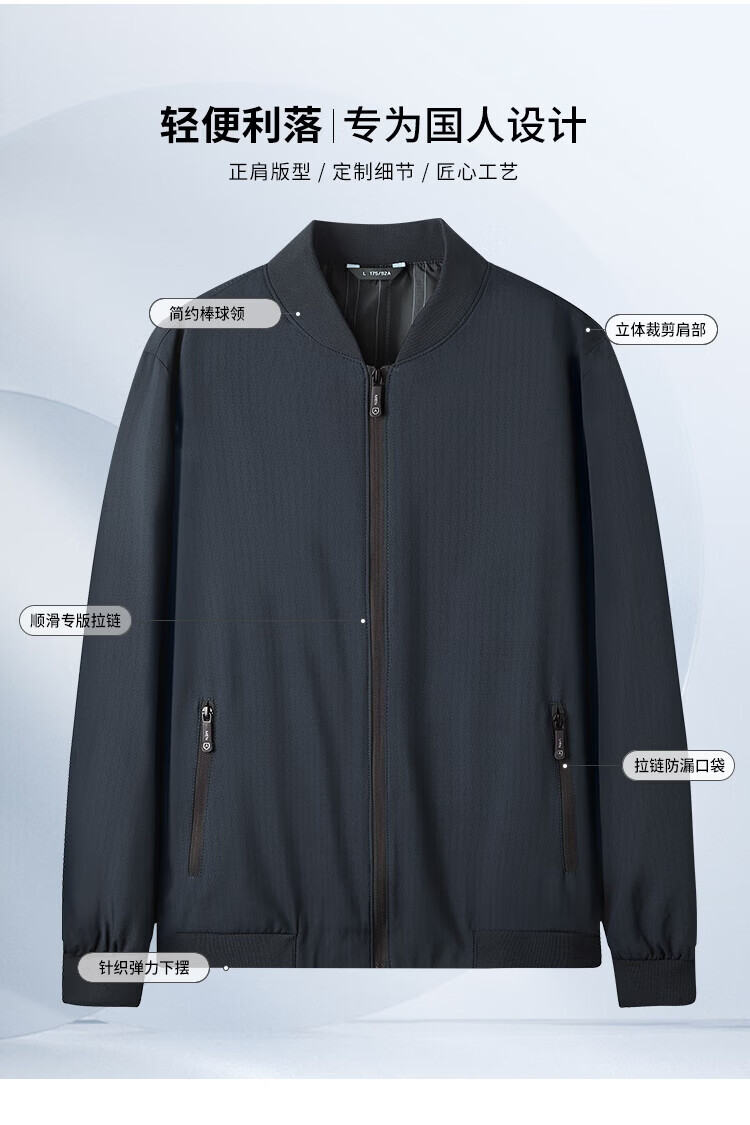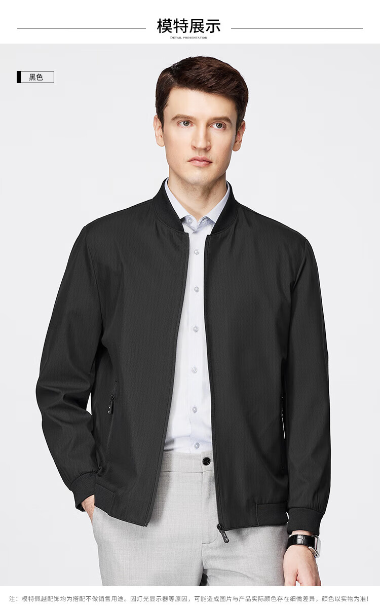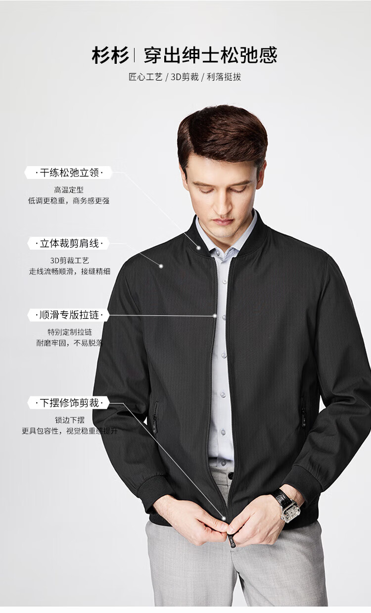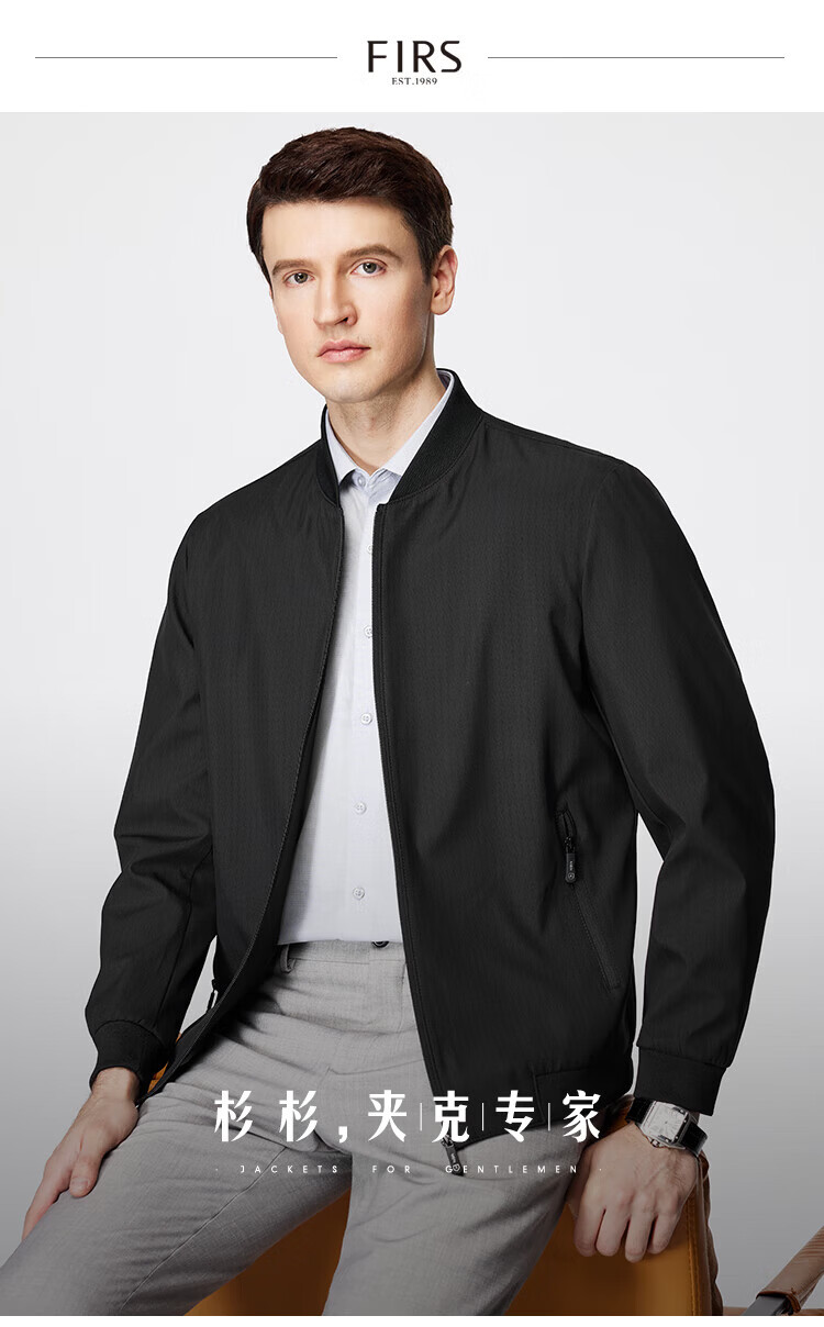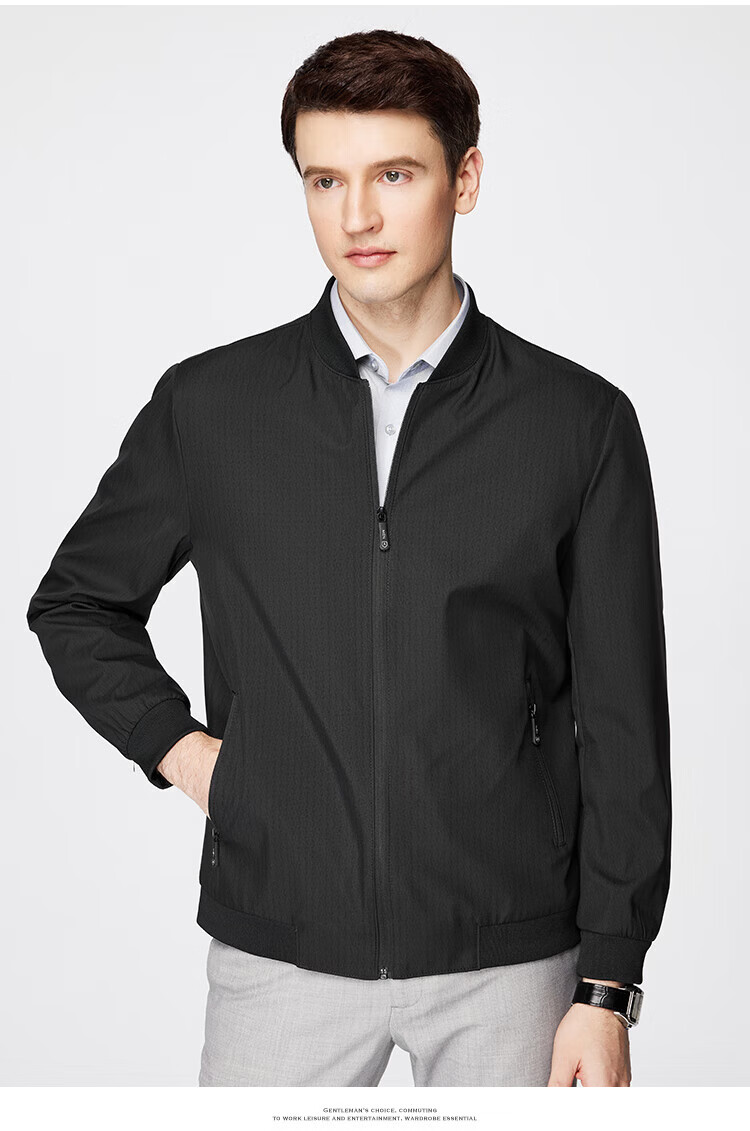 杉杉(FIRS)棒球领夹克男春秋款商务休闲上衣干部抗皱防风行政顺滑外套男装 黑色(建议拍大一码) XL 180/96A