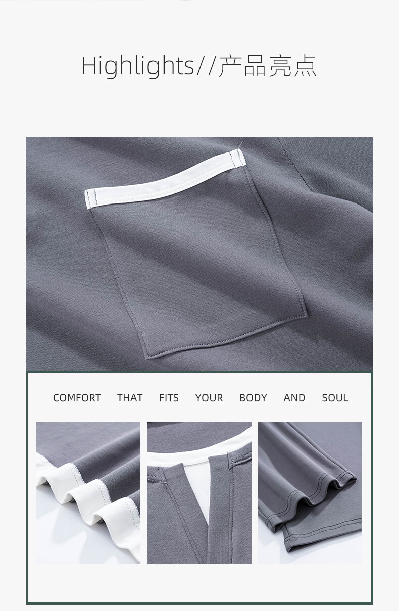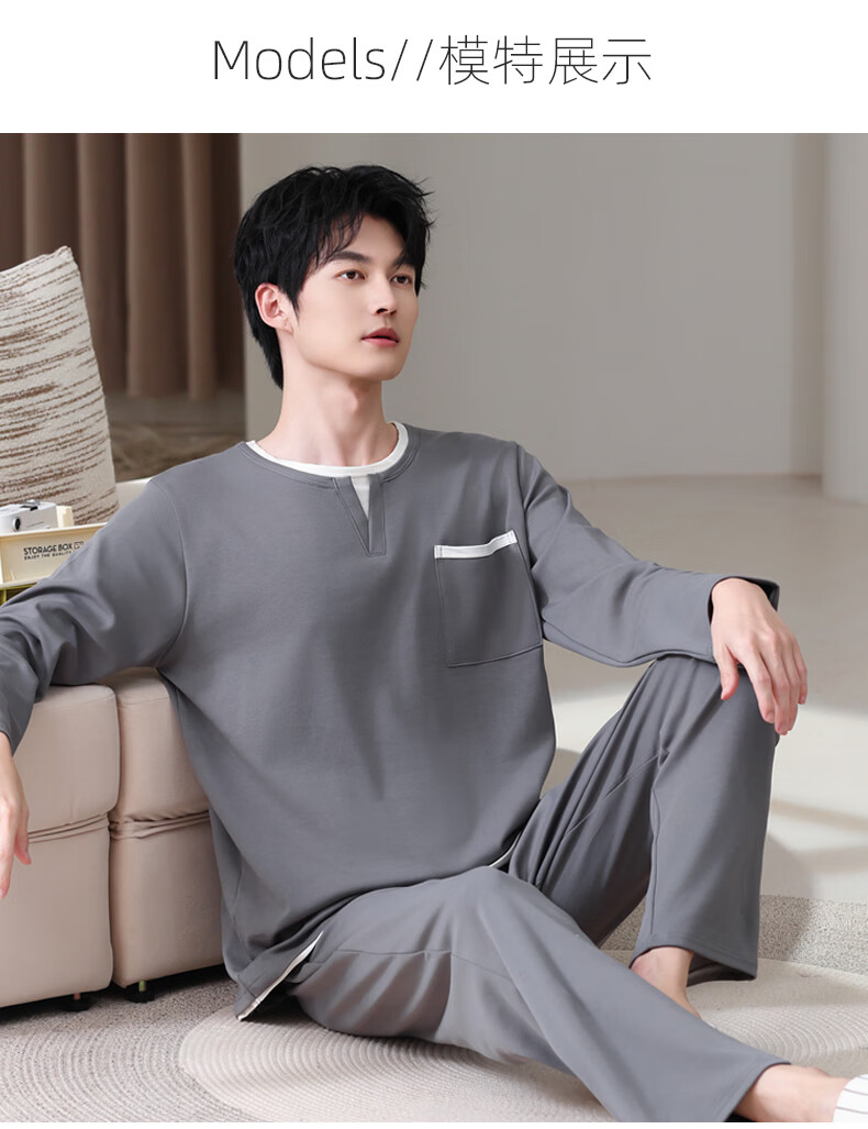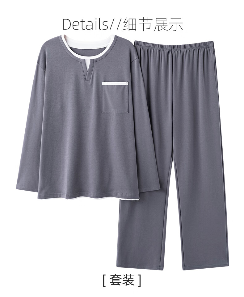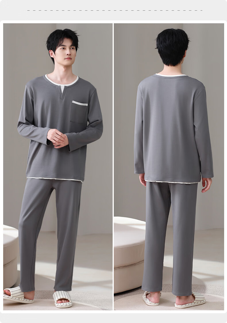 叶盼(yepan)【柔软】莱卡纯棉睡衣男士春秋长袖套头男款大码可外穿家居服套装 8605-灰色 L (170) :建议100-135斤穿着