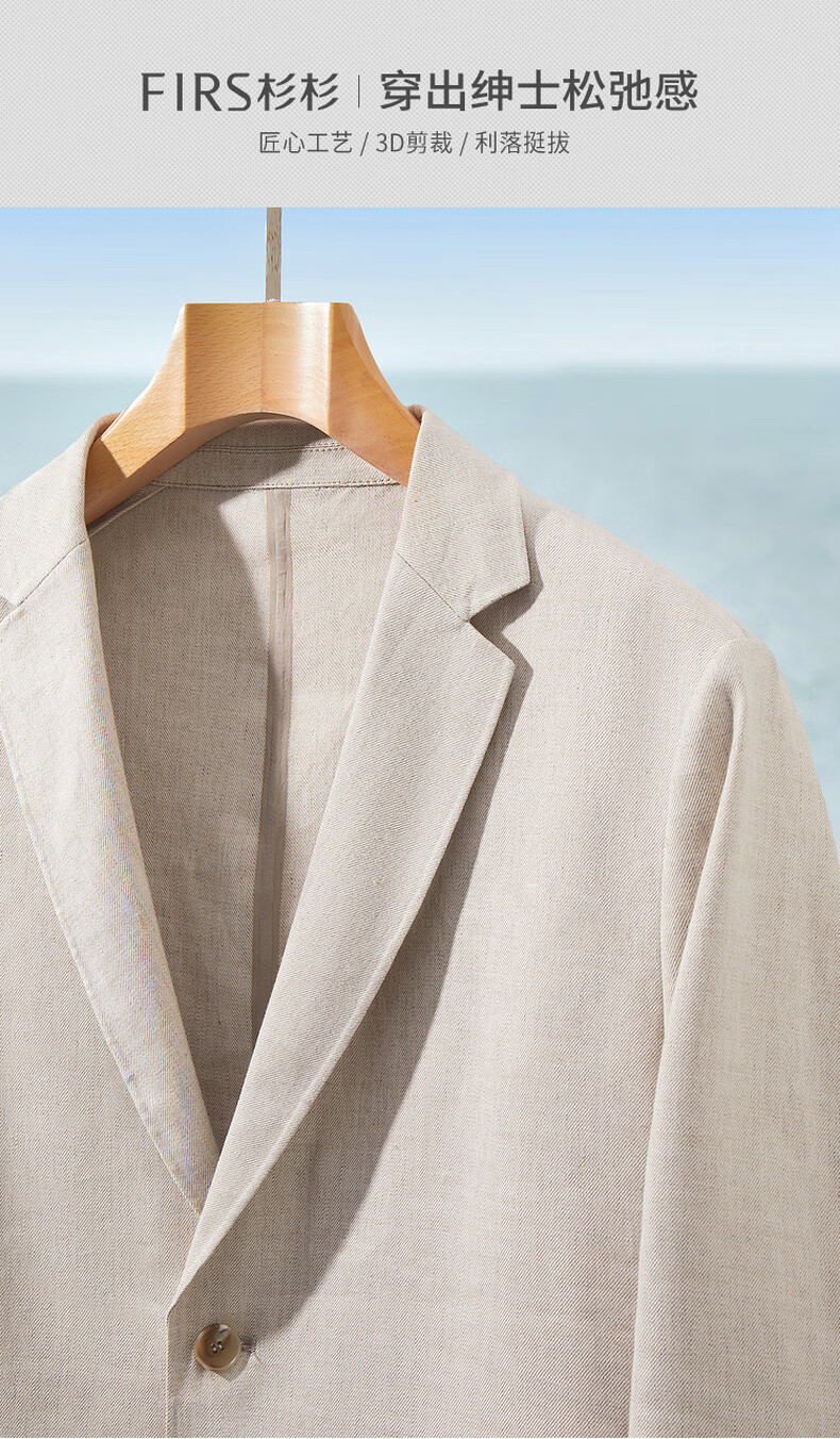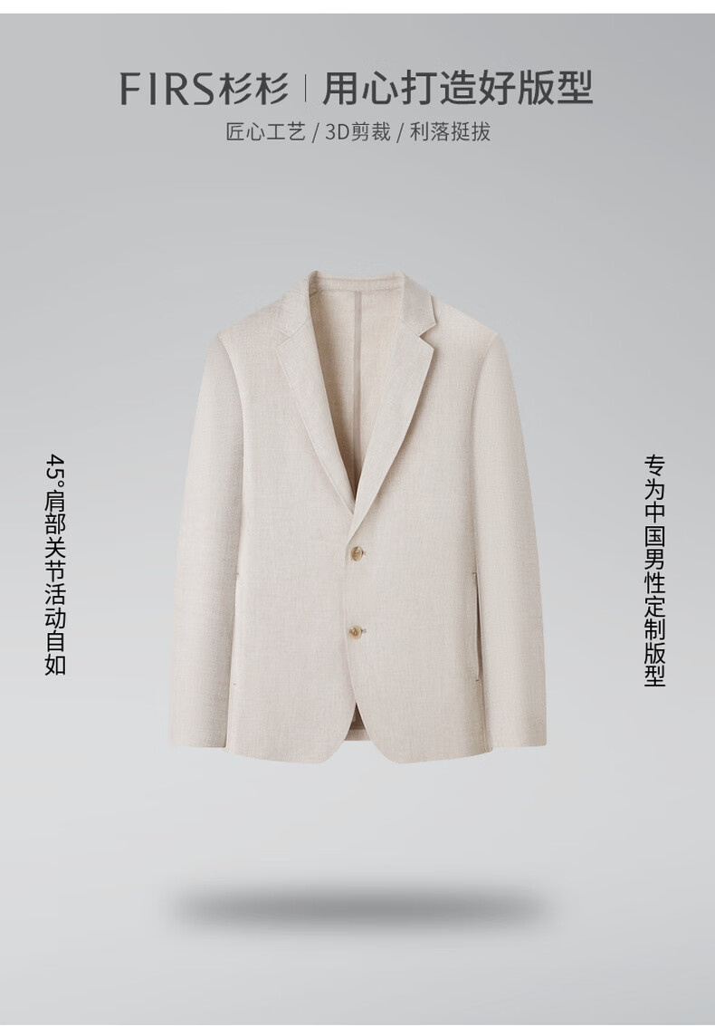 杉杉【莱赛尔+亚麻混纺 轻奢质感】春季新款商务休闲西服男 米白色 2XL