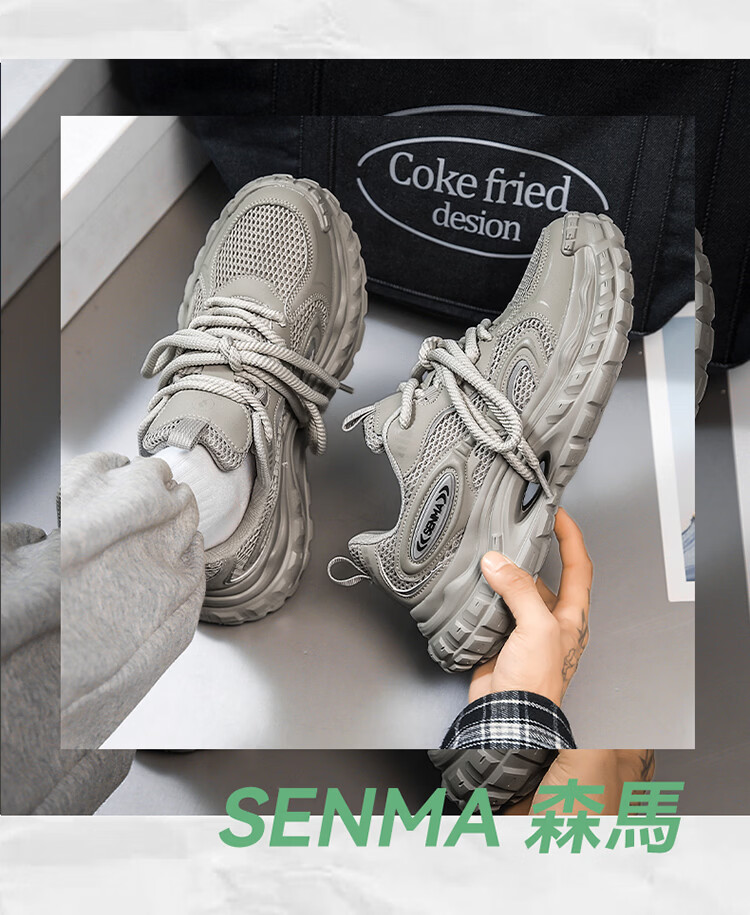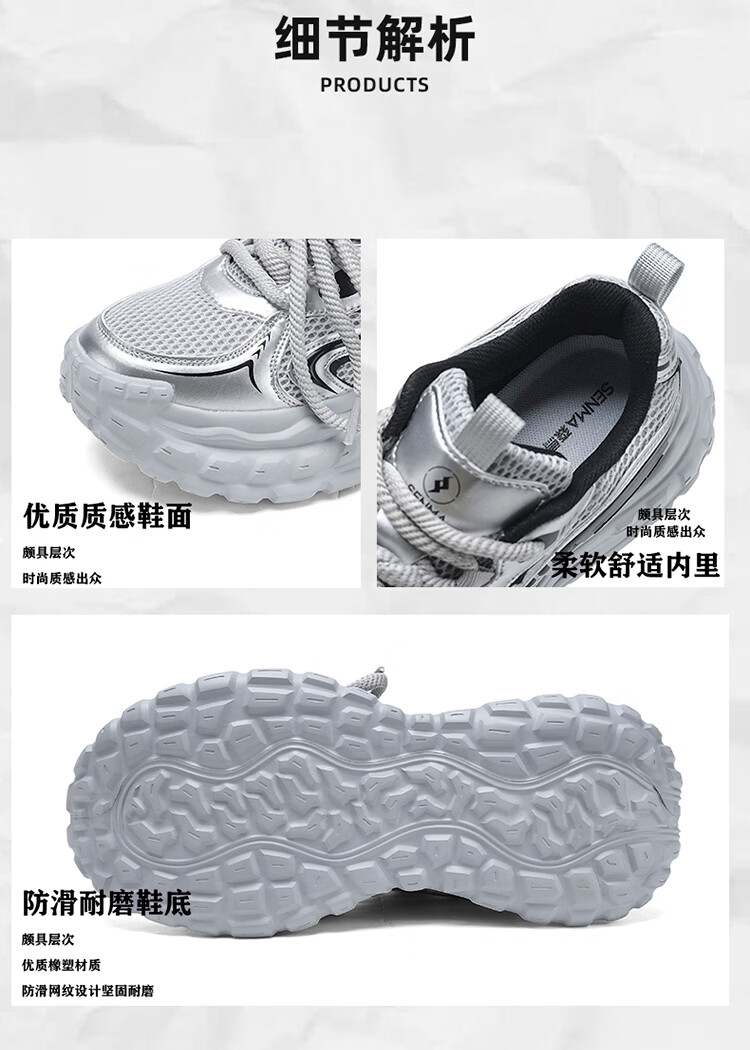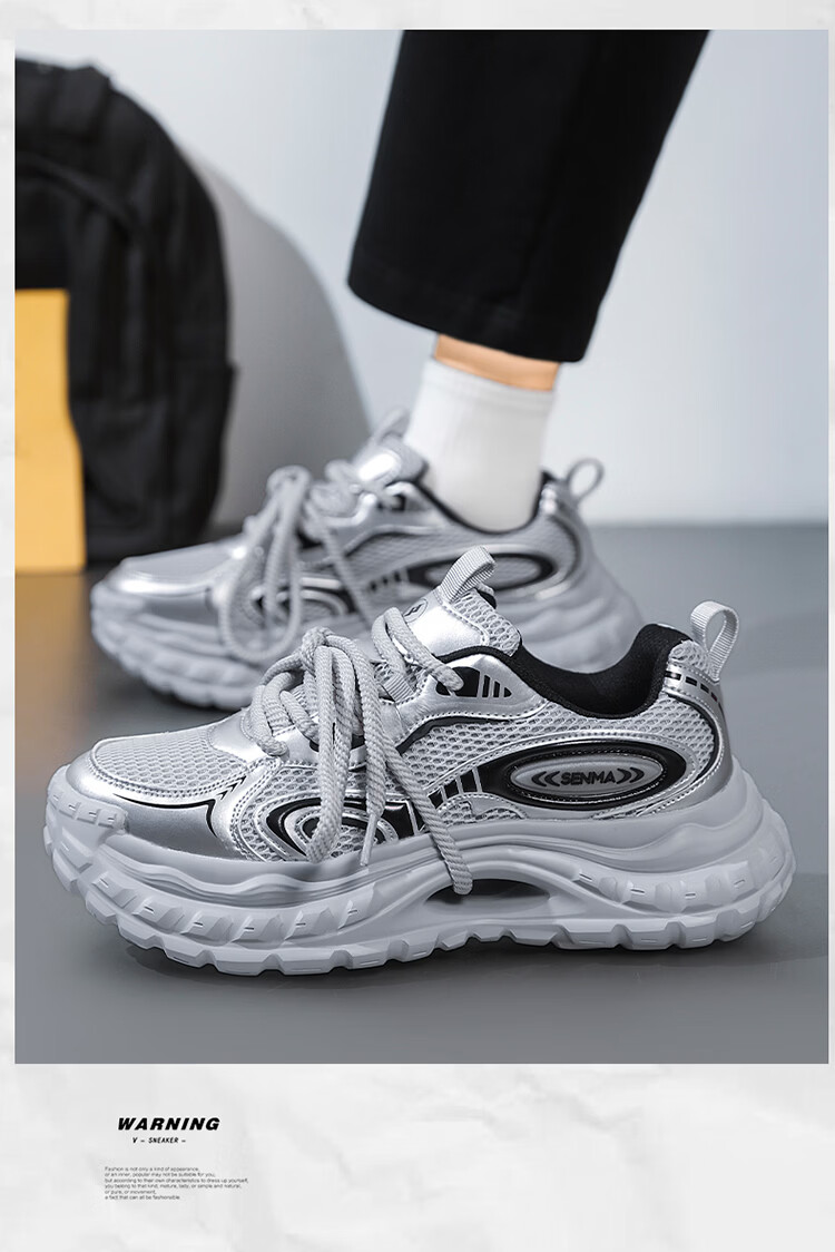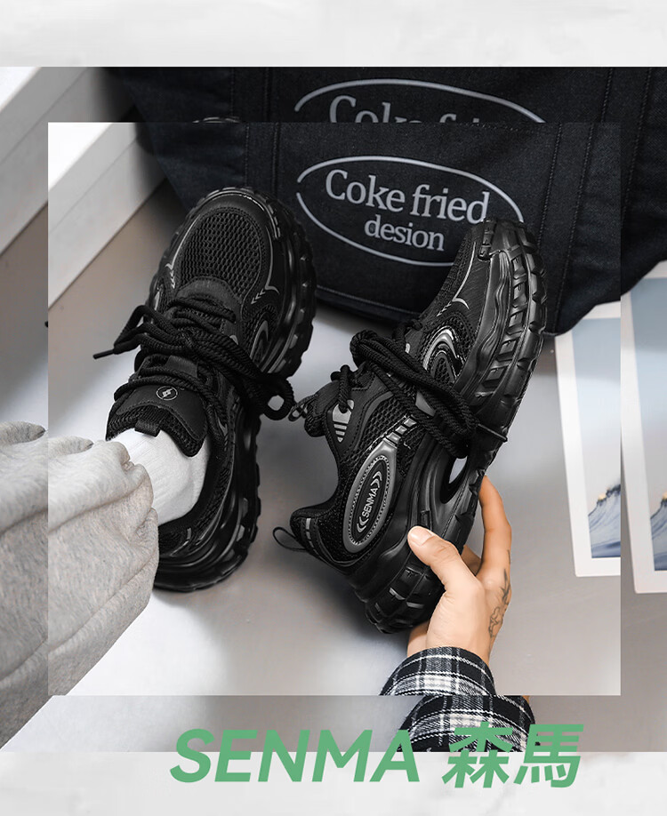 森馬男鞋春季2026年新款轻便厚底内增高运动徒步登山耐磨防滑老爹潮鞋 黑色【基础款】 39 标准码数/现货秒发