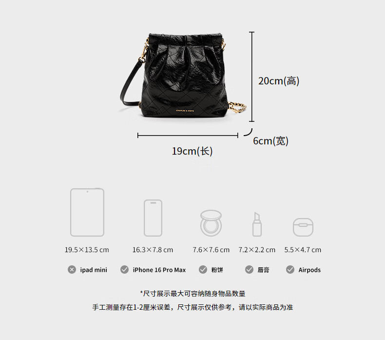 CHARLES&KEITH迷你菱格链条流浪包单肩包双肩包包女包生日礼物CK2-60782390