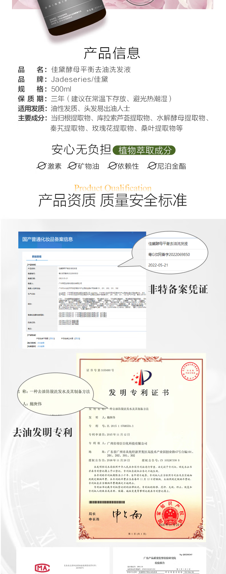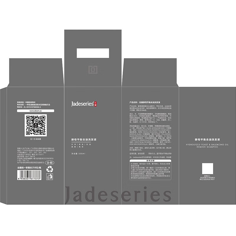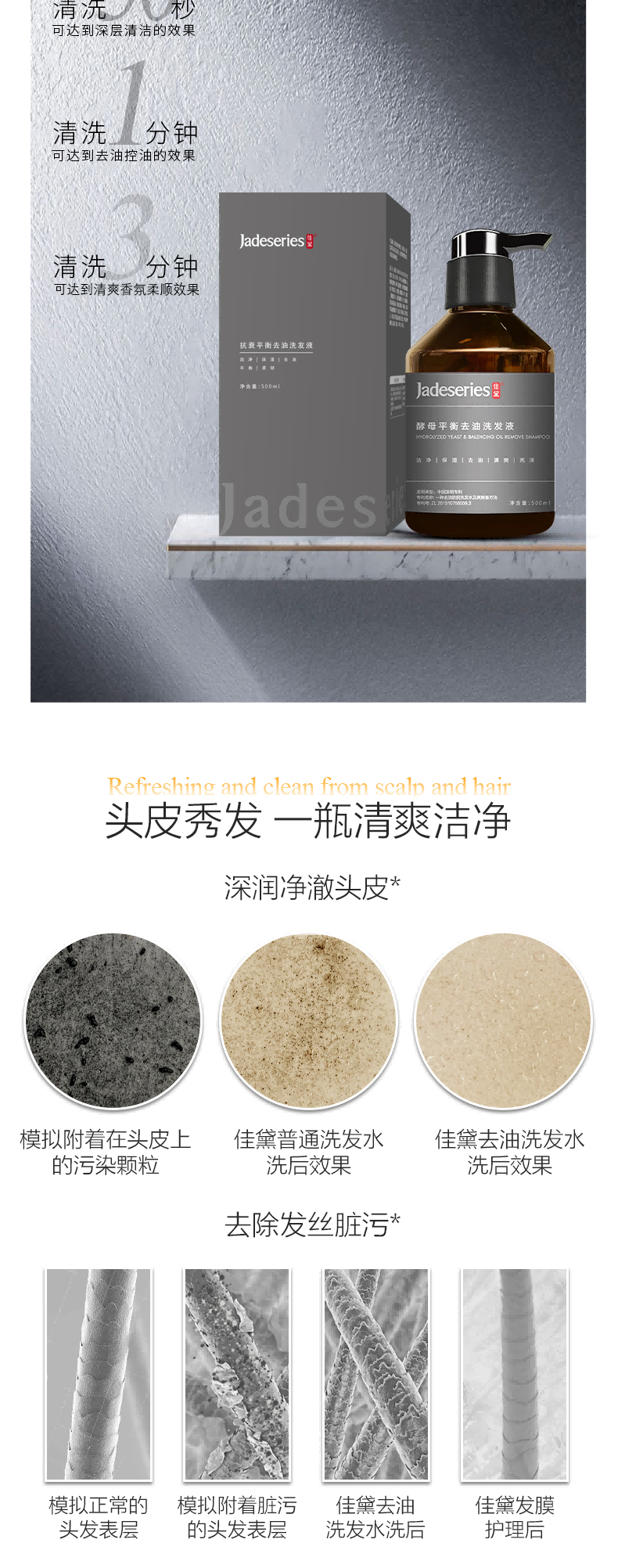 佳黛控油蓬松洗发水 无硅油洗发液双重功效平衡去油清洁发质男女500ml 灰色 500ml