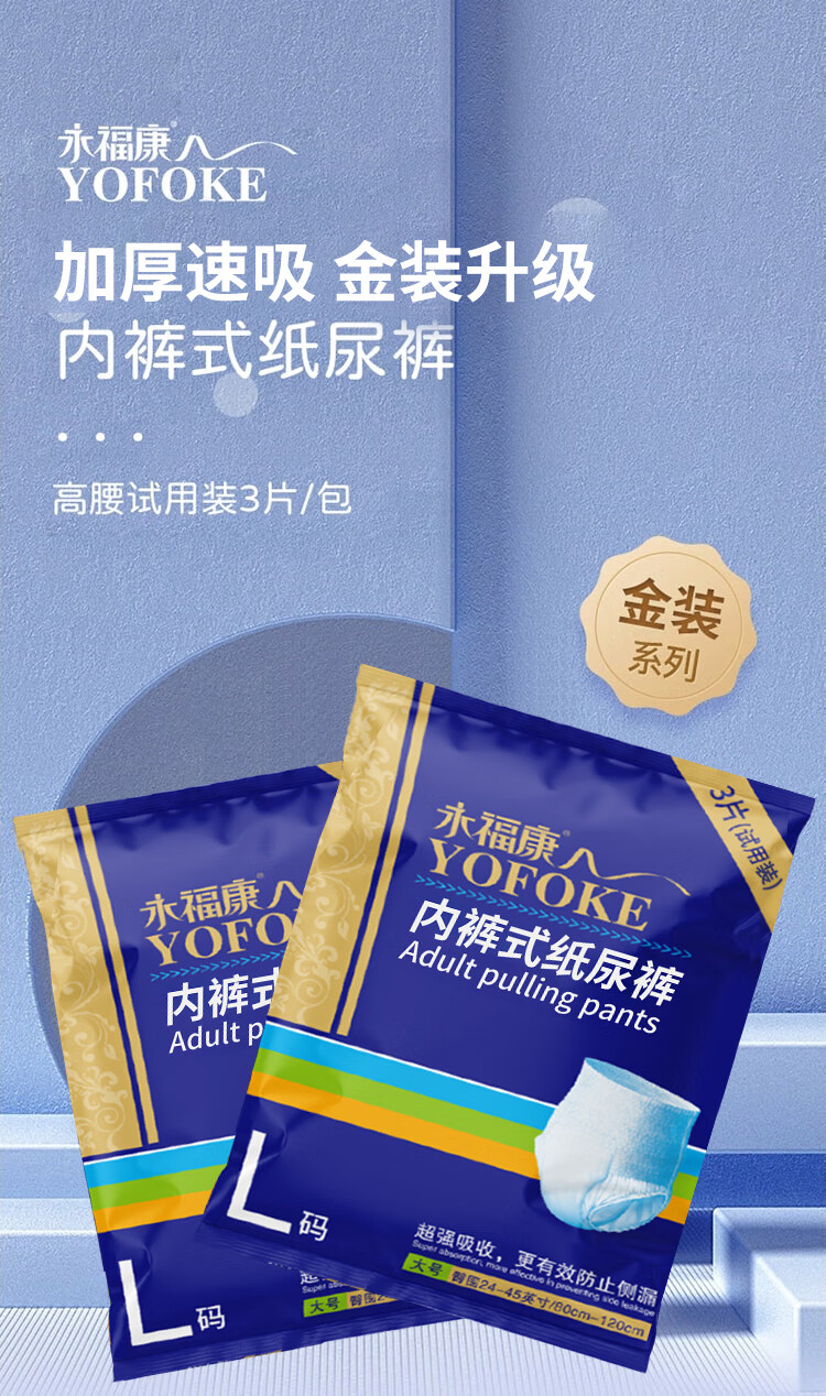 永福康成人拉拉裤便携装 L3片 (臀围:80-120cm) 经期孕产妇安心裤