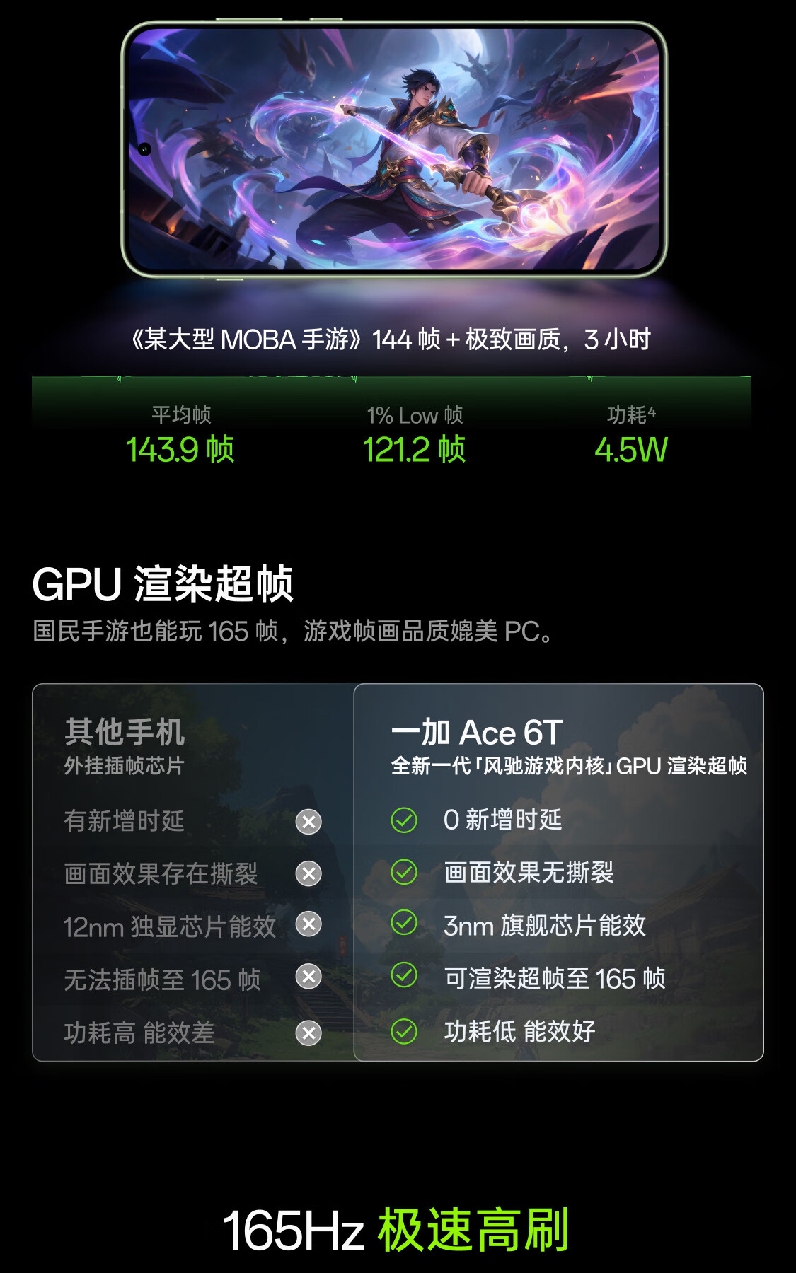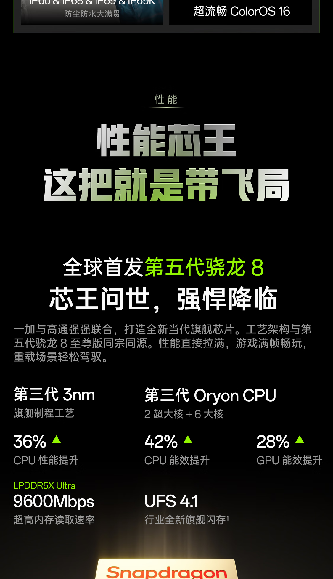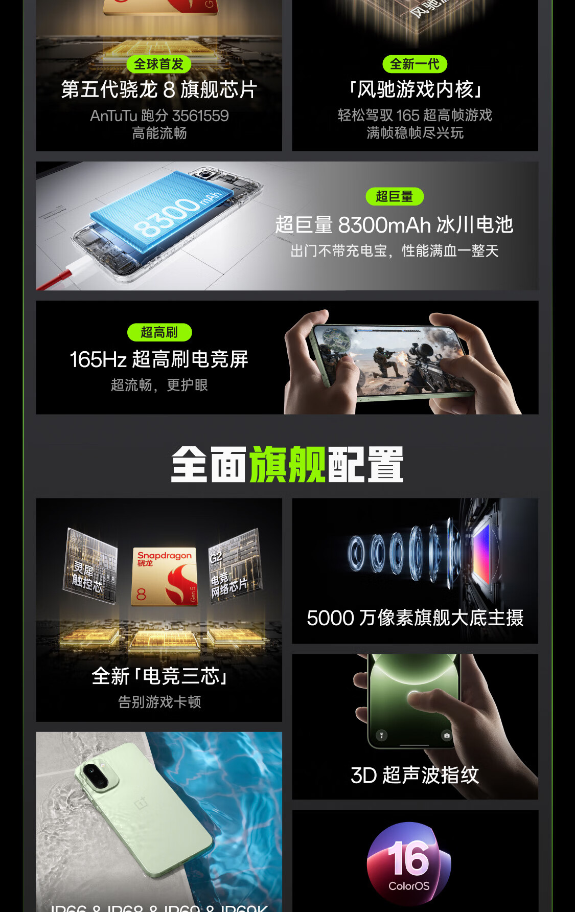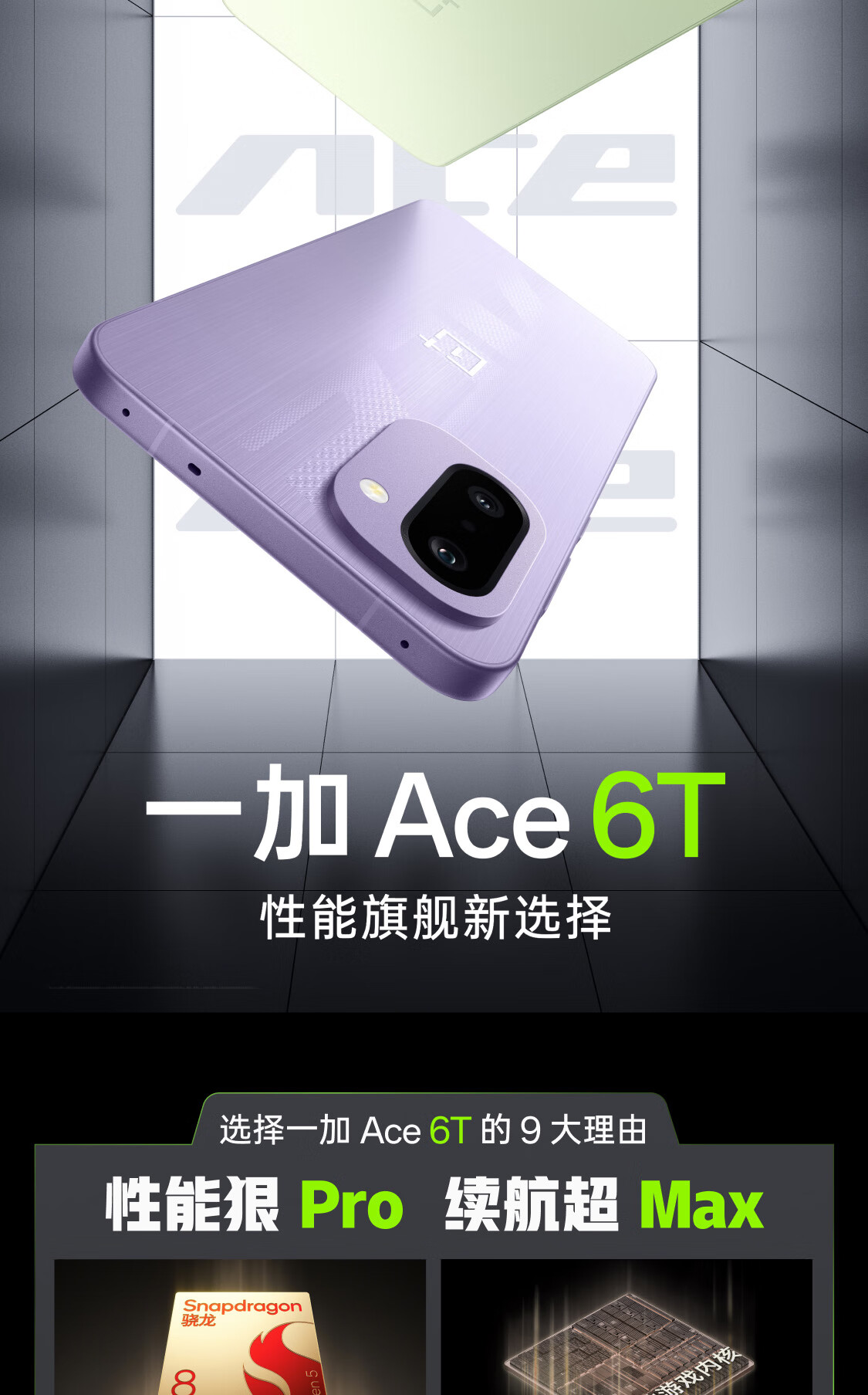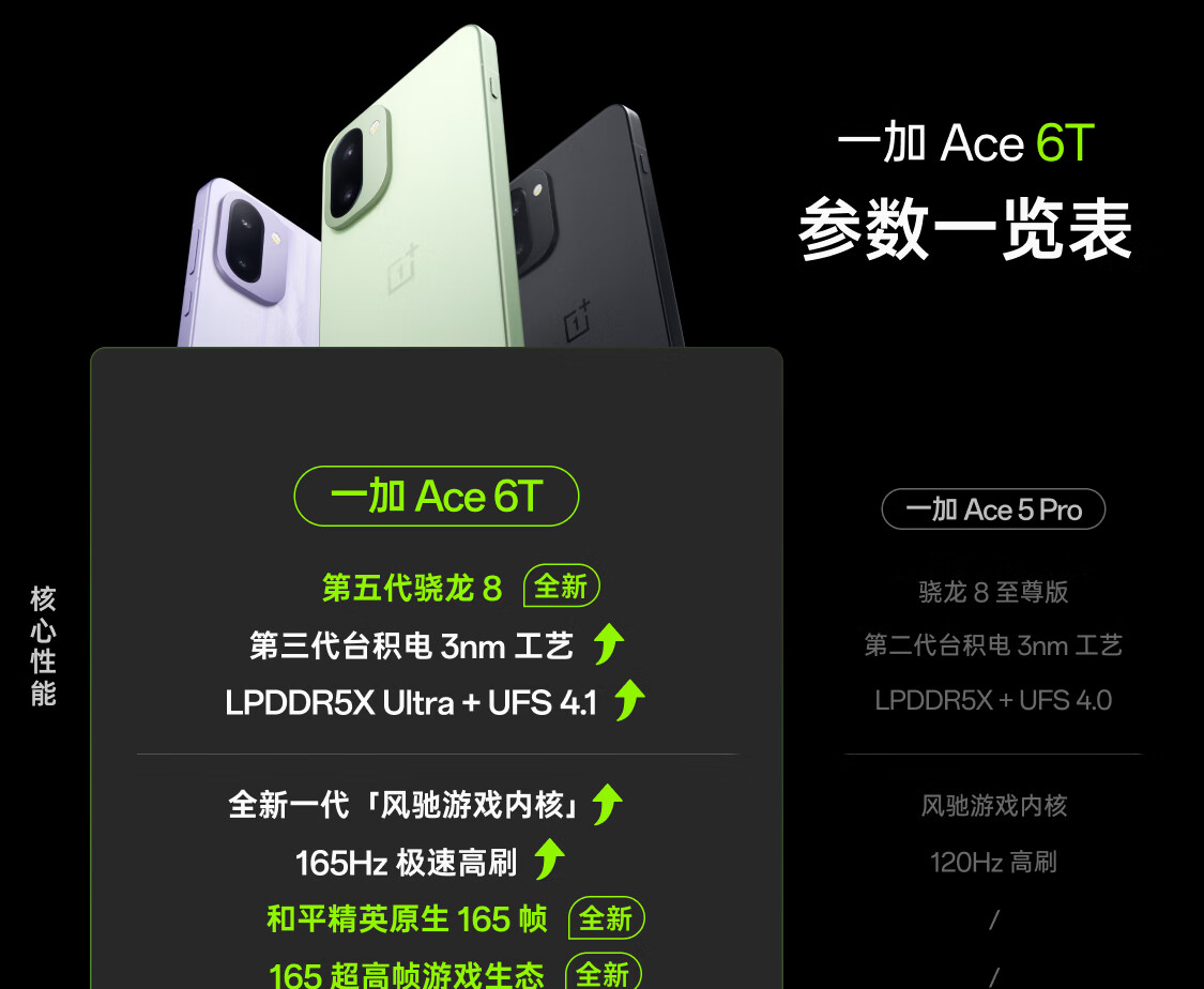 一加 Ace 6T 性能旗舰新选择 第五代骁龙 8 芯片 165Hz 超高刷电竞屏 8300mAh 冰川电池 AI手机 闪速黑 12GB+256GB