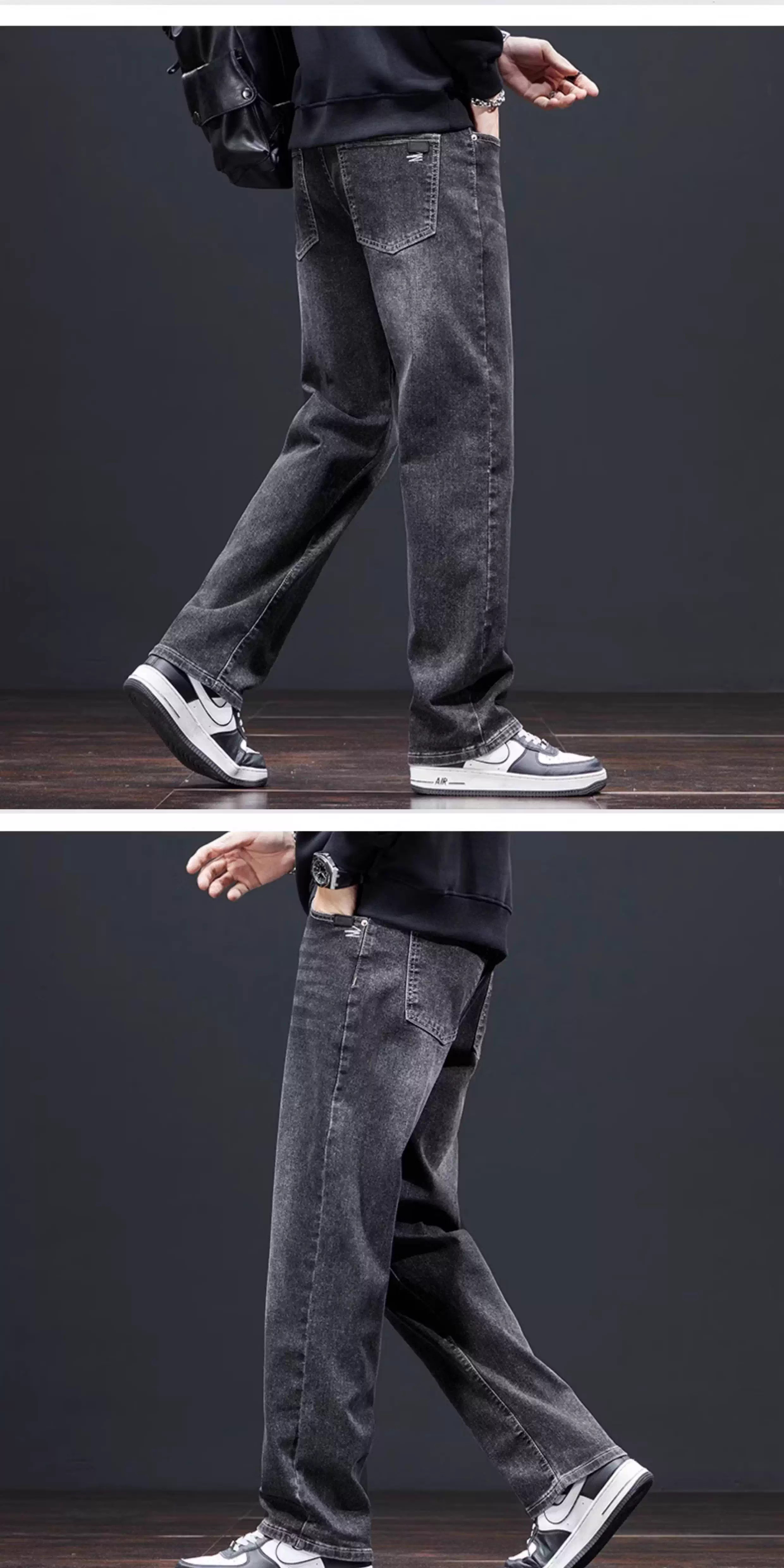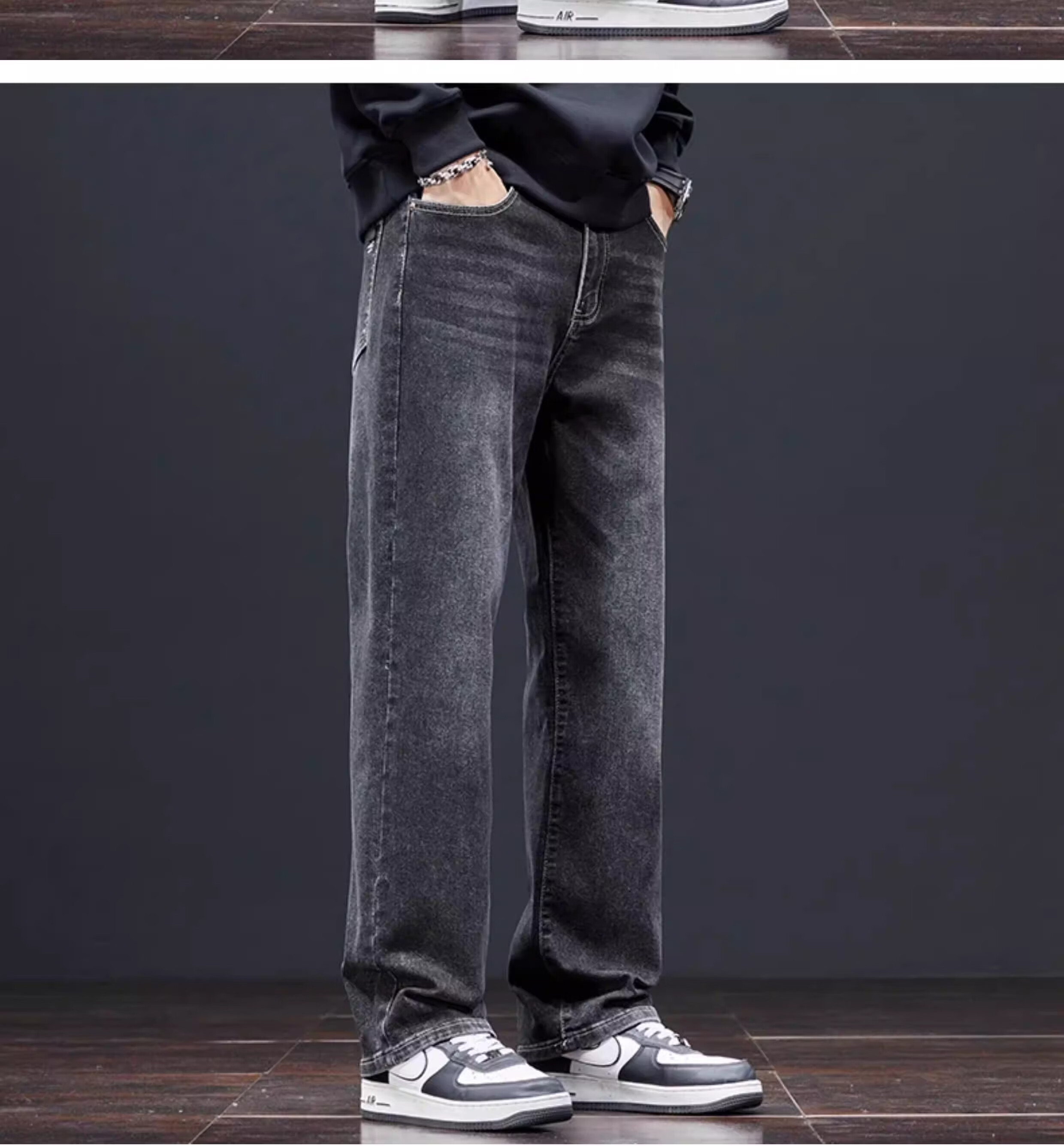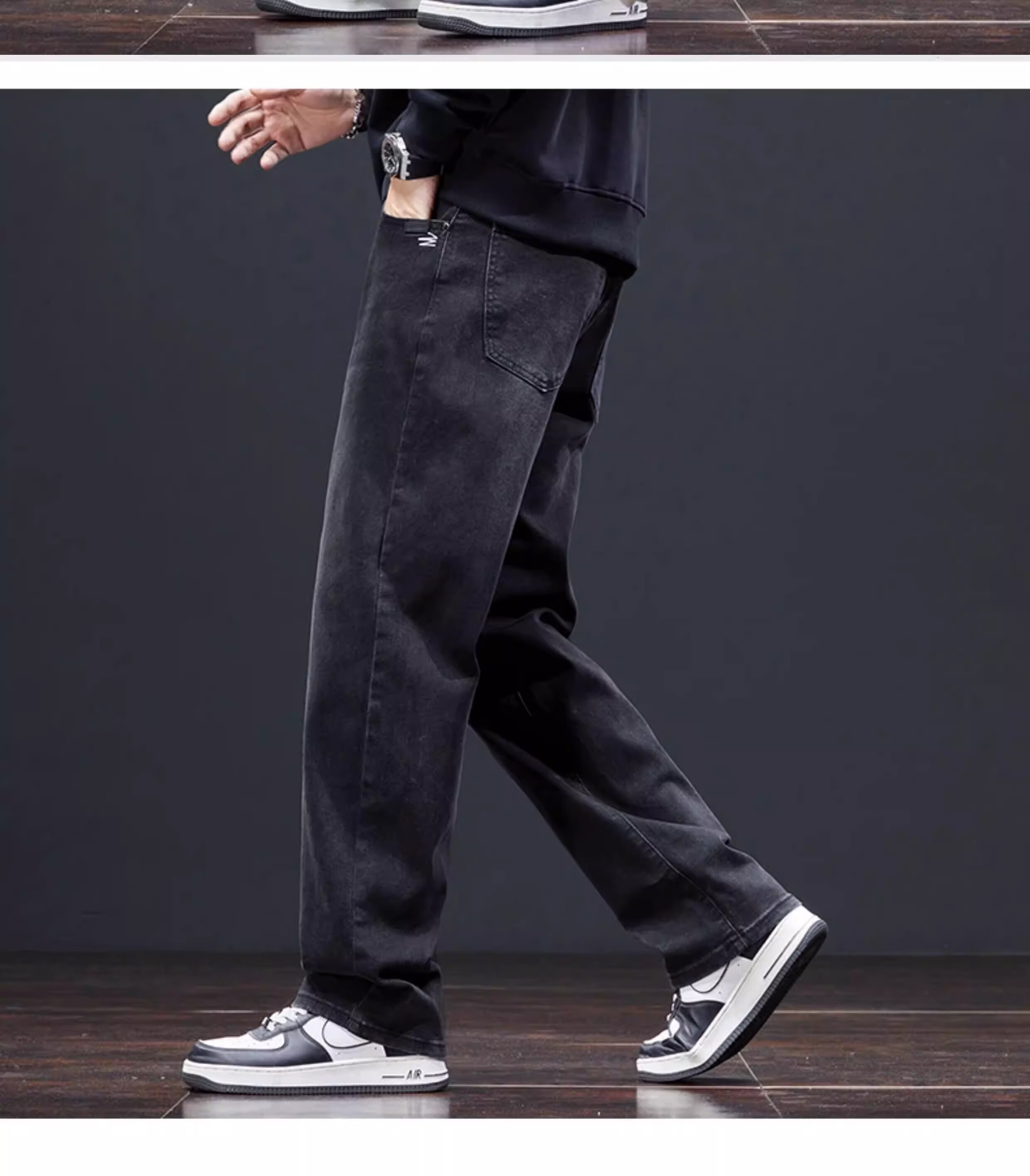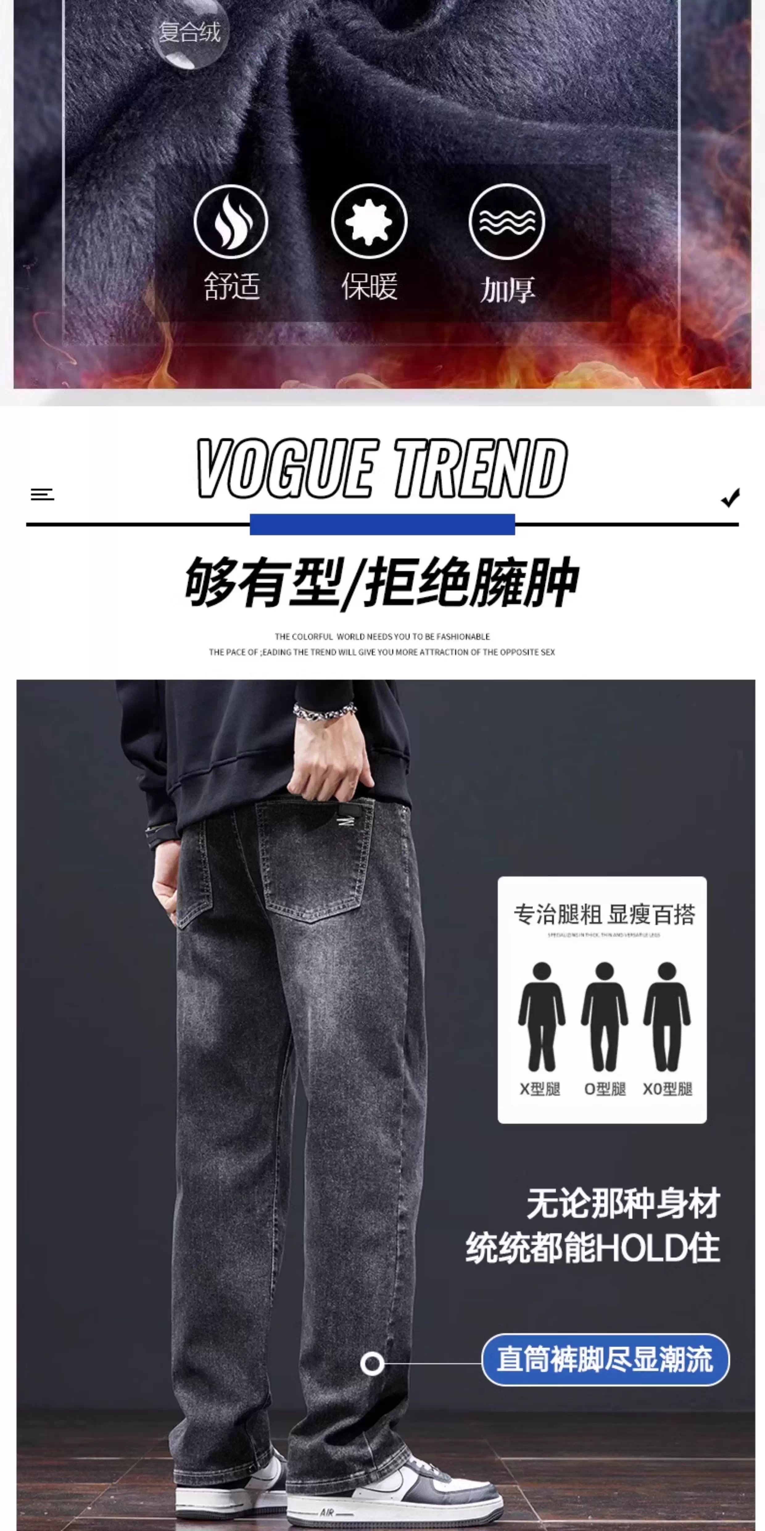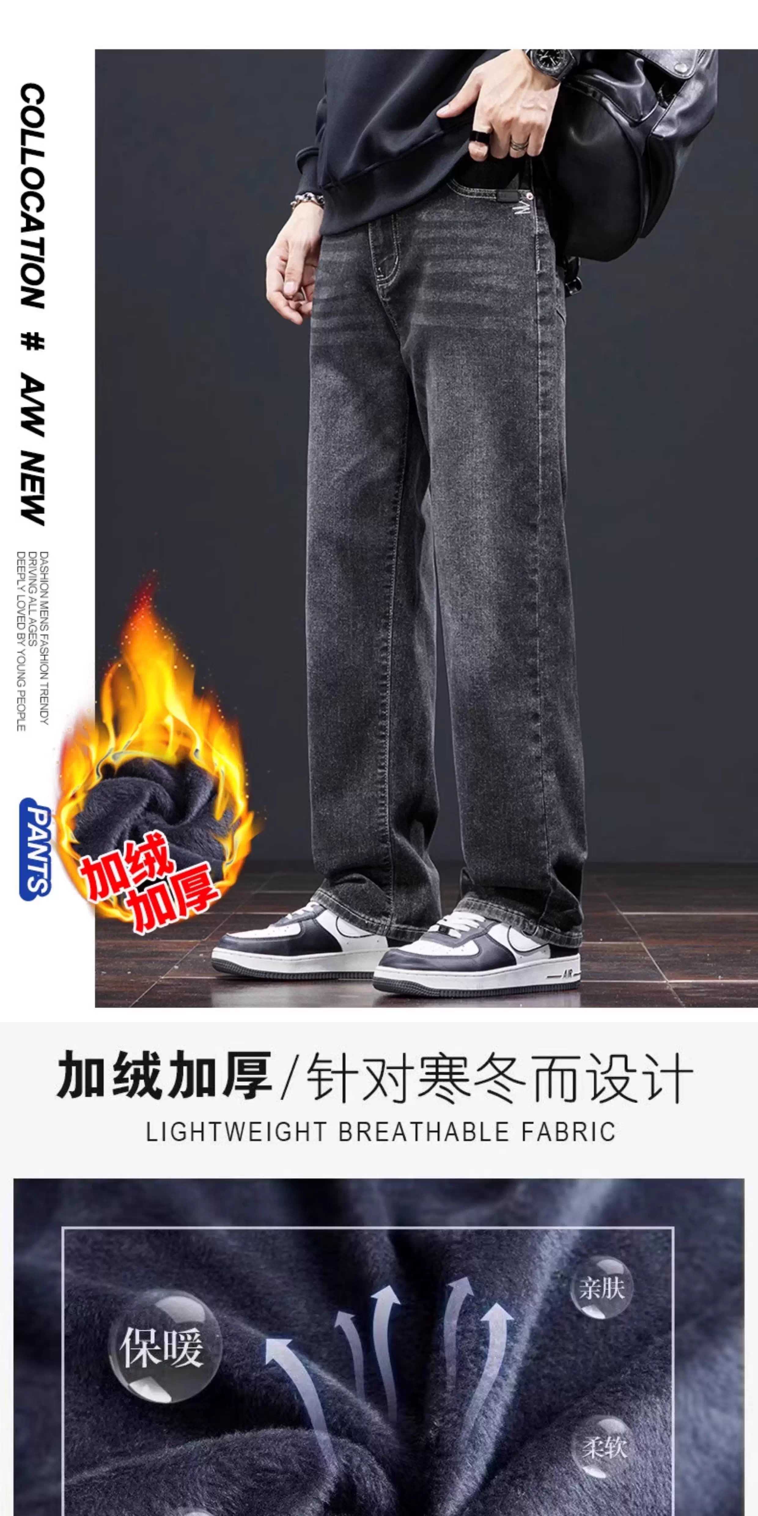 真维斯(Jeanswest)加绒牛仔裤男士直筒宽松2026新款春夏款加厚潮牌弹力休闲长裤子男 黑灰色【加绒】 28