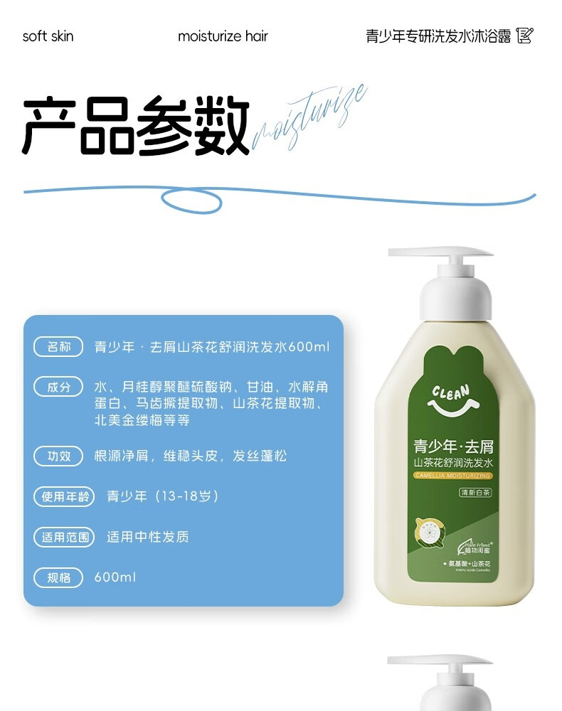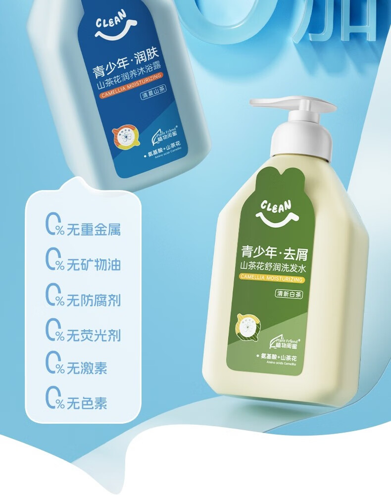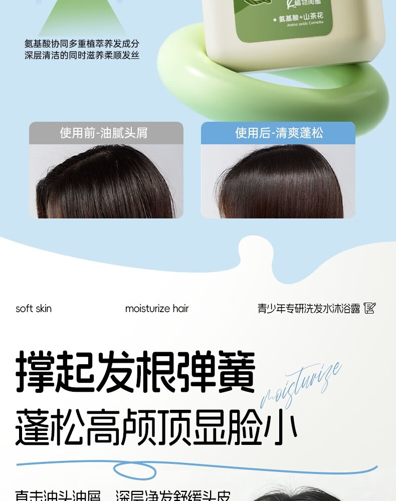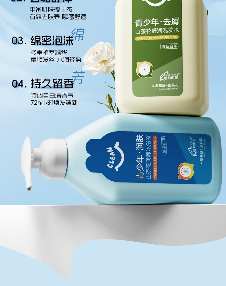 植物闺蜜 PLANT FRIEND青少年控油蓬松洗发水滋润清爽保湿沐浴露乳液套装男女孩成人通用 【去屑蓬松】青少年山茶花洗发水600ml*1瓶