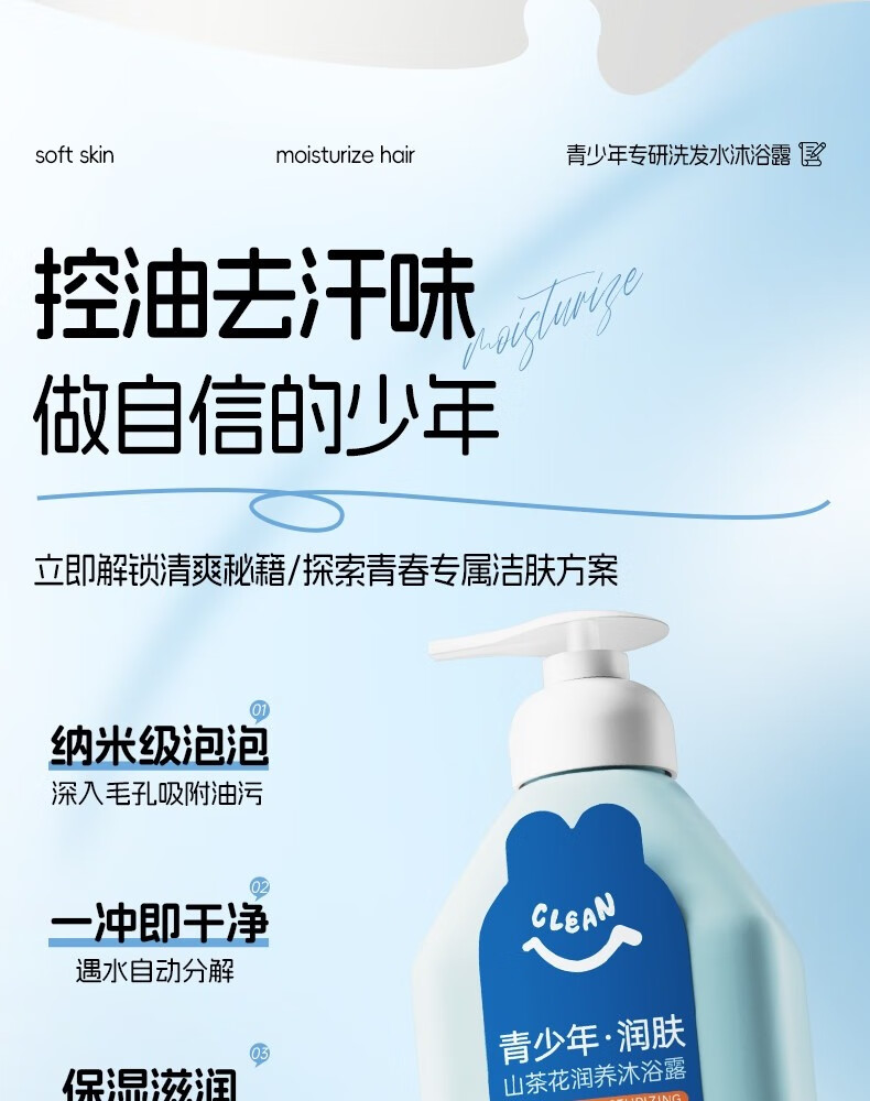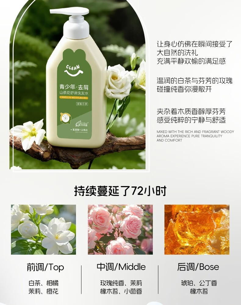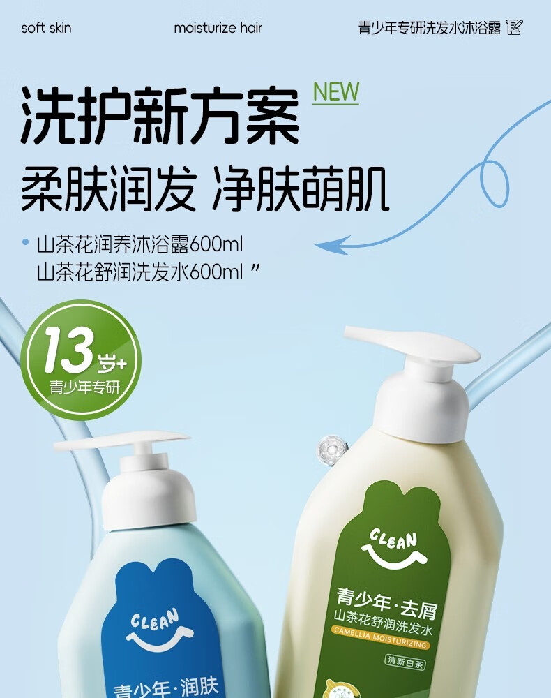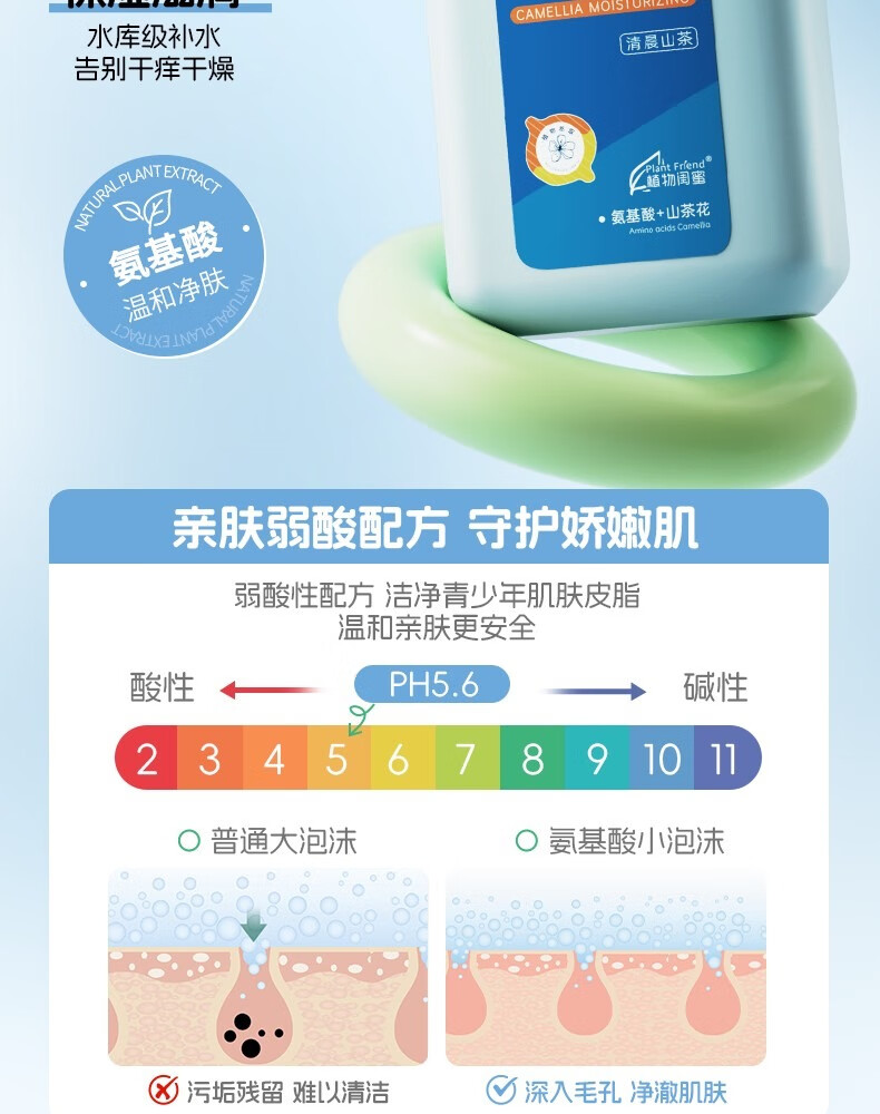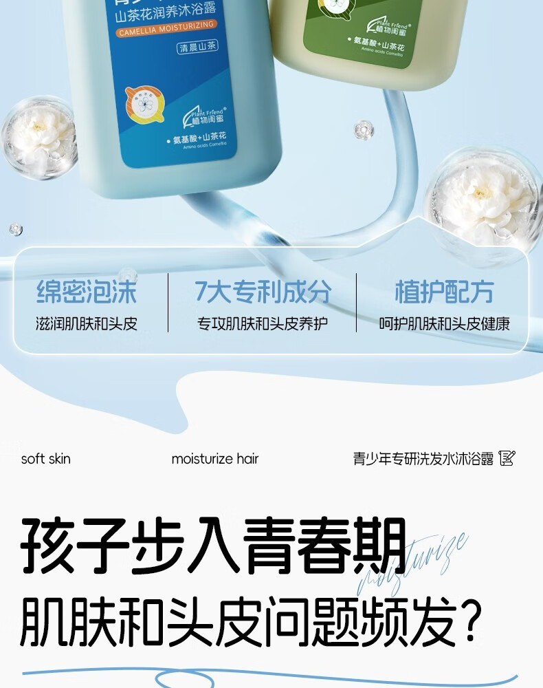 植物闺蜜 PLANT FRIEND青少年控油蓬松洗发水滋润清爽保湿沐浴露乳液套装男女孩成人通用 【去屑蓬松】青少年山茶花洗发水600ml*1瓶