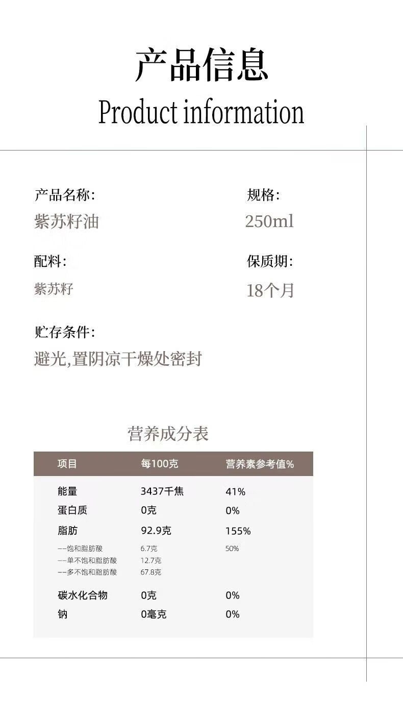 桦油 桦南纯正紫苏籽油一级品质物理低温冷榨健康无添加 初榨紫苏籽油*4瓶