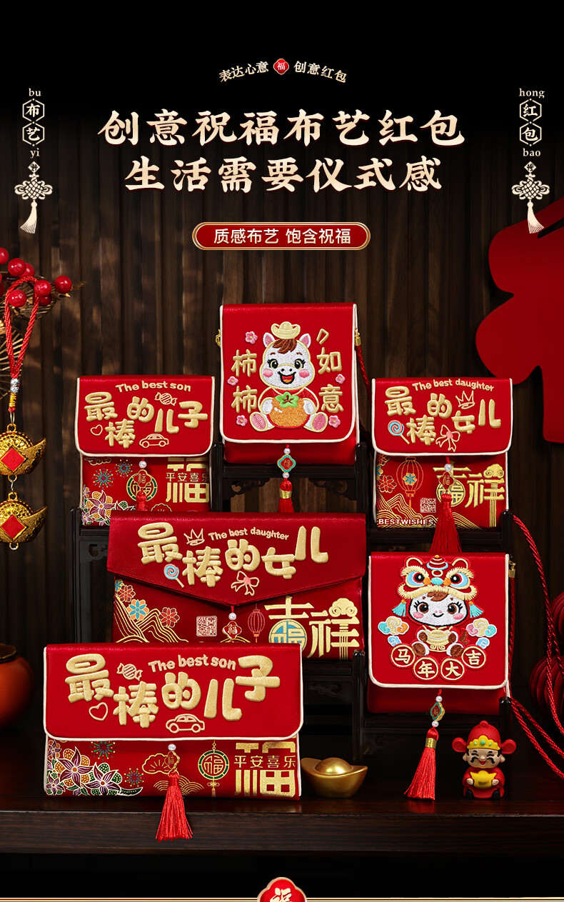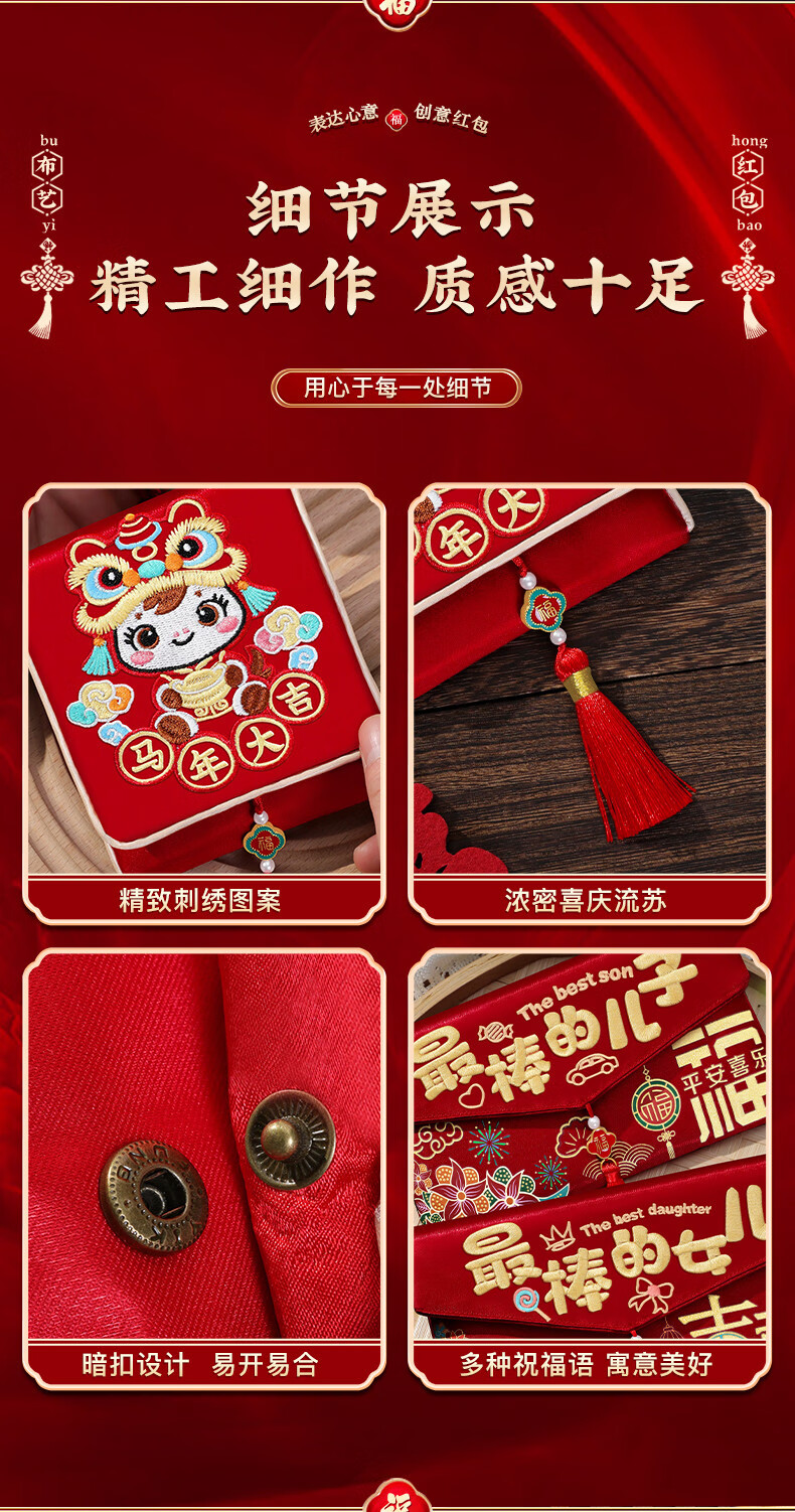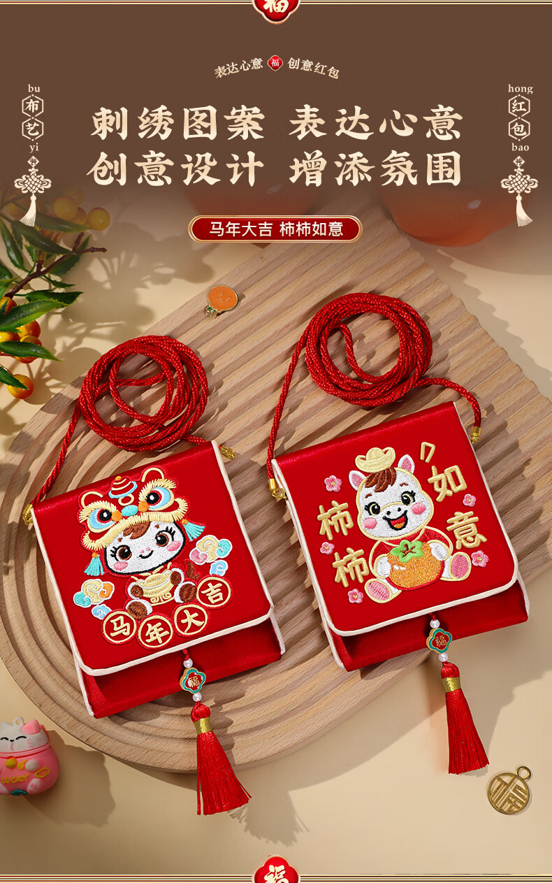 马年红包2026新款最棒的儿子女儿新年利是封过年给孩子压岁钱福袋 【满版彩绣背带款-马年大吉】 无规格
