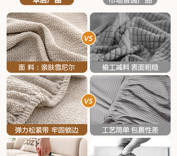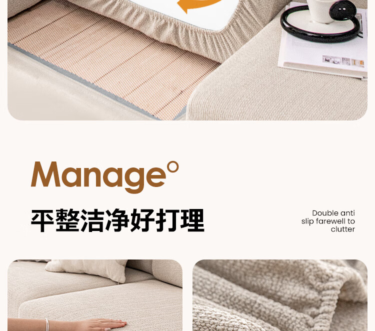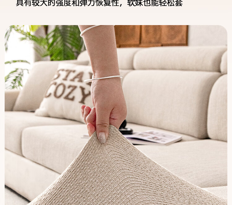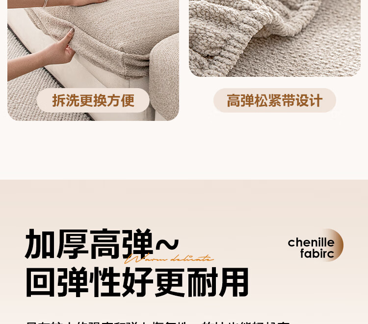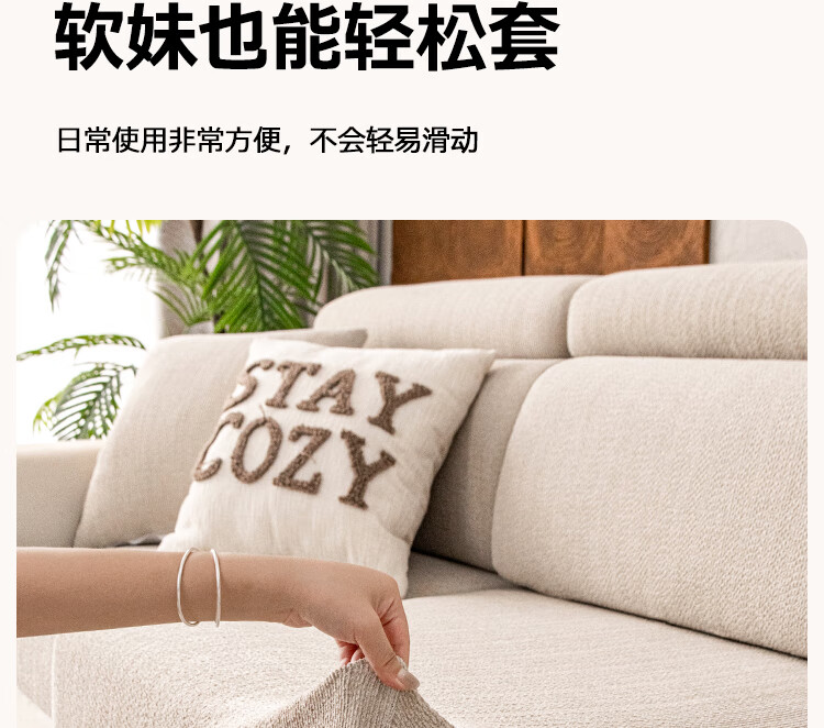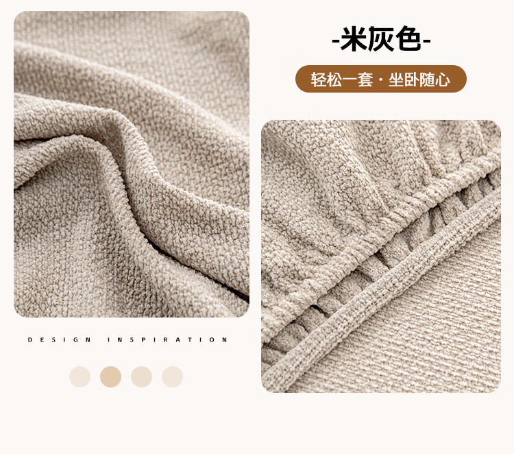 金拾美月防猫抓加厚雪尼尔沙发套全包罩2026新款四季通用沙发坐垫笠盖布巾 素谧-米灰 单人加大S宽65-85cm*长65-95cm