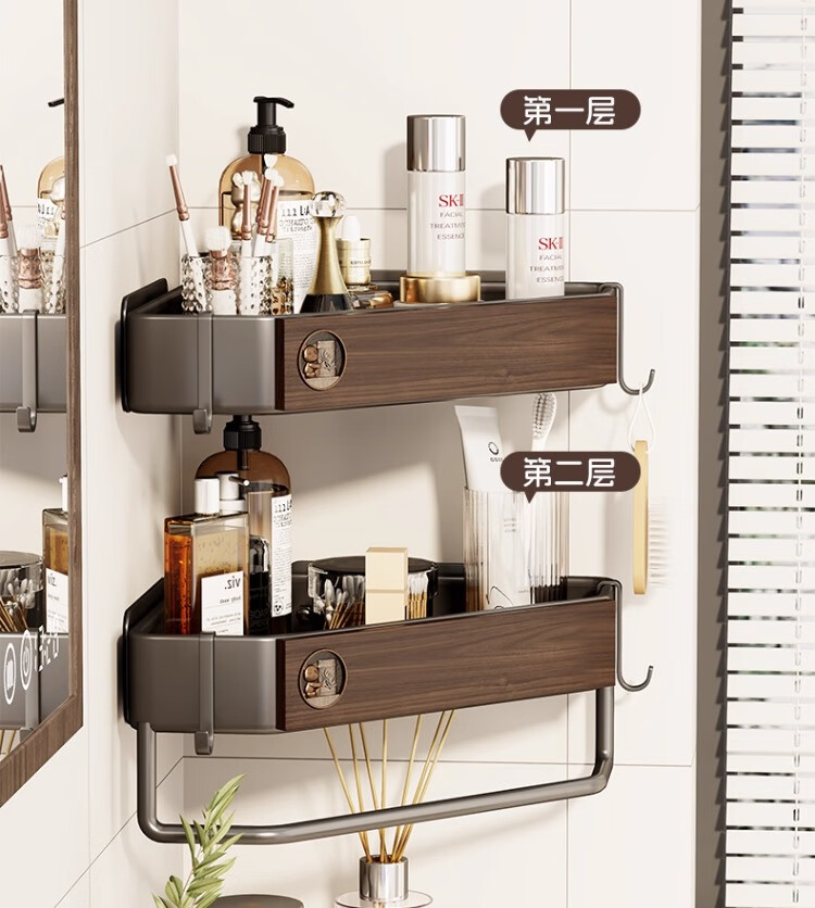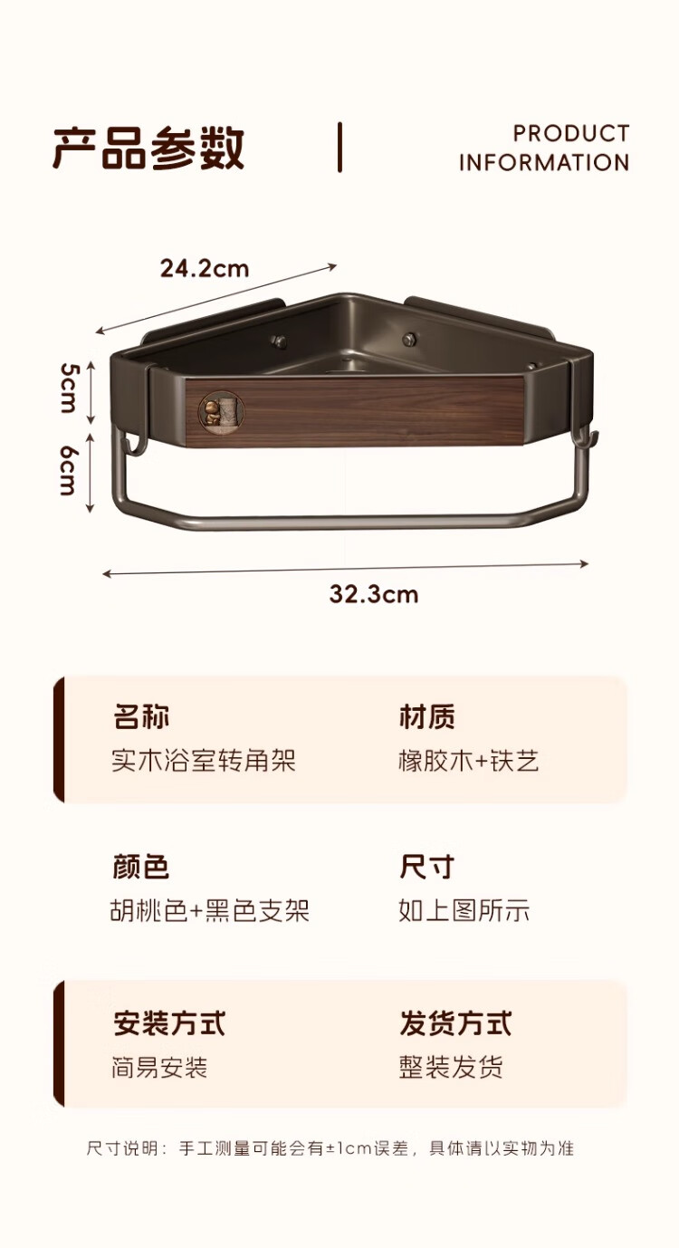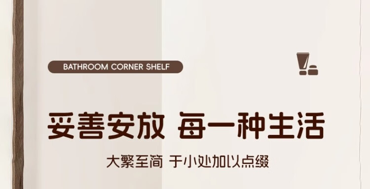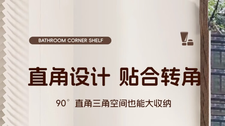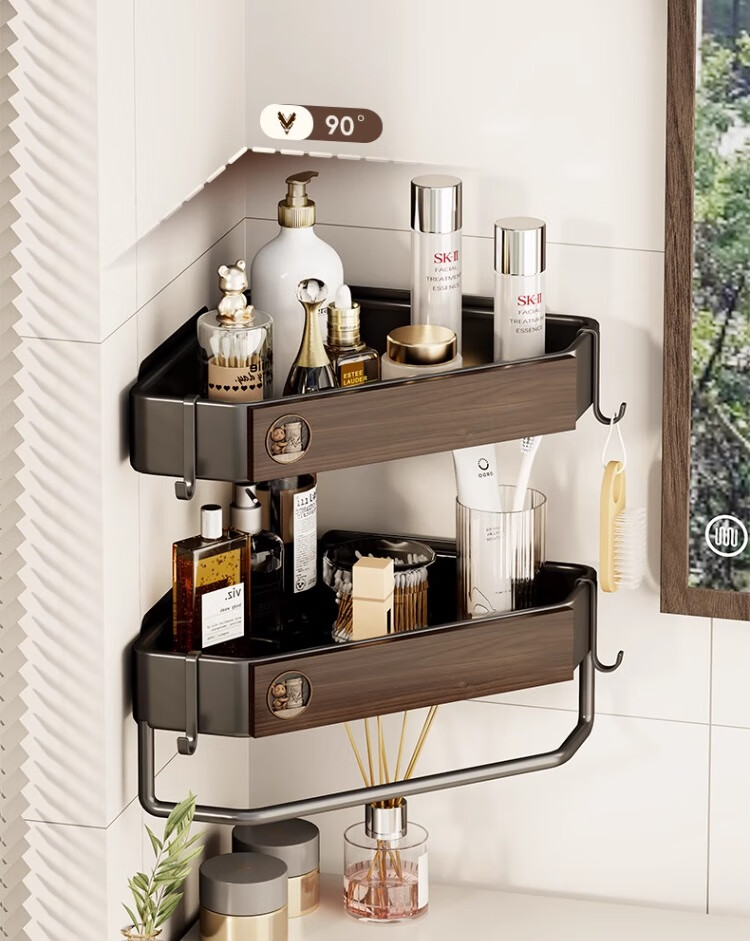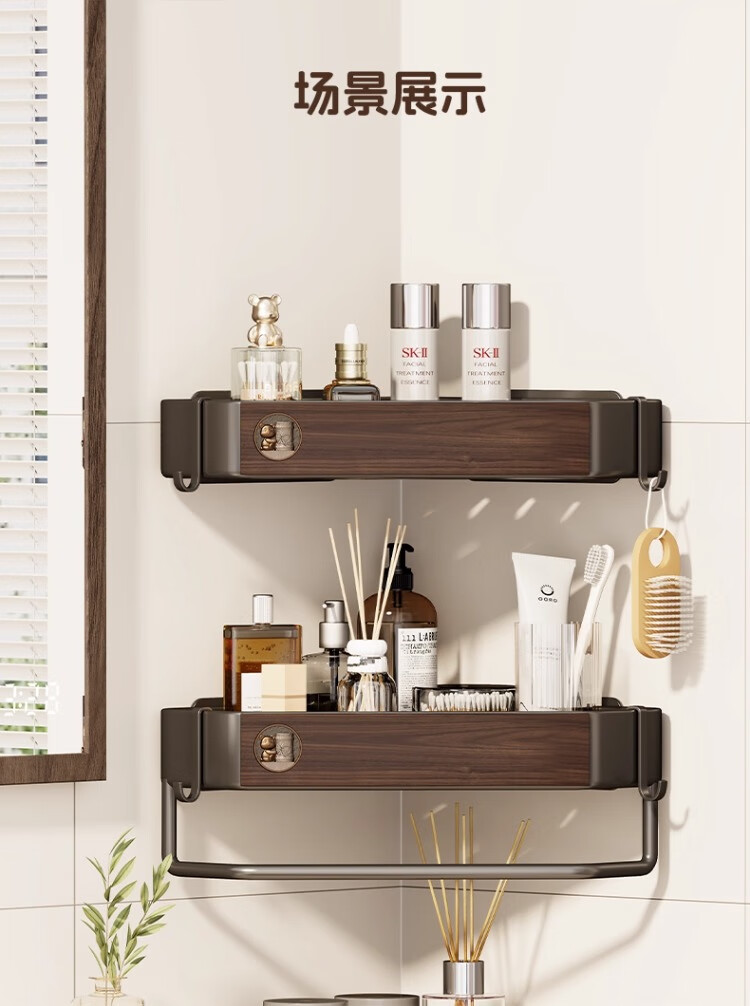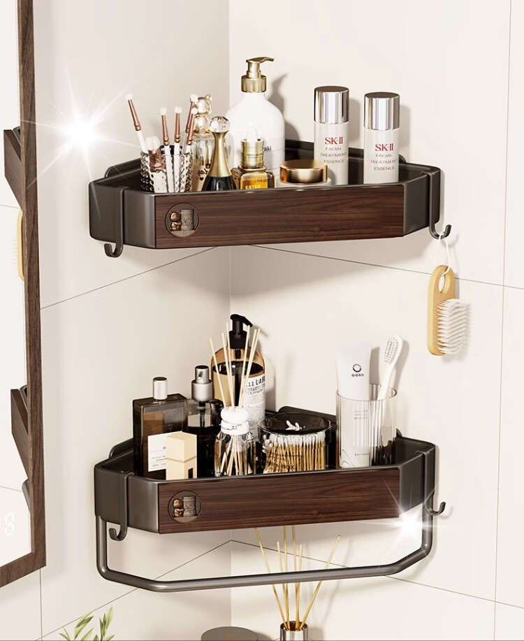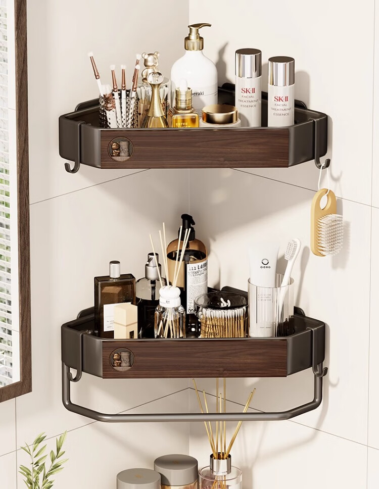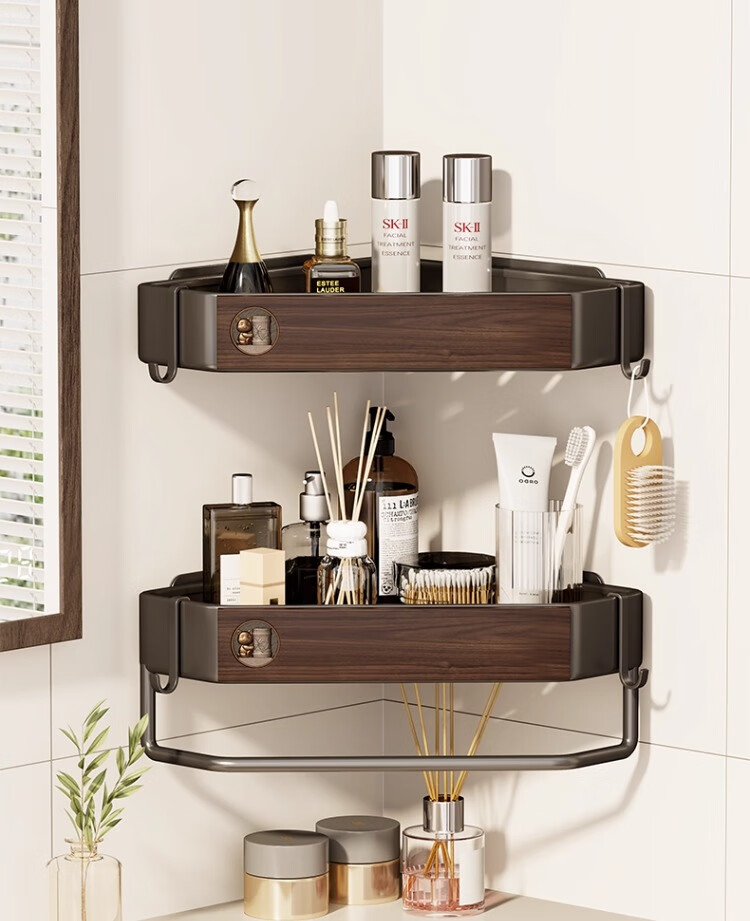 尔思家浴室置物架三角卫生间架子浴室厕所淋浴洗手间免打孔夹缝收纳角架 胡桃色常规款【进口实木】