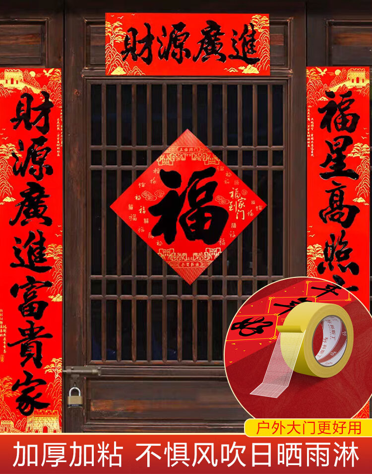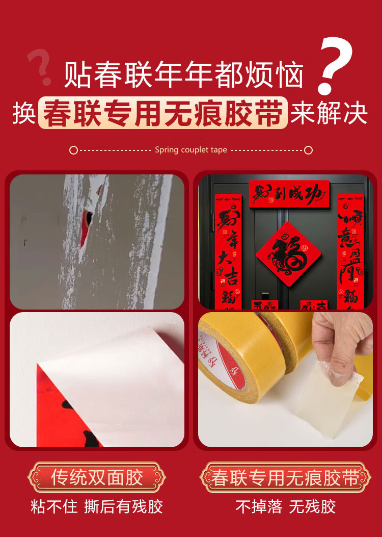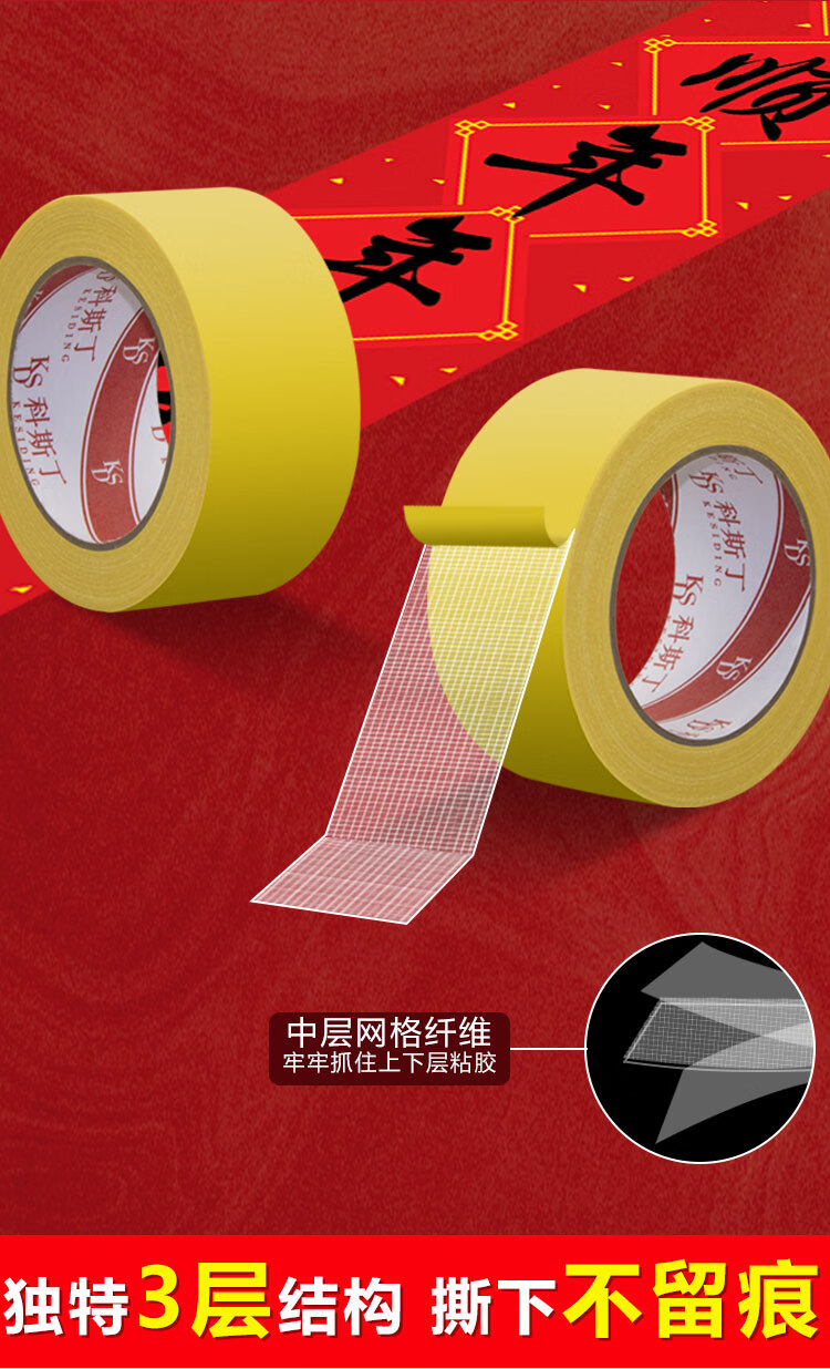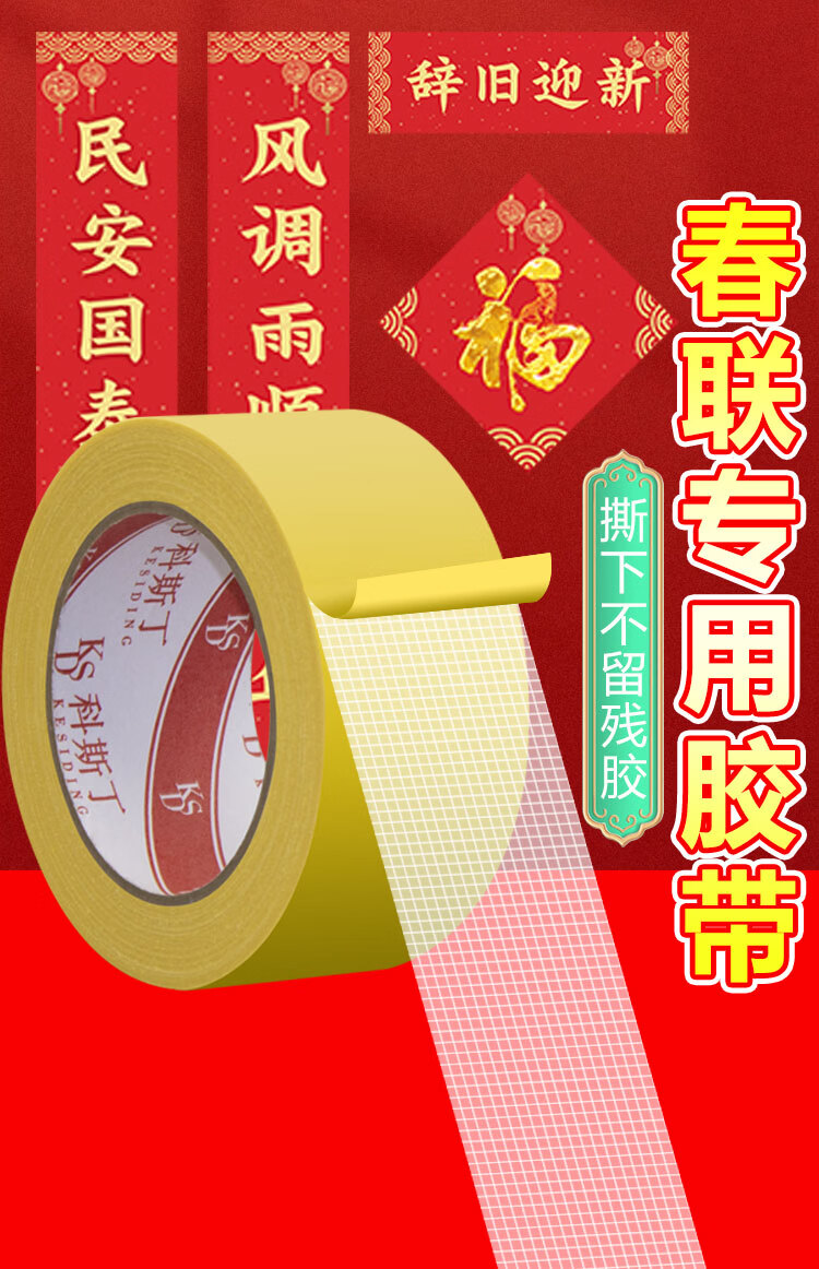 科斯丁对联无痕贴春联专用胶带网格布基双面胶贴福字无痕胶强力高粘度农村大门真石漆水泥墙面固定神器 春联专用胶【掉落包赔】5厘米宽*20米长