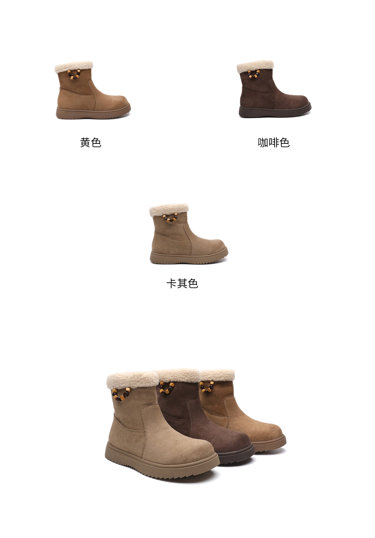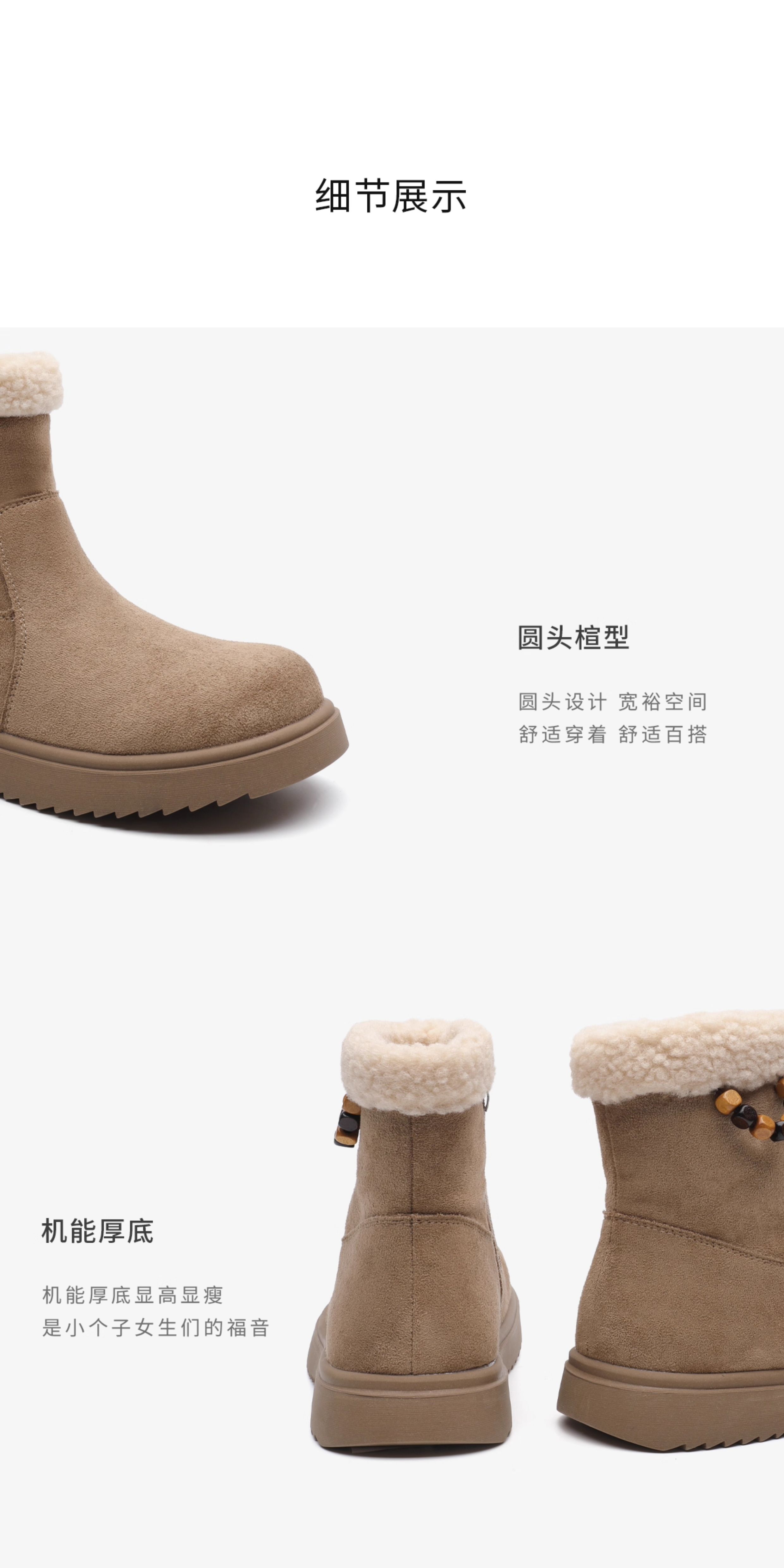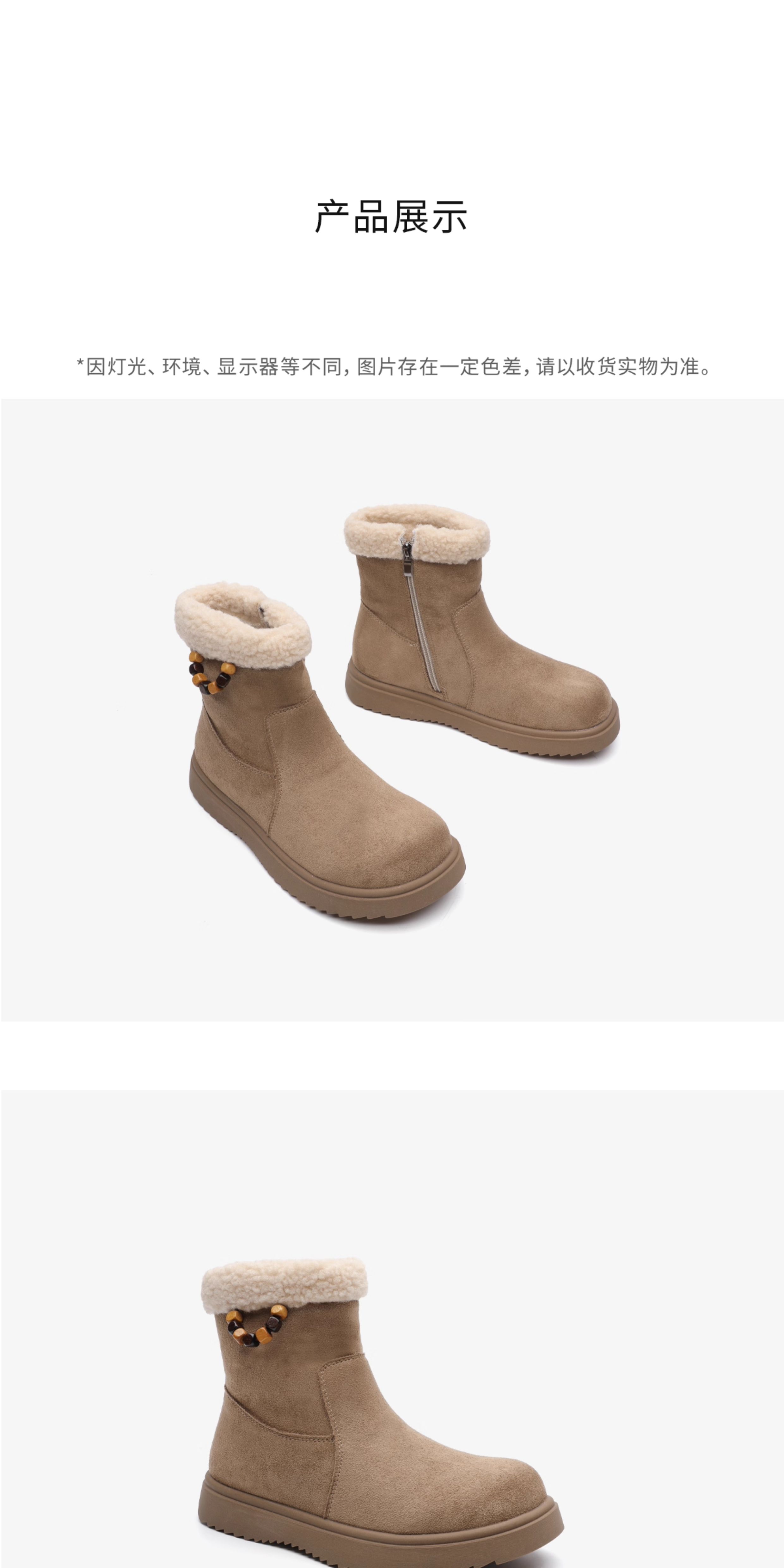 月芽儿雪地靴女款2025新款冬季加绒加厚低帮板鞋百搭保暖人造长毛绒鞋 绒里棕色03T 34