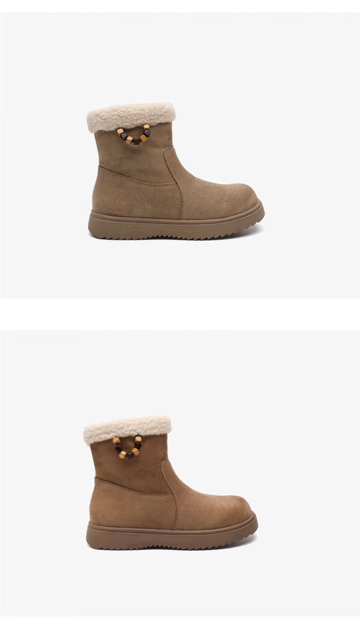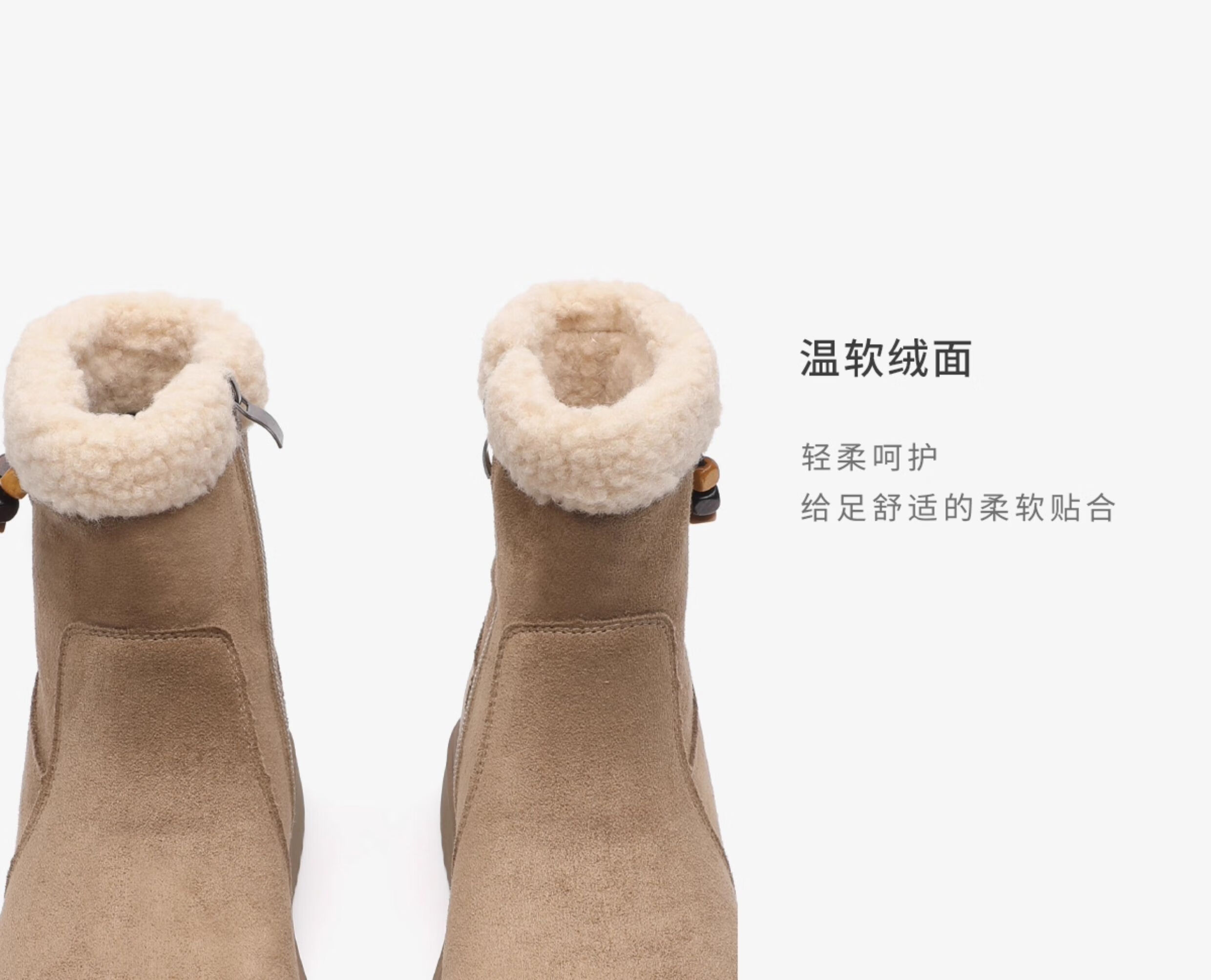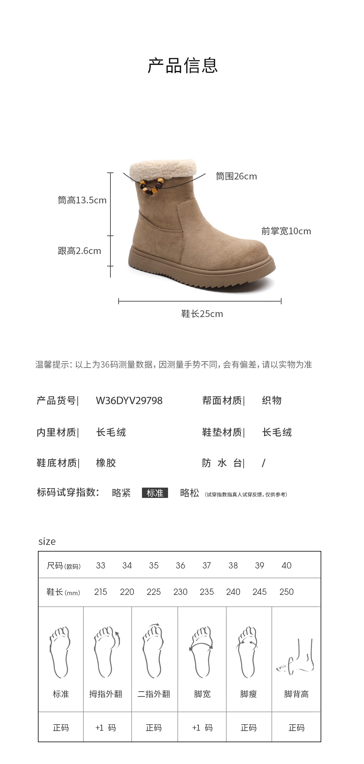 月芽儿雪地靴女款2025新款冬季加绒加厚低帮板鞋百搭保暖人造长毛绒鞋 绒里棕色03T 34
