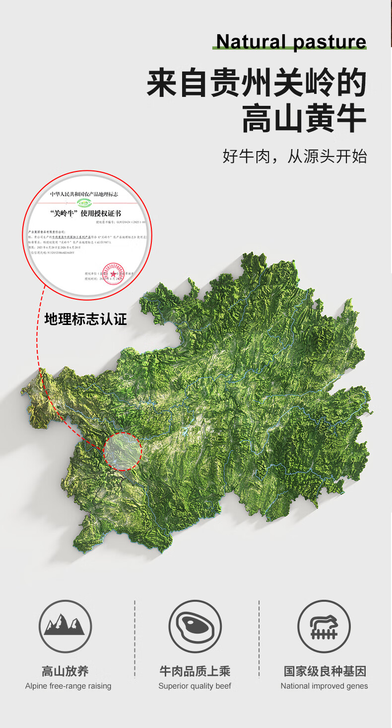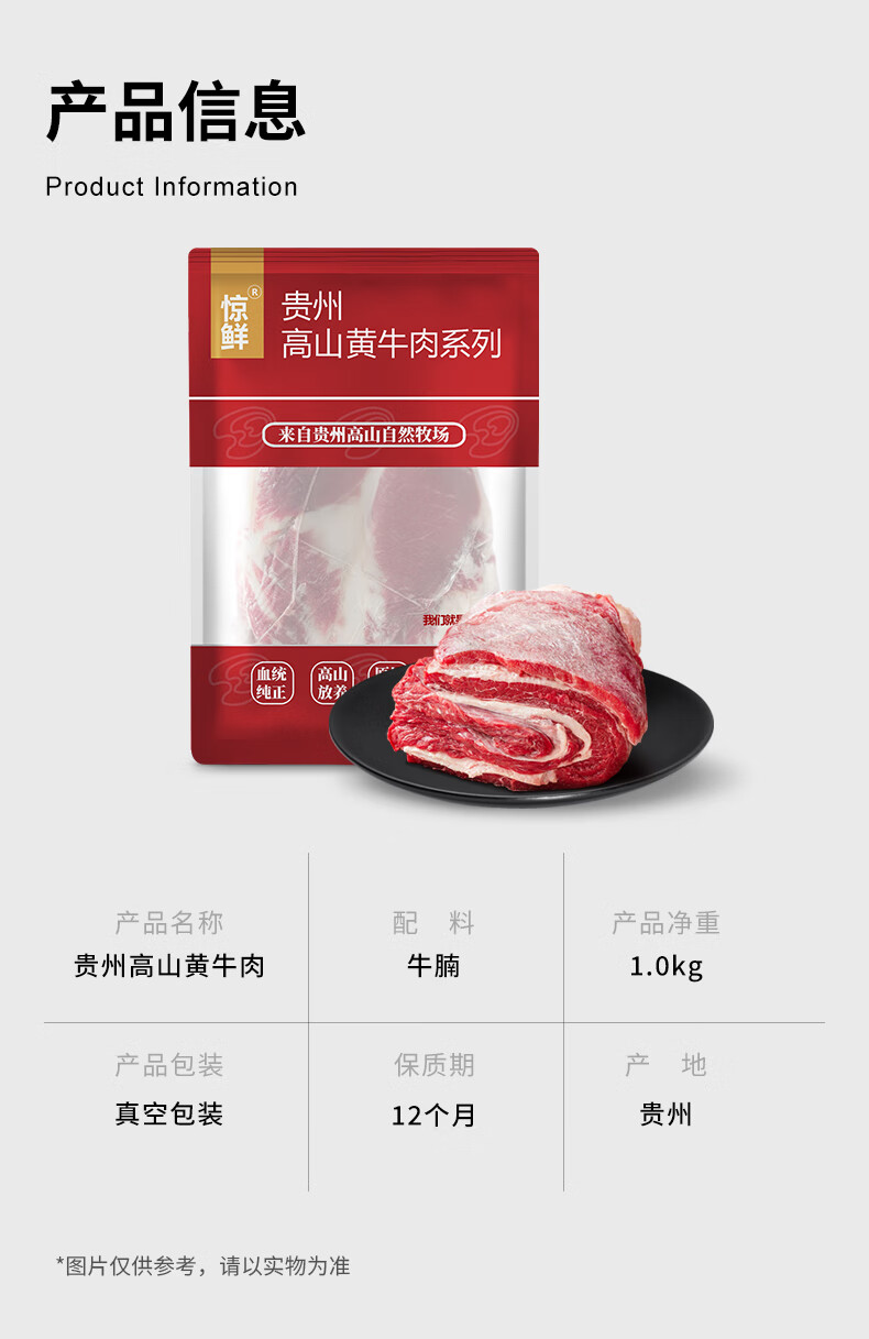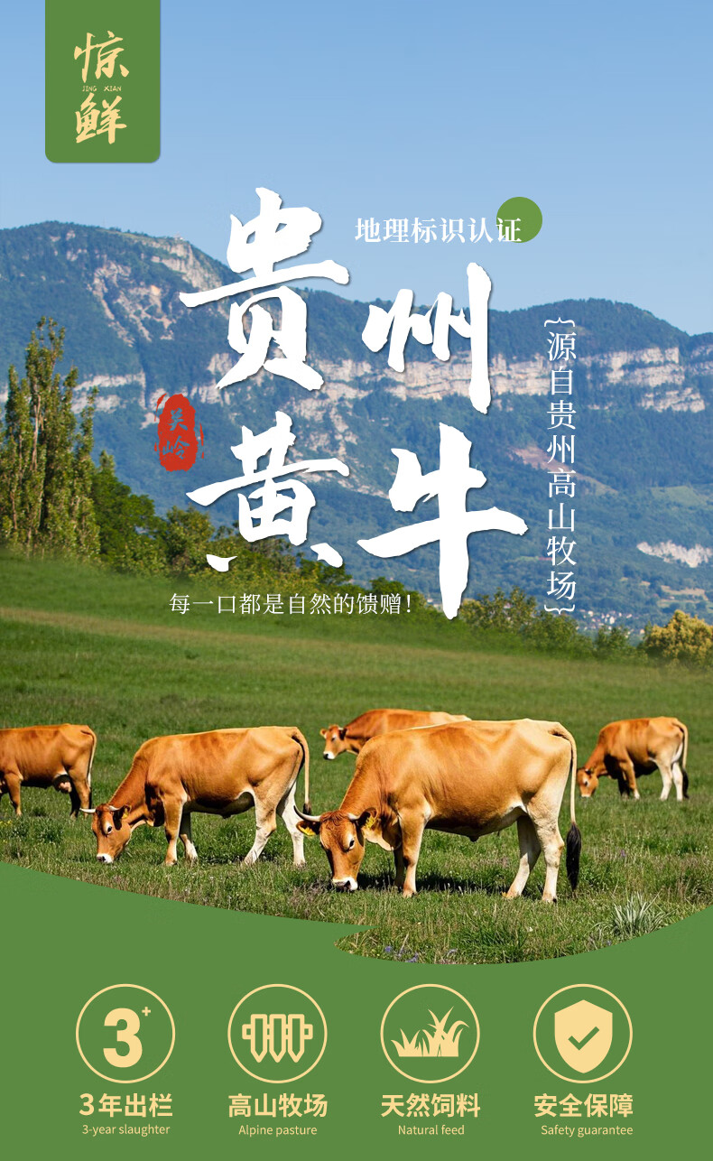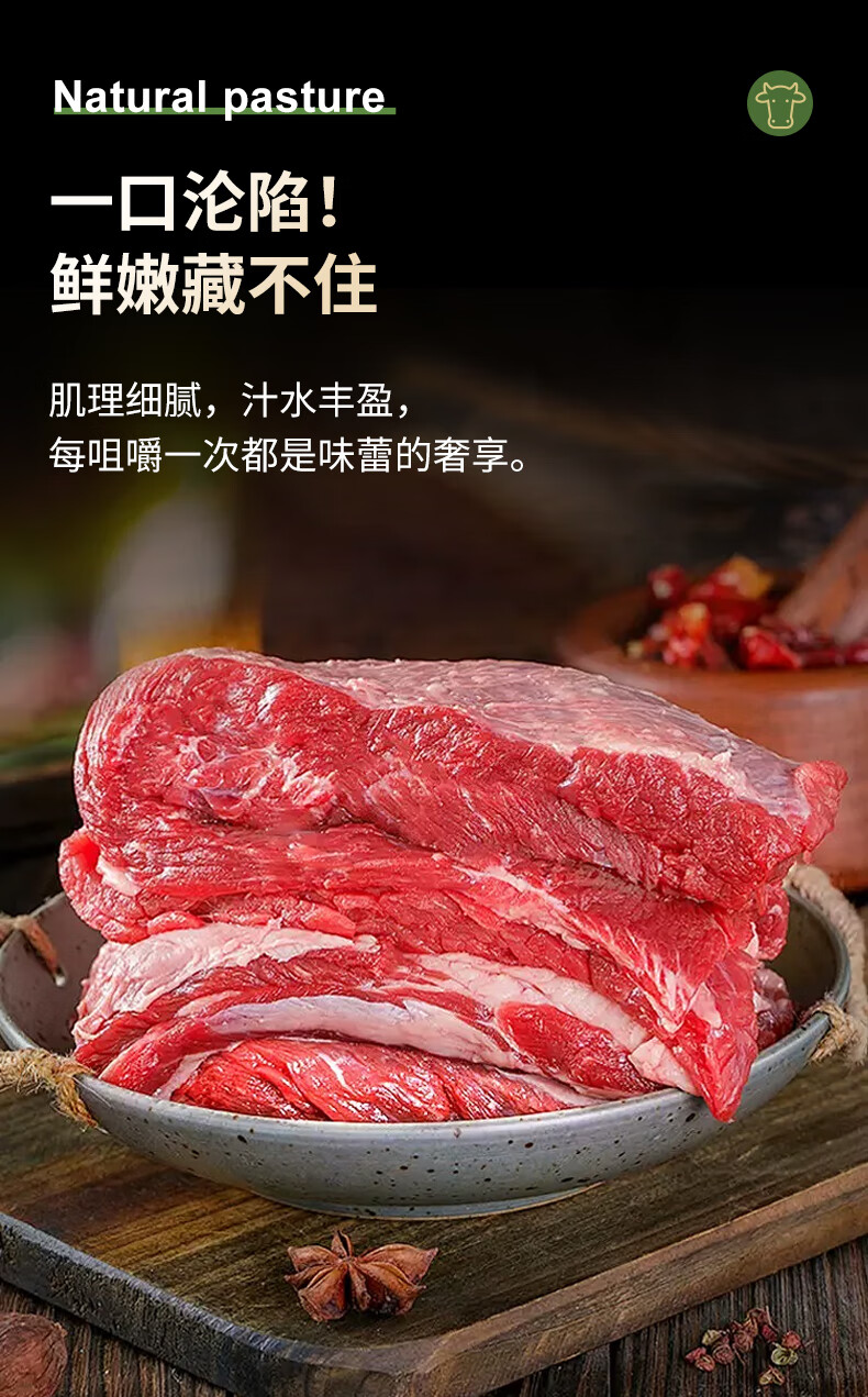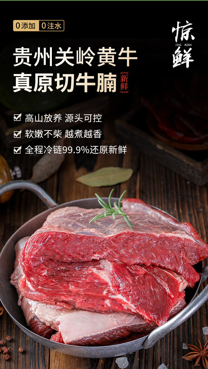 惊鲜国产贵州高山黄牛原切牛腩 2斤 冷冻整块牛肉火锅烧烤 源头直发