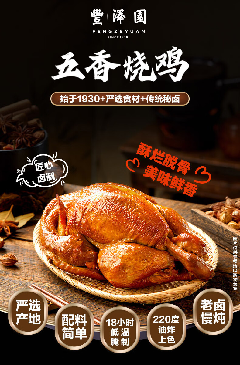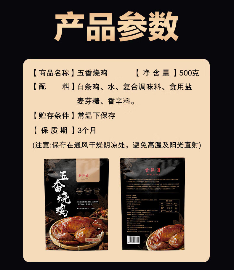 丰泽园五香烧鸡500g 特产扒鸡熟食下酒菜 速食卤味方便即食肉类