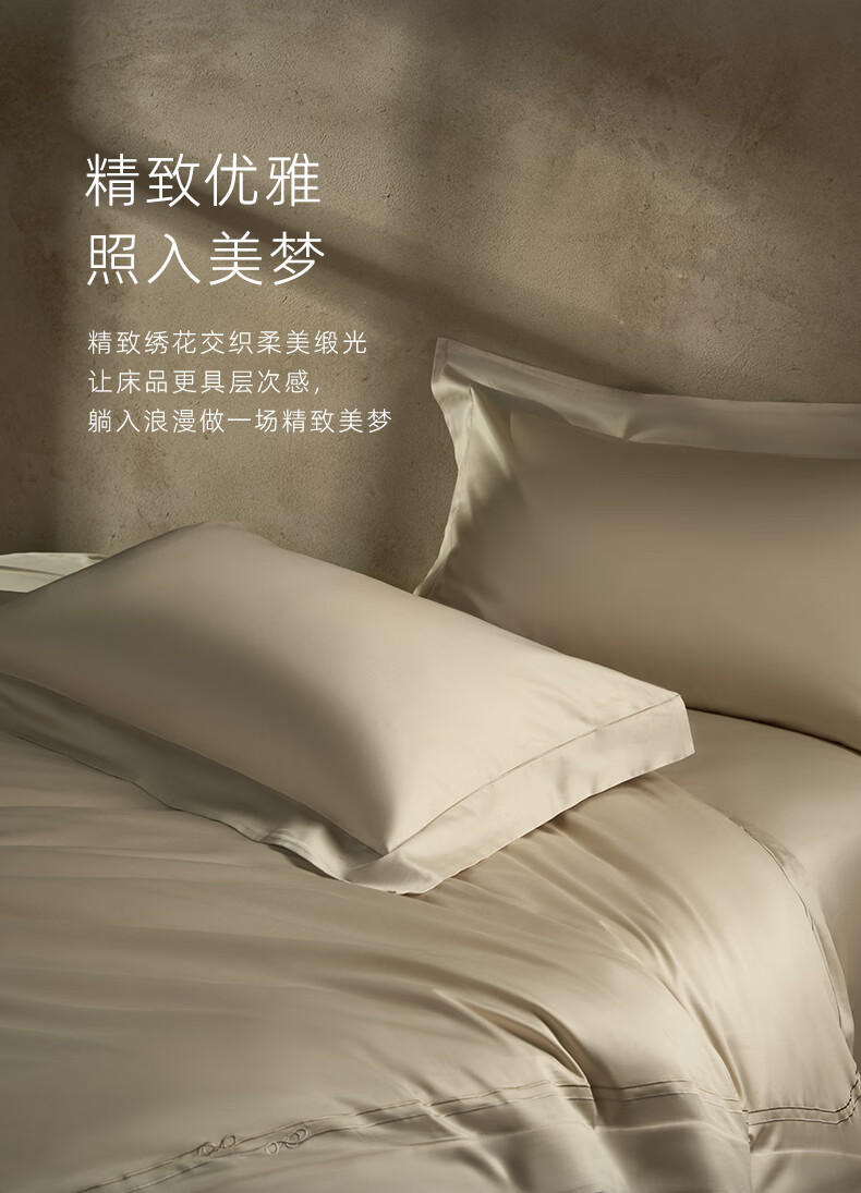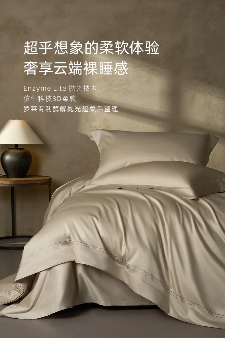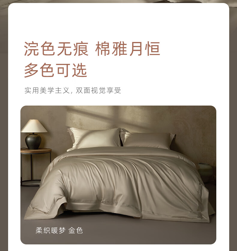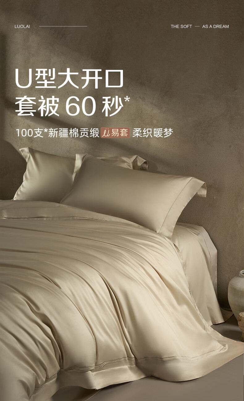 罗莱家纺100支新疆棉全棉四件套超柔贡缎U易套设计 柔织暖梦-金色 1.5米床 床单款 (被套200*230cm)